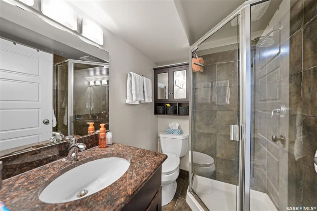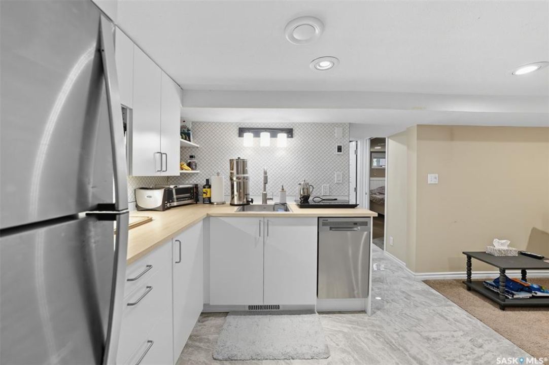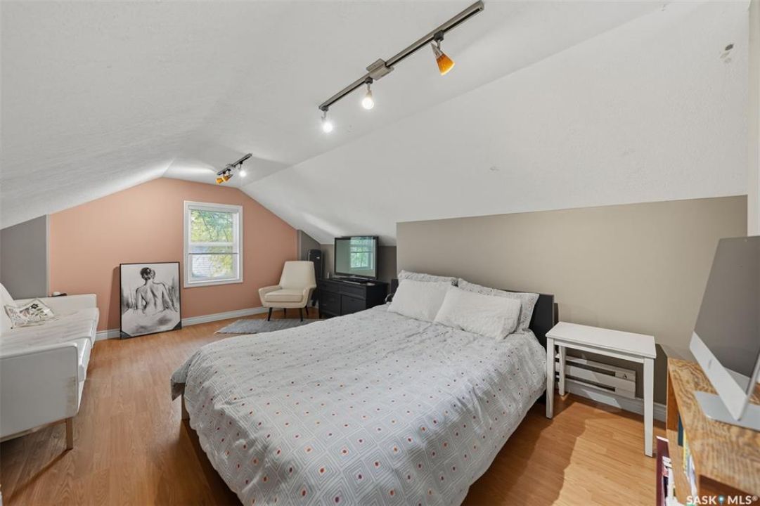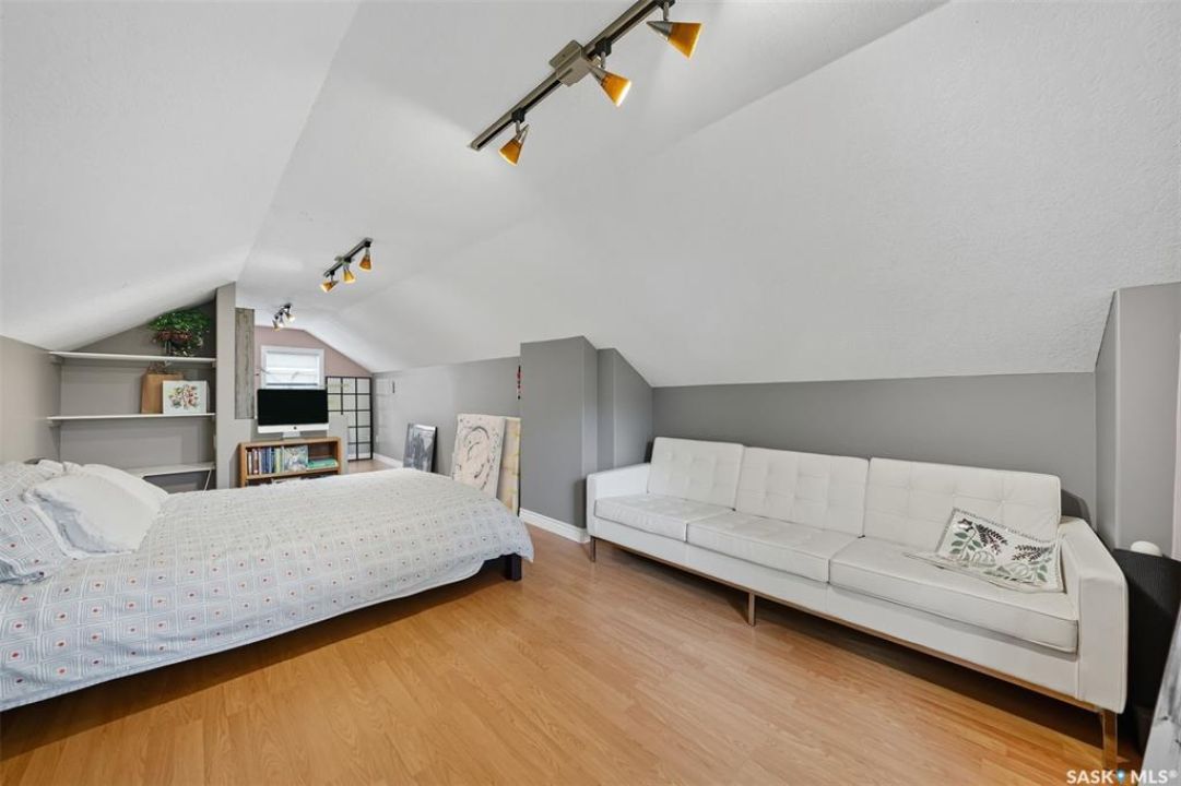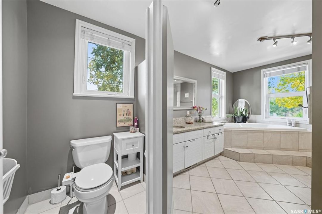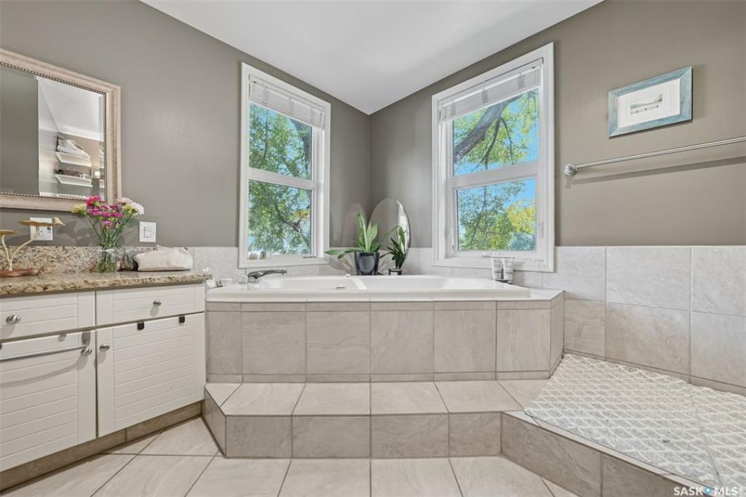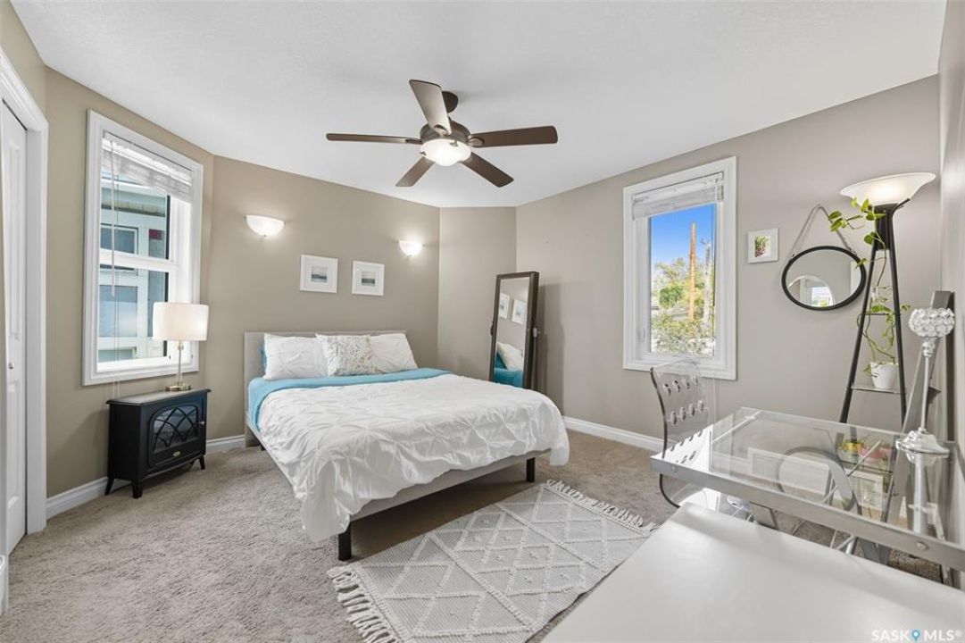 This beautifully maintained 2 storey character home offers 2,310 sq. ft. on three levels, blending timeless charm with modern upgrades in the heart of Caswell Hill. A welcoming front veranda (27' x 9') sets the stage before entering a den with glass French doors, stained-glass accents, and built-in shelving — perfect as a home office or TV space. The main floor features hardwood floors, a living room with gas fireplace and stone mantle, and a spacious formal dining room with a wet bar and custom desk area. The updated kitchen includes maple cabinetry, granite countertops, stainless steel farmhouse sink, pot filler, stone backsplash, in-floor heat, and appliances, with a built-in seating nook that provides a cozy spot for casual meals. Upstairs offers 3 bedrooms in total: two on the second level including a master with private veranda, plus a flexible third-level bedroom or studio. The second-floor bath features a jet tub and freestanding shower. The fully developed basement adds versatility with a bedroom, refreshed bath, and a new wet bar with cabinetry, sink, fridge, dishwasher, and heated porcelain tile flooring — ideal for entertaining or guest use, with a separate side entrance enhancing convenience. Outdoor spaces include a three-season sunroom, backyard deck (15'11” x 15'10”) with gas BBQ hookup, stamped concrete, perennial landscaping, and RV parking. A highlight of the property is the 42' x 30' heated detached garage, offering abundant space for vehicles, hobbies, or a year-round workshop. High-efficiency furnace, air conditioner, and water heater (2011). Complete with central vac, shed, and appliances included, this Caswell Hill gem is listed at $539,900 (MLS ).