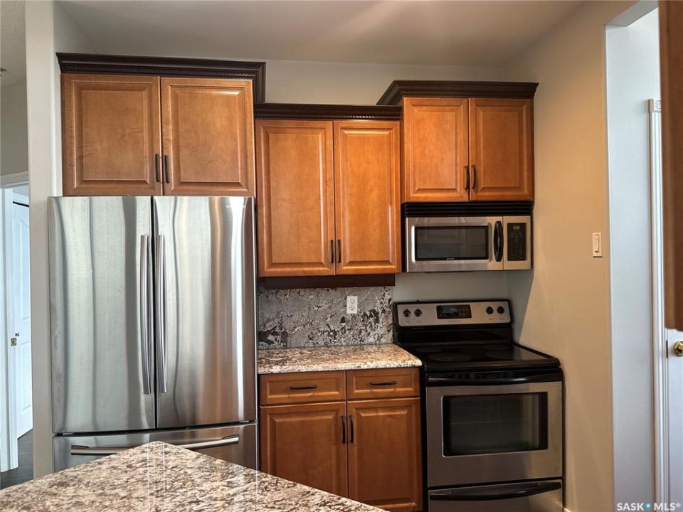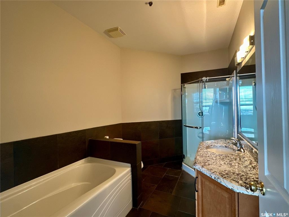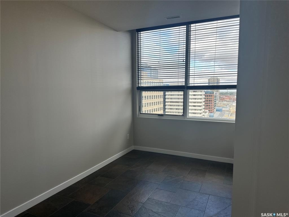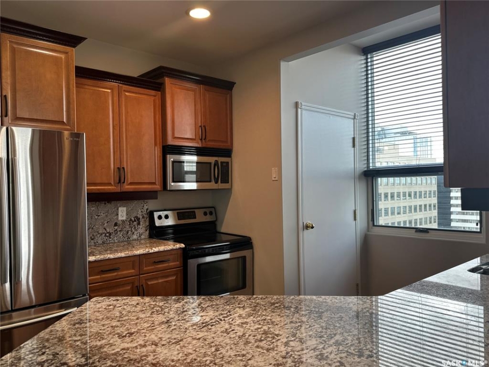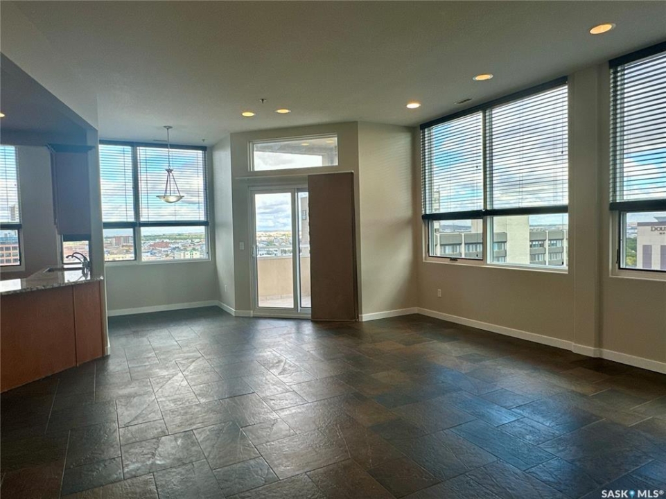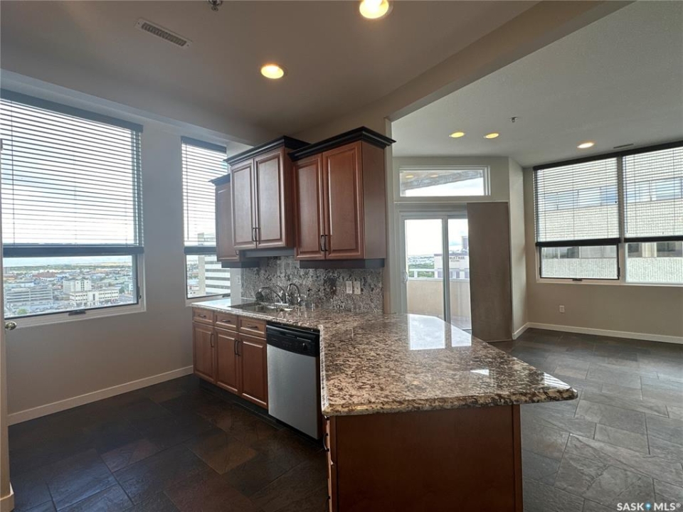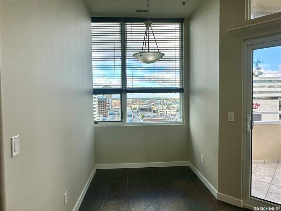 Discover this beautiful 2-bedroom, 2-bathroom condo on the 12th floor of Victoria Place, ideally located just steps away from Regina's vibrant downtown. With restaurants, shopping, and services all within walking distance, this prime location offers unparalleled convenience. This spacious condo features a modern kitchen with stylish finishes, counter seating, and a separate dining area. Large windows and 9' ceilings fill the living spaces and bedrooms with abundant natural light, creating a warm and inviting atmosphere. The primary bedroom is a private retreat, complete with a closet and an ensuite bath that includes both a separate tub and shower. The second bathroom has been upgraded with a granite countertop and offers a shower/tub combo for added comfort. A large storage room, along with an additional laundry area with extra storage, ensures you'll have all the space you need. Step out onto the east-facing balcony and take in the stunning city views. This unit includes one underground parking stall, and the condo fees cover building maintenance, reserve fund contributions, garbage removal, and water/sewer. Recently updated with new baseboards and a fresh coat of paint, this condo is move-in ready and waiting for its new owner! Schedule a viewing with your real estate agent today to experience this exceptional property firsthand!