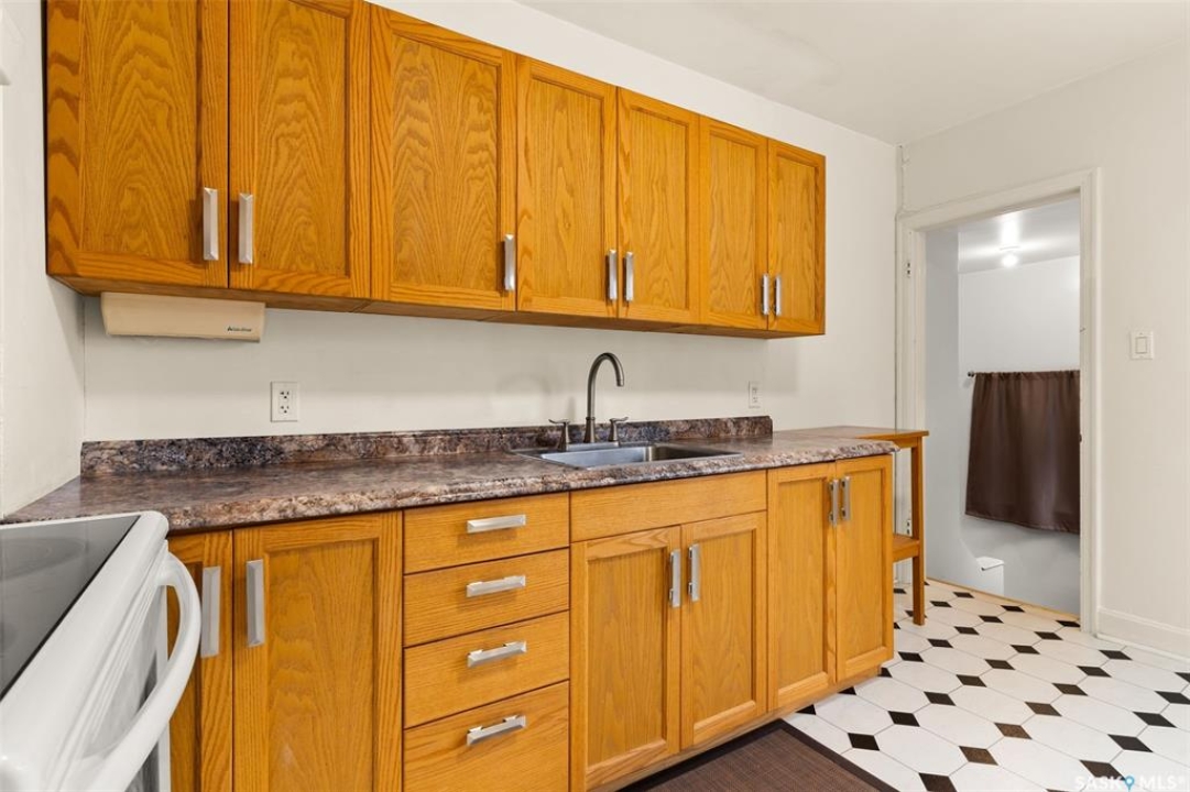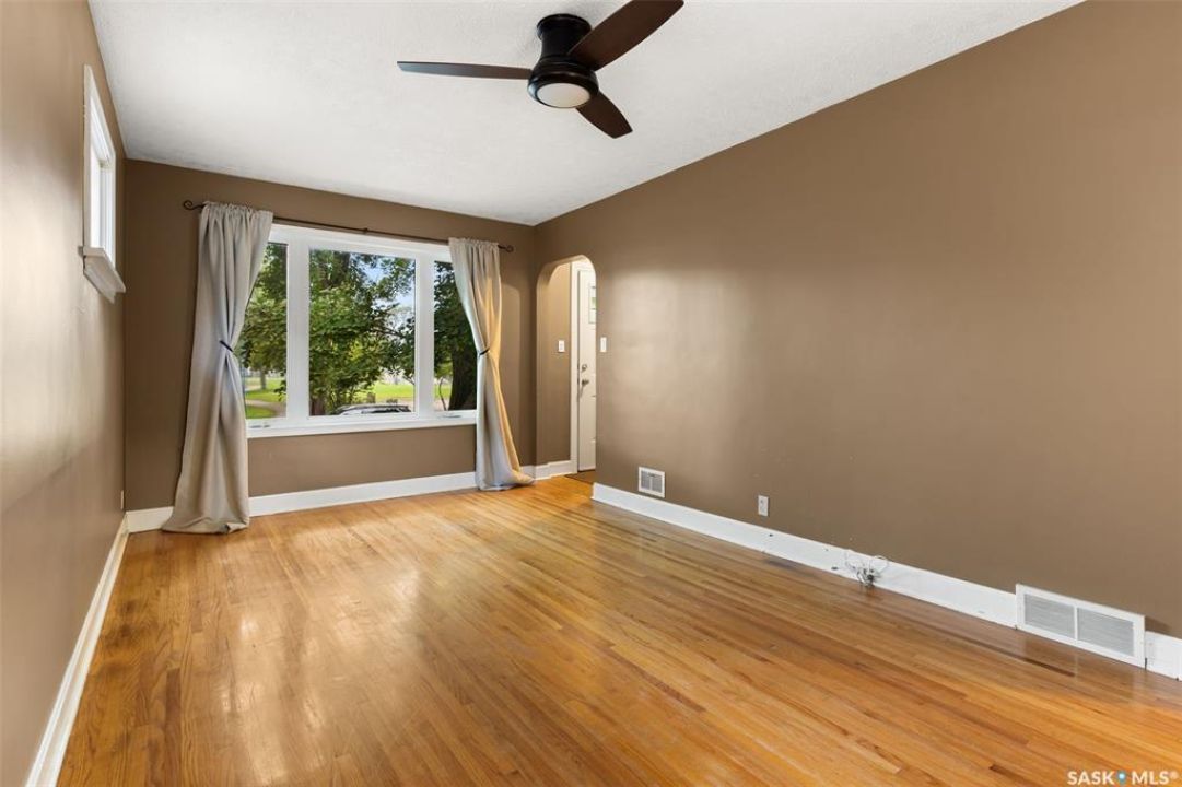 Welcome to 1835 Quebec Street! This charming 772 sq. ft. bungalow offers an affordable opportunity to own in Regina. The main floor features two bedrooms, a four-piece bathroom, and a good-sized living room with beautiful original hardwood flooring that adds character to the home. The eat-in kitchen provides ample space for family meals, complete with oak cabinetry, updated hardware, a large sink, and a hood fan over the stove. Enjoy the benefits of some updated PVC windows and an upgraded electrical panel for peace of mind. The basement adds excellent functionality with three versatile dens, recreation space and plenty of storage. Outside, you'll find a cozy backyard with room to relax, plus convenient off-alley parking. Appliances are included (fridge, stove, washer, and dryer), making this a move-in ready option. Close to downtown amenities! If you're looking for affordability, character, and function, this property is worth a look!