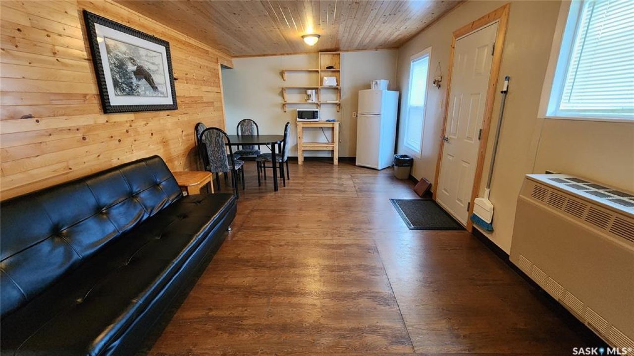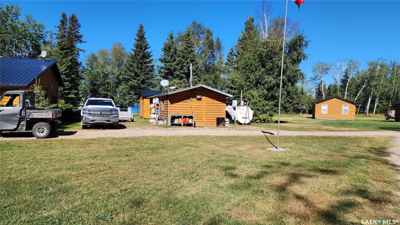 Imagine owning just over 300 feet of lakefront on one of Saskatchewan's premier fishing lakes. Located in the welcoming community of Michel Point, this unique property has been operated for years as a lodge and offers incredible potential as a business opportunity, retirement retreat, or private getaway. The property features six 2-bedroom units, with four equipped with a 2-piece bathroom, and all heated by propane for year-round comfort, along with a shower house, common kitchen, on-site parking, and two RV stalls. The owner's living quarters include a commercial kitchen, propane heater, wood-burning stove, and a 10' x 32' covered porch complete with a two-man SpaBerry hot tub and upgraded electrical. Additional outbuildings include storage sheds, a bunkie, and a filleting shack. Utilities are well set up with two rented propane tanks, three septic tanks, and two water tanks for year-round use, with the property also connected to the community water system sourced from a well. This gated property offers both privacy and security, with endless possibilities to transform it into your dream home, an income-generating lodge, or a peaceful lakeside retreat.