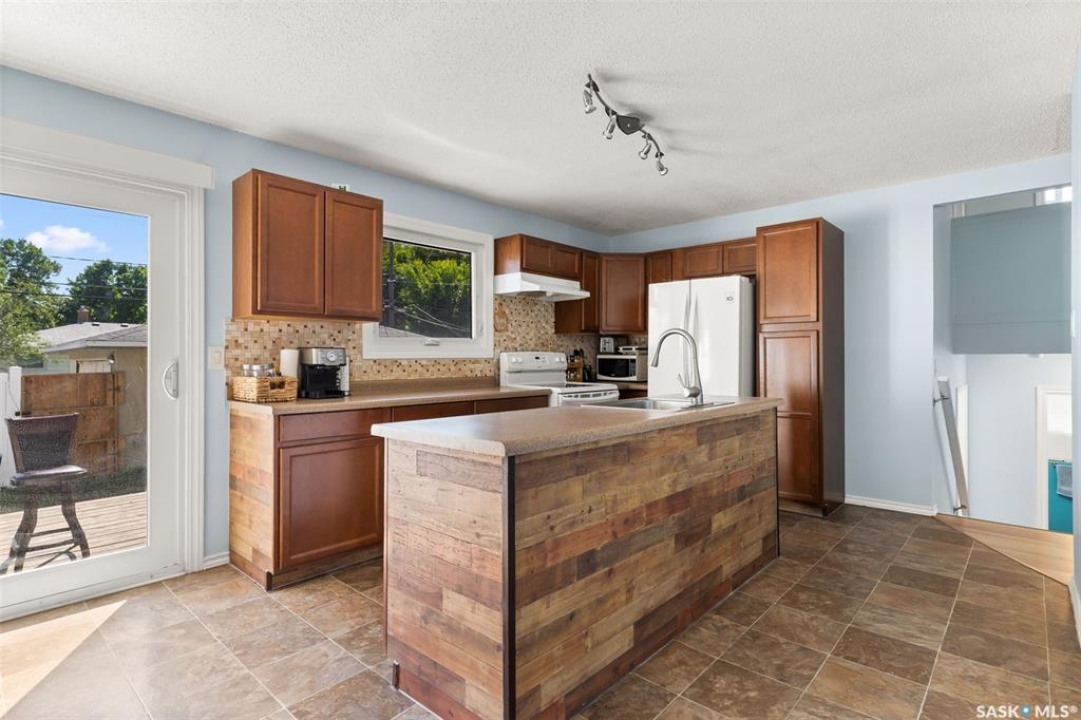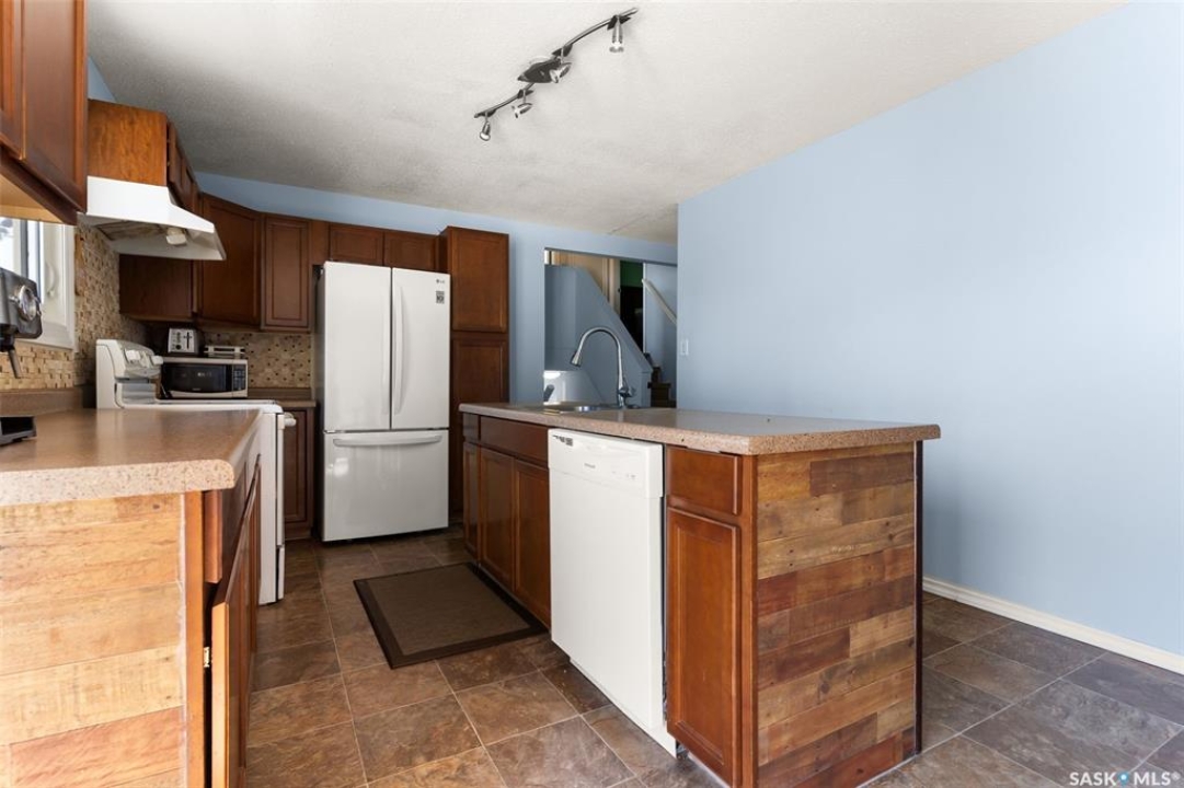 Welcome to this four-level split offering 1,318 sq ft of living space on a 4,451 sq ft lot. The main floor features a bright living room with newer flooring and fresh paint, and an open kitchen/dining area with a large island and direct access to the deck. Upstairs are two spacious bedrooms and an updated 4-piece bathroom. The lower level adds two more bedrooms and a second bathroom, while the basement provides a large rec room and utility/laundry area. The current owners have made many updates including new windows, flooring, paint, a new back fence, and freshly insulated garage. Other recent improvements include shingles (3 years), furnace, south wall bracing, updated electrical, bathroom vanities and shower. Outside you'll find a good-sized deck, garden space, and a double detached garage with new insulated overhead door. The home is conveniently located across from École Monseigneur de Laval High School with bus pickup out front for Elsie Mironuck and St. Gregory schools. Close to shopping and bus routes, this move-in-ready property is a solid option for families looking for space and updates already done.