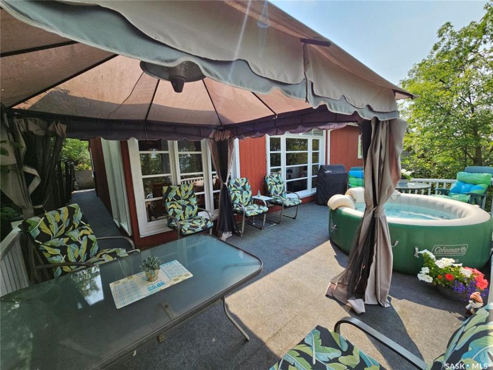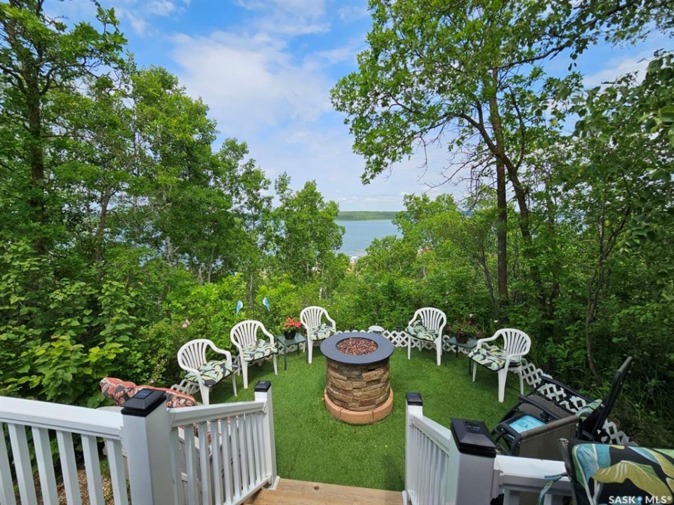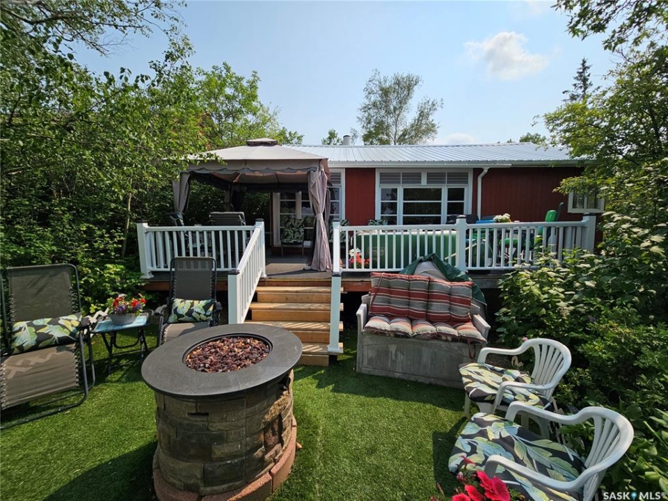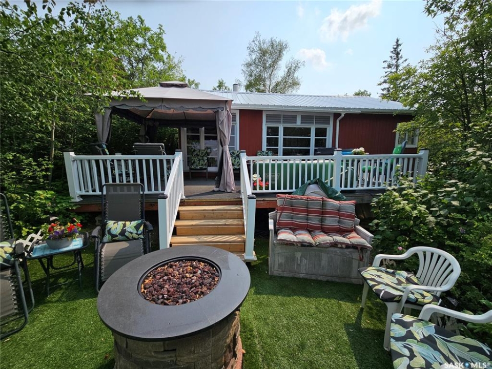 Charming turn key Lake View Retreat with Stunning Outdoor Living. 742 Lakeside Avenue. Experience the ultimate in lakeside relaxation with this enchanting White Bear Lake home, designed for those who crave both comfort and beauty. Situated on a picturesque lot, this well-maintained 720 sq. ft. home, complemented by a 110 sq. ft. sunroom, offers a total of 830 sq. ft. of inviting living space, as well as room for a guest house. Enjoy the breath taking views of White Bear Lake from your expansive 20'x12' deck. The back is an entertainer's dream, featuring a spacious deck with ample seating, a charming gazebo with a heater, and a cozy fire pit area for those quintessential lake life evenings. Gather around the fire pit and savor the tranquil ambiance of lakeside living. Unwind in the included hot tub after a long day, perfect for relaxation and rejuvenation. The deck boasts PVC railings with solar lights, adding both style and safety to your outdoor experience. The backyard is accessible from both the house and a wrap-around walking area from the front. The open concept living and dining areas are designed for seamless conversation and enjoyment, featuring a cozy electric fireplace and numerous windows that flood the space with natural light while showcasing stunning lake views. Cook in style with high-end appliances, ample cupboard space, a tasteful backsplash, and a convenient cut-out that allows for interaction with guests in the living room. The home includes two generously sized bedrooms for restful nights. The four-piece bathroom features a granite countertop, newer fixtures, and a rain shower head for a spa-like experience. Washer/Dryer are Conveniently tucked away in their own dedicated area. Equipped with a 1000-gallon water tank and a 1000-gallon septic tank. This idyllic retreat promises a serene escape with all the comforts of home. Walking distance to the beach!. Don't miss the opportunity to own this lakeview gem and to enjoy white Bear Lake.