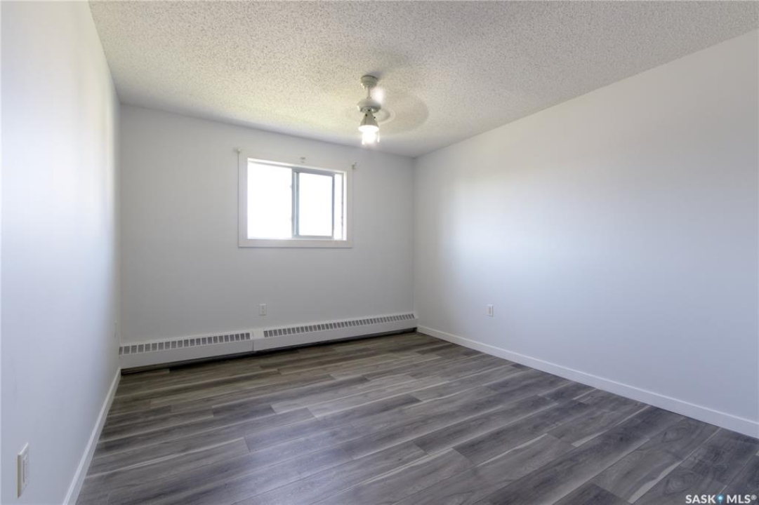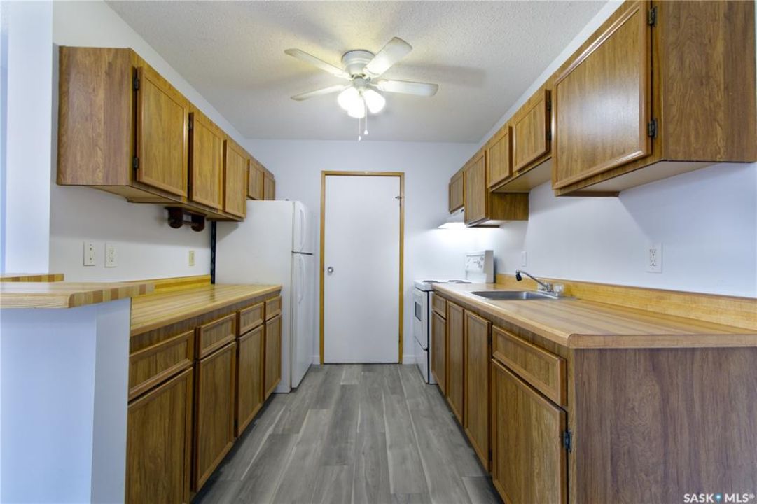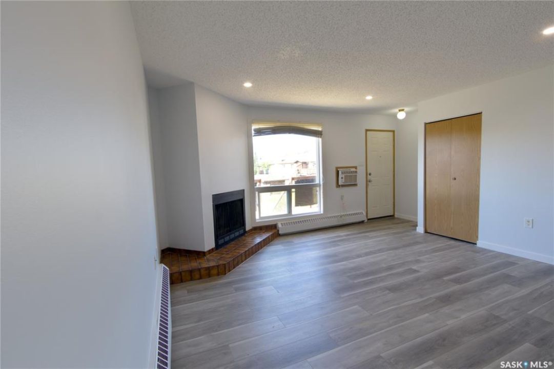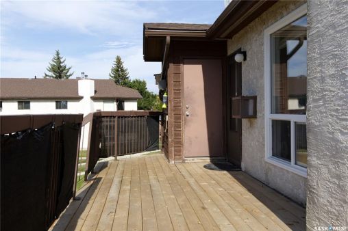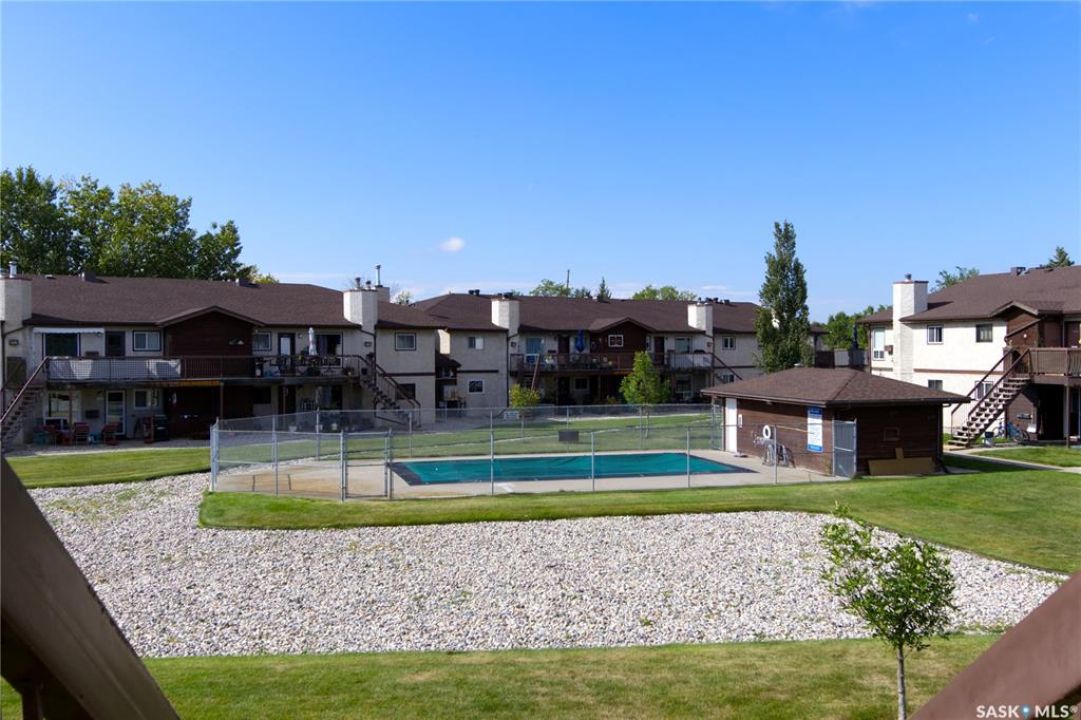 Welcome to this spacious and move-in ready two-bedroom condo located in the highly sought-after Gardiner Heights neighbourhood, a peaceful residential area surrounded by beautiful homes, tree-lined streets, and excellent amenities. Known for its family-friendly atmosphere, Gardiner Heights offers easy access to schools, parks, shopping, and convenient transit routes, making it one of Regina's most desirable communities. This upper-level unit has been freshly painted and features updated flooring throughout. A sunny private deck overlooks the outdoor swimming pool and well-maintained green space, offering the perfect spot to relax during summer months. Inside, the living room is filled with natural light and anchored by a charming fireplace and hearth. The adjoining dining area flows into a galley-style kitchen, which conveniently connects to the in-suite laundry space. Both bedrooms are generously sized, with the primary bedroom featuring a walk-in closet. The updated four-piece bathroom includes a stylish tiled tub surround. For added convenience, the unit offers excellent storage options, with a large in-suite storage room and an additional storage space on the deck—ideal for patio furniture, bikes, or seasonal items. Condo fees include heat, water, sewer, garbage pickup, common area maintenance and insurance, snow removal, lawn care, and reserve fund contributions, allowing for a true low-maintenance lifestyle. An exclusive-use parking stall is located nearby for easy access. Whether you're a first-time homeowner, student, or downsizer seeking a carefree lifestyle, this condo offers the perfect balance of comfort, location, and amenities in one of Regina's most desirable neighbourhoods.