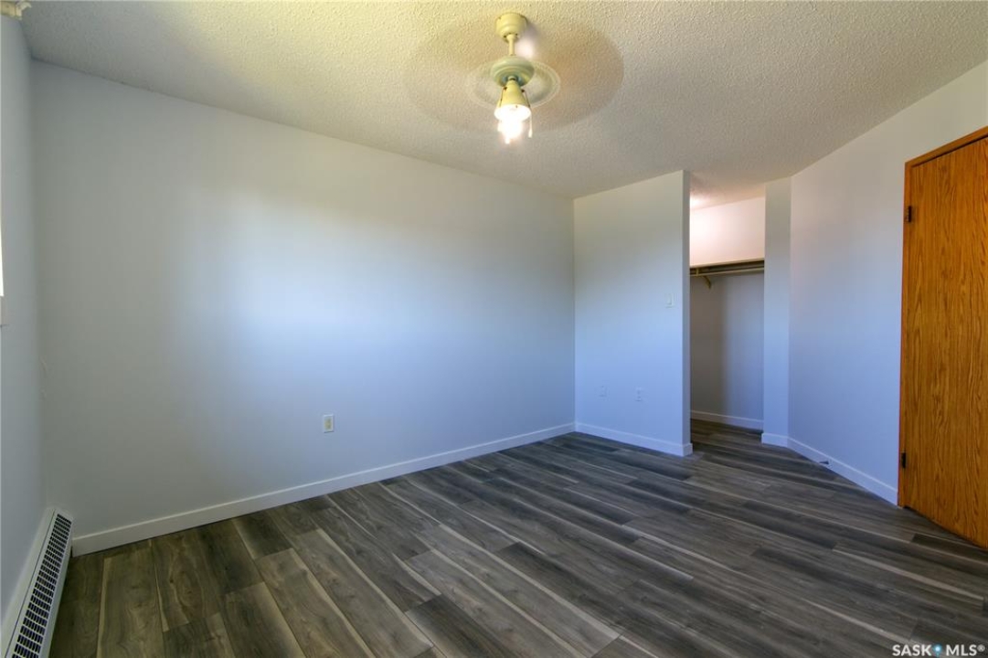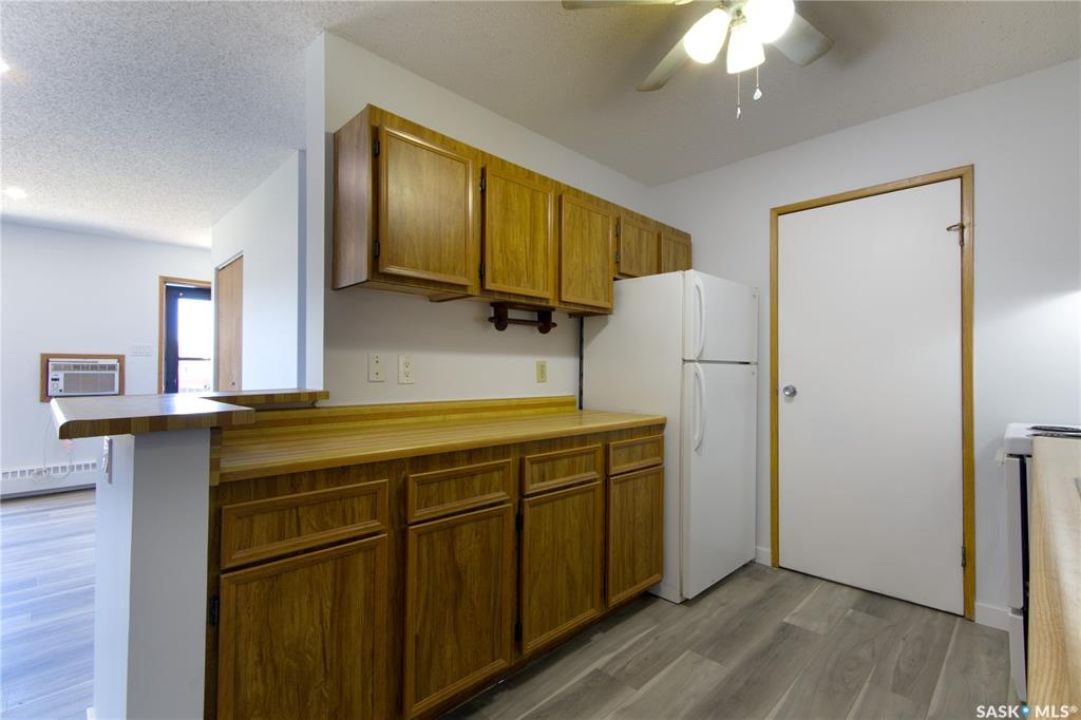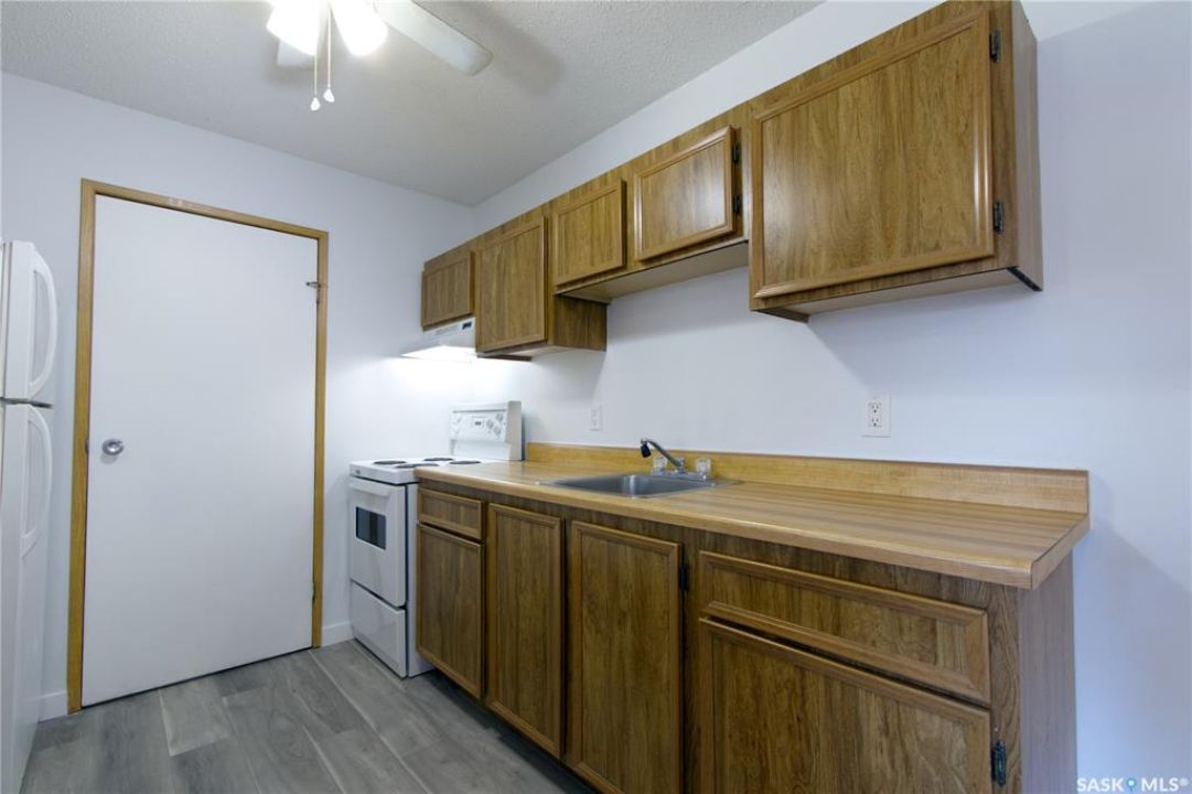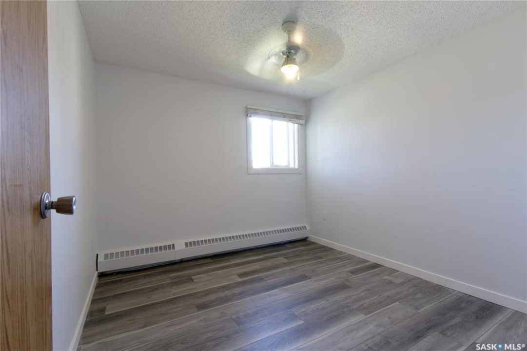 Welcome to this spacious and move-in ready two-bedroom condo located in the highly sought-after Gardiner Heights neighbourhood, a peaceful residential area surrounded by beautiful homes, tree-lined streets, and excellent amenities. Known for its family-friendly atmosphere, Gardiner Heights offers easy access to schools, parks, shopping, and convenient transit routes, making it one of Regina's most desirable communities. This upper-level unit has been freshly painted and features updated flooring throughout. A sunny private deck overlooks the outdoor swimming pool and well-maintained green space, offering the perfect spot to relax during summer months. Inside, the living room is filled with natural light and anchored by a charming fireplace and hearth. The adjoining dining area flows into a galley-style kitchen, which conveniently connects to the in-suite laundry space. Both bedrooms are generously sized, with the primary bedroom featuring a walk-in closet. The updated four-piece bathroom includes a stylish tiled tub surround. For added convenience, the unit offers excellent storage options, with a large in-suite storage room and an additional storage space on the deck—ideal for patio furniture, bikes, or seasonal items. Condo fees include heat, water, sewer, garbage pickup, common area maintenance and insurance, snow removal, lawn care, and reserve fund contributions, allowing for a true low-maintenance lifestyle. An exclusive-use parking stall is located nearby for easy access. Whether you're a first-time homeowner, student, or downsizer seeking a carefree lifestyle, this condo offers the perfect balance of comfort, location, and amenities in one of Regina's most desirable neighbourhoods.