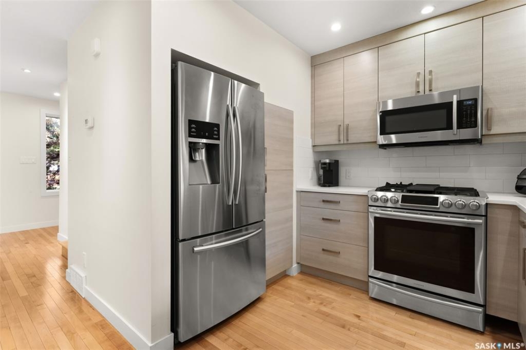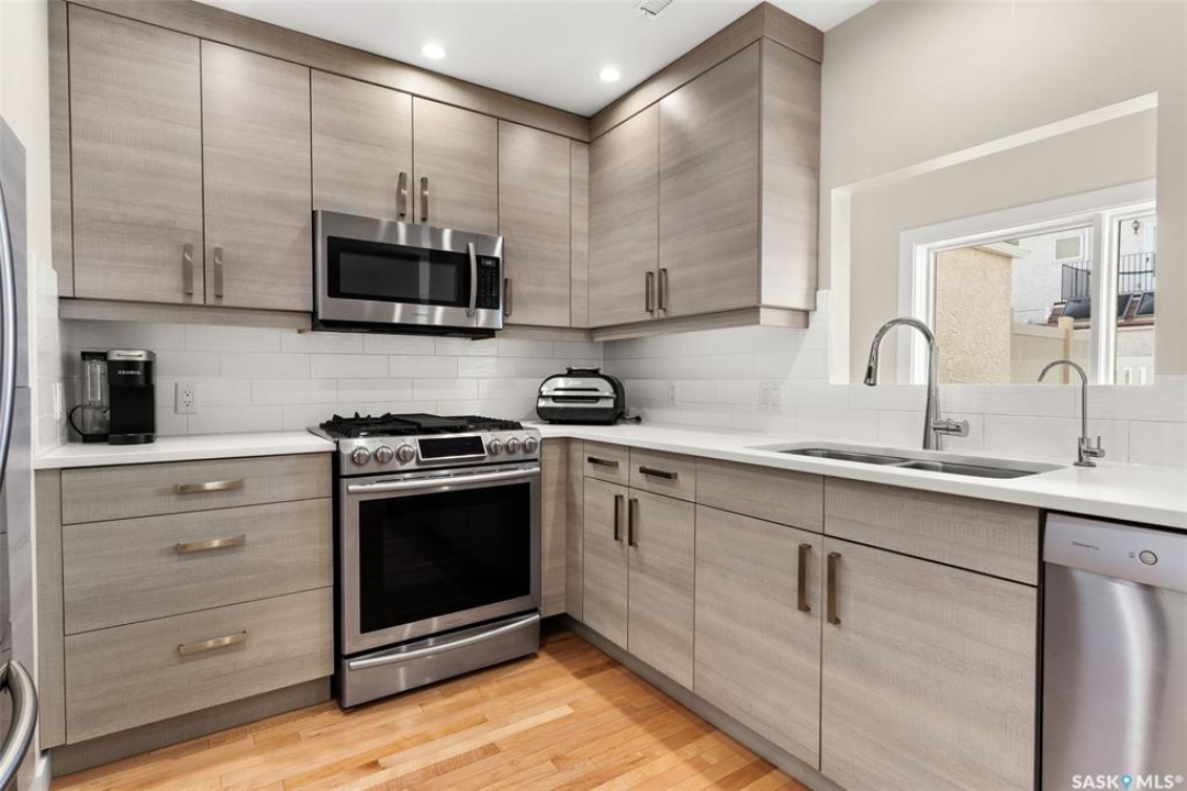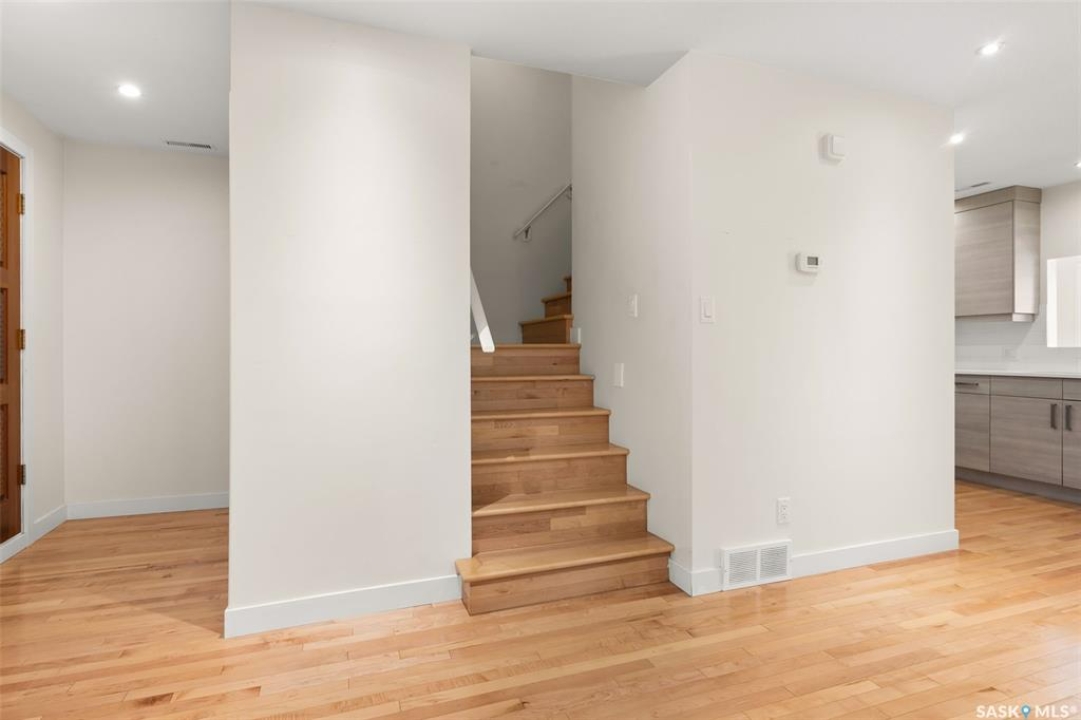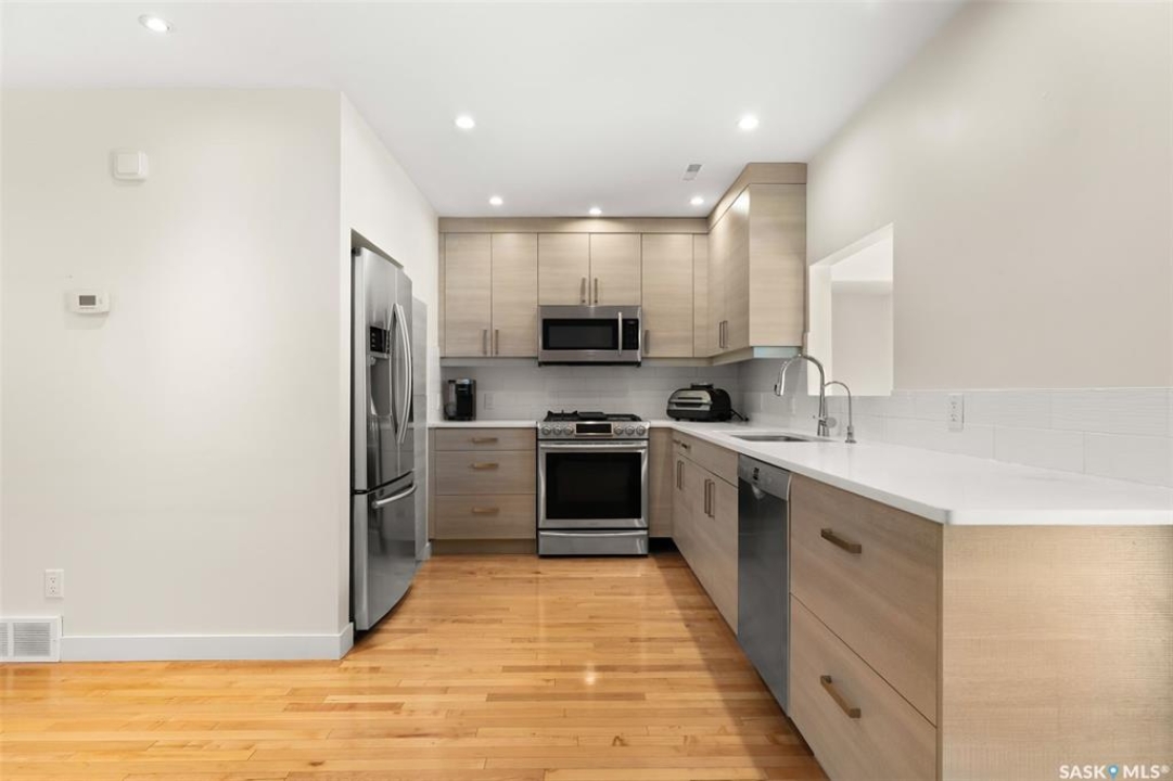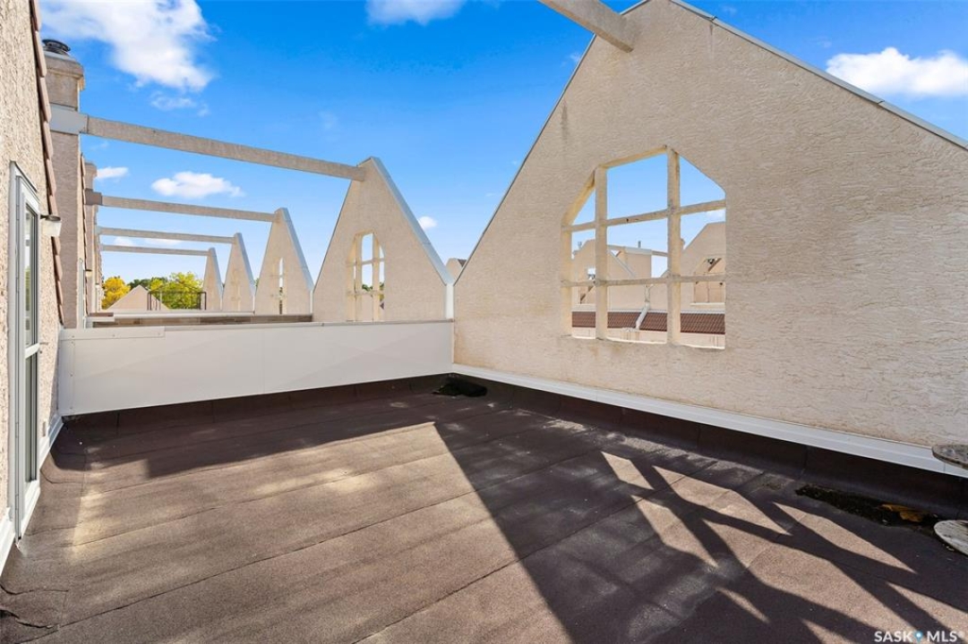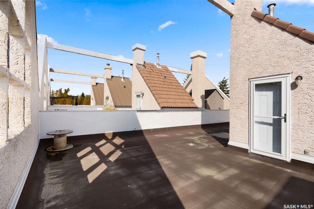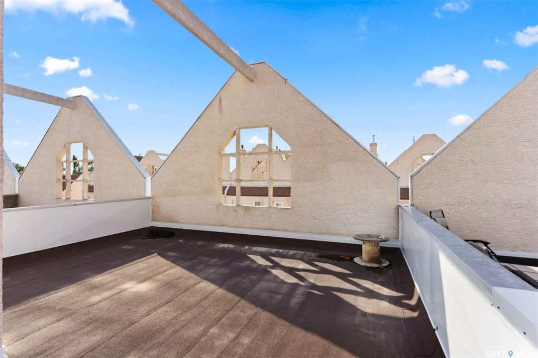 Welcome to #27–2338 Assiniboine Avenue East in the heart of Richmond Place! Step inside this renovated 1,870 sq. ft. condo and immediately feel the warmth of natural light streaming through large windows in the foyer. The tiled foyer with in-floor heat and generous coat closet makes for a welcoming entry, while a private patio just off the front door is the perfect spot for your afternoon coffee. A two-piece bathroom on this level adds convenience for you and your guests. The main floor is designed for both comfort and entertaining. Maple hardwood runs seamlessly through the open-concept kitchen, dining, and living area. The kitchen is a true showpiece with modern grey cabinetry, quartz countertops, tiled backsplash, and premium stainless steel appliances, including a gas range and Bosch dishwasher. From casual weeknights to hosting friends, this space balances style and function beautifully. A secondary entry opens to a deck facing green space, giving you another way to enjoy the outdoors! Upstairs, the primary suite feels like a retreat. Hardwood floors carry through to a spacious bedroom, complete with a walk-in closet, custom ensuite with double sinks, tile floors, and a tiled walk-in shower. Two additional bedrooms, one with a west facing balcony, another beautifully updated bathroom, and the convenience of in-suite laundry complete this level. The top floor is the crown jewel: a private rooftop deck designed for entertaining and relaxation. Whether it's summer get togethers, evening drinks, or quiet afternoons in the sun, this space is your escape above the city! This condo also includes two underground parking stalls, a 9x12 ft. storage room, and peace of mind knowing you're in a quiet, predominantly owner-occupied complex. Perfectly located-minutes from the U of R, Sask Polytech, W.S. Hawrylak Elementary, and all the east-end amenities-this home combines modern upgrades with a lifestyle of convenience!