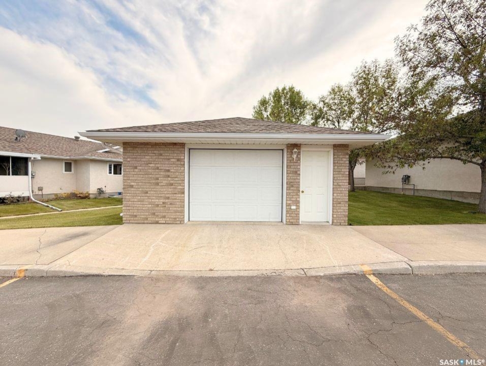 A Rare Bungalow Condo with a Double Garage in Pioneer Estates! Bungalow-style condos with a double attached garage in Pioneer Estates, a gated community in the sought-after Trail subdivision, almost never hit the market—making this home an opportunity you won't want to miss! Welcome to #417 – 165 Robert Street W, a well-appointed end-unit bungalow condo that blends convenience, comfort, and space. Set at the quiet end of the development, it offers privacy, minimal traffic, and easy access to visitor parking and the community clubhouse. A nearby path connects you directly to the Chinook Pathway and you're just steps from the Wheatland Mall. Inside, the foyer greets you with a spacious, welcoming entry. The bright, open-concept layout continues into the living room, which is filled with natural light from a large west-facing window. The kitchen offers abundant oak cabinetry, generous counter space, and a pantry, flowing seamlessly into the dining area. Just beyond, an east-facing sunroom provides the perfect spot for morning coffee or an evening unwind. The main floor also features a laundry room, a secondary bedroom, a 4-piece bath, and a primary suite with a walk-in closet and private 3-piece ensuite. The fully developed basement extends your living space with a large recreation room, two storage areas, a sizable bedroom with its own 3-piece ensuite and walk-in closet, plus a versatile den ideal for guests or a home office. Additional value: shingles replaced in 2019. Condo living is effortless with a low $300/month fee that covers lawn care, snow removal, exterior maintenance/insurance, and garbage pickup. Homes like this—bungalow style, double garage, spacious and bright—are rarely listed in Pioneer Estates. Don't wait on this unique chance!