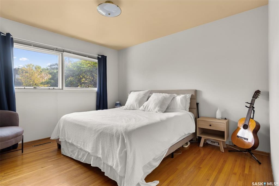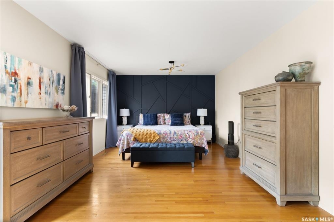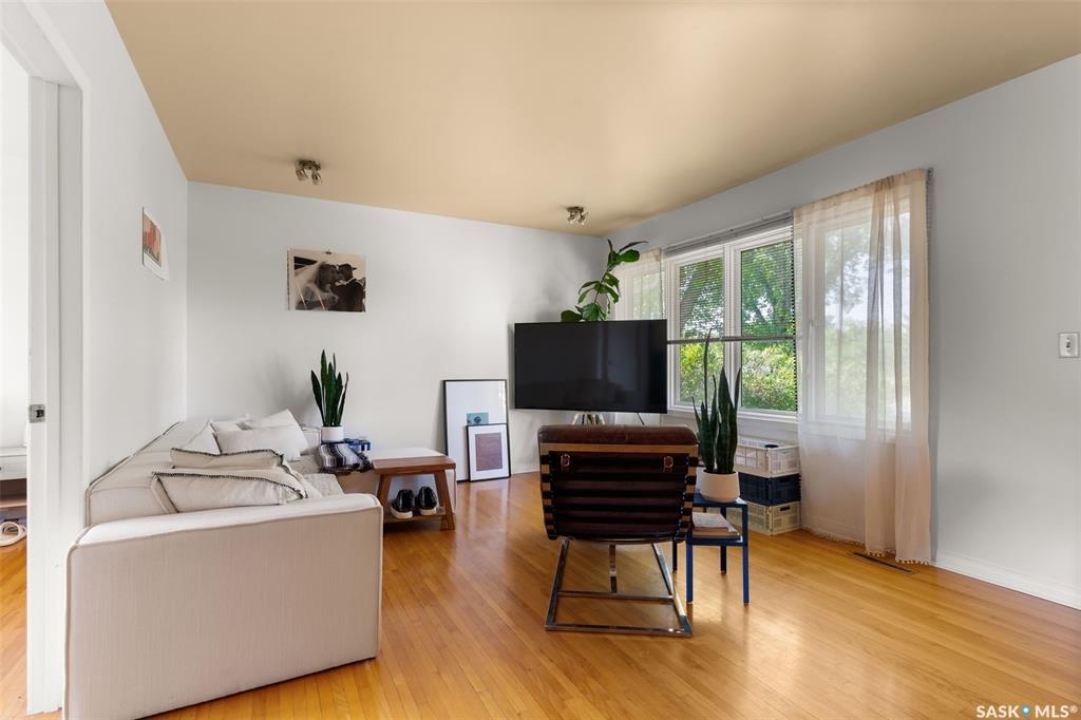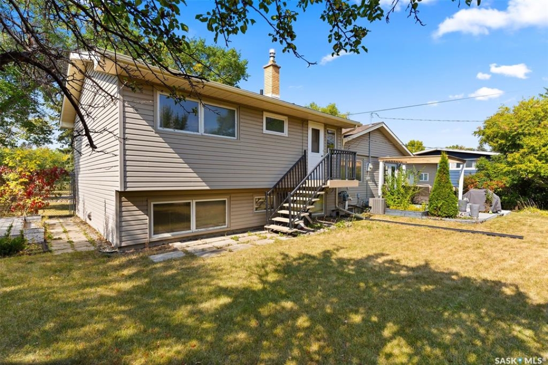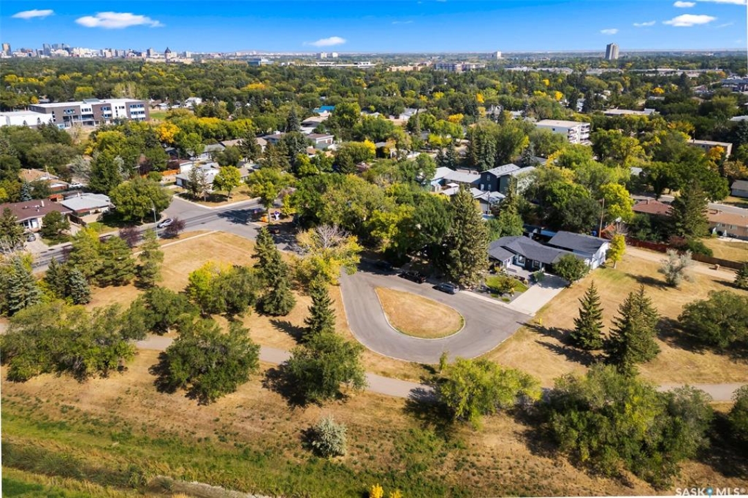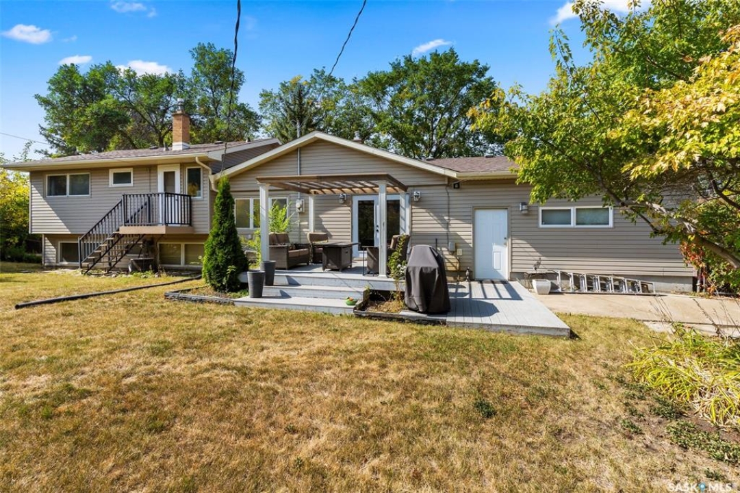 Welcome to a truly unique opportunity in the heart of South Regina. Tucked away on a quiet cul-de-sac overlooking green space, this home offers both privacy and convenience in a prime location. Originally designed as a single residence, the layout now provides a rare opportunity for families in need of an attached nanny suite or multi-generational living. The main home showcases stunning cathedral ceilings that create a bright and open feel, complimented by a series of thoughtful updates in recent years. The refreshed kitchen features stone counters with a waterfall edge, glass tile backsplash, updated flooring, and newer appliances. The primary bedroom is spacious and can double as an exercise space or reading nook. Here garden doors lead to a two-tiered composite deck with pergola and view of the east-facing backyard. Down the hall, a recently remodelled 3-piece bathroom with stylish shower and off the kitchen is access to an attached and heated (20'x26') garage. The fully finished basement adds to the living space with a 2nd bedroom, a den, 4-piece bathroom and laundry. Additional upgrades include modern lighting, a newer furnace, shingles and eaves all within the last 10 years. The second home offers more of the original 60's charm with its own private entrance. Here you will find a cozy space with a galley kitchen and an additional 3 bedrooms and 2 bathrooms. Paved walking paths right out your front door will take you to Kinsmen Park or watch your kids cross the street to school with the recently completed joint-use École St. Pius & Argyle Elementary Schools just a few steps away. Set on an impressive 100ft frontage (with 4 x 25ft lots), this property offers exceptional space and flexibility in one of the city's most desirable neighbourhoods. With its unique configuration, sought-after location, and blend of updates mixed with original charm this home presents an incredible opportunity you won't find anywhere else.