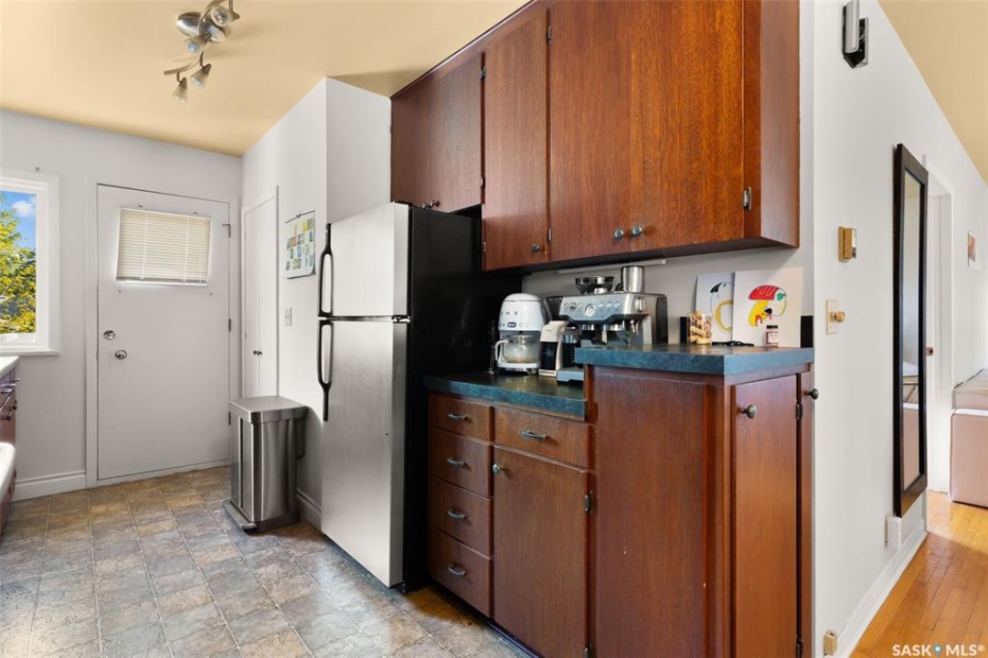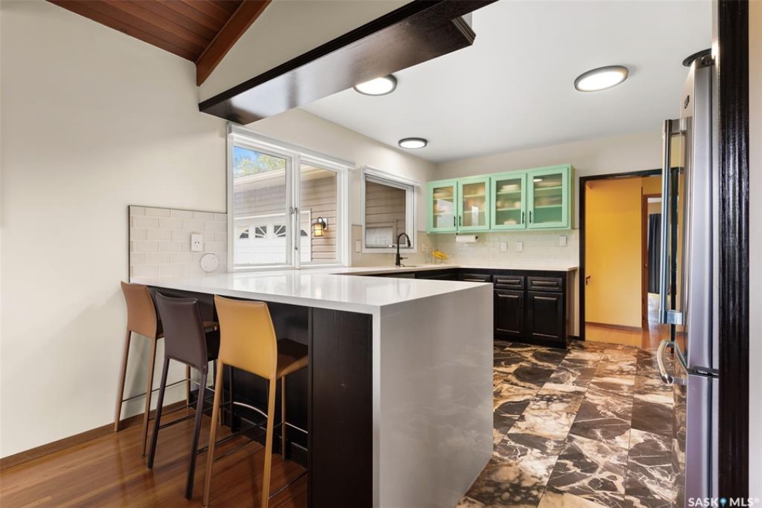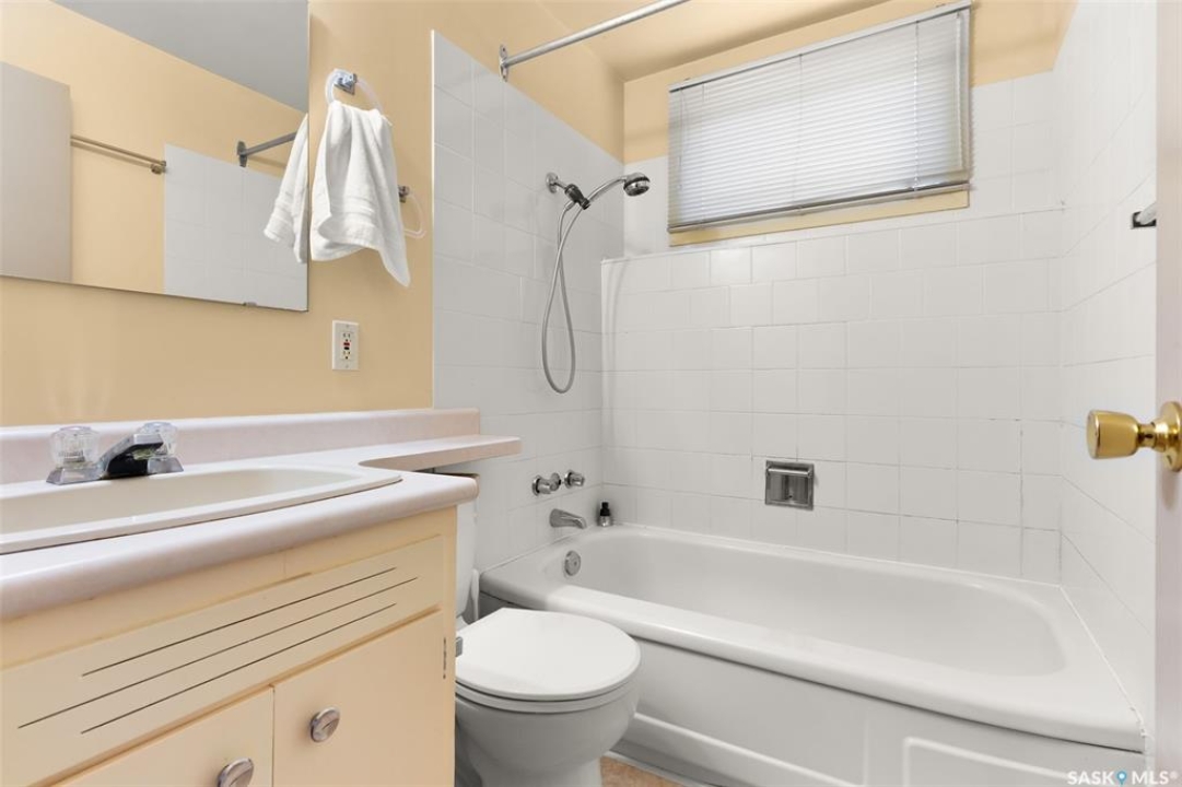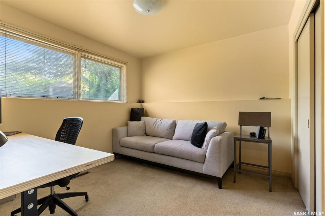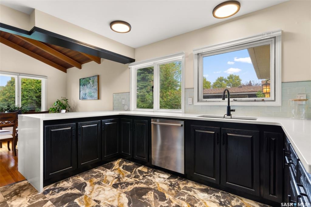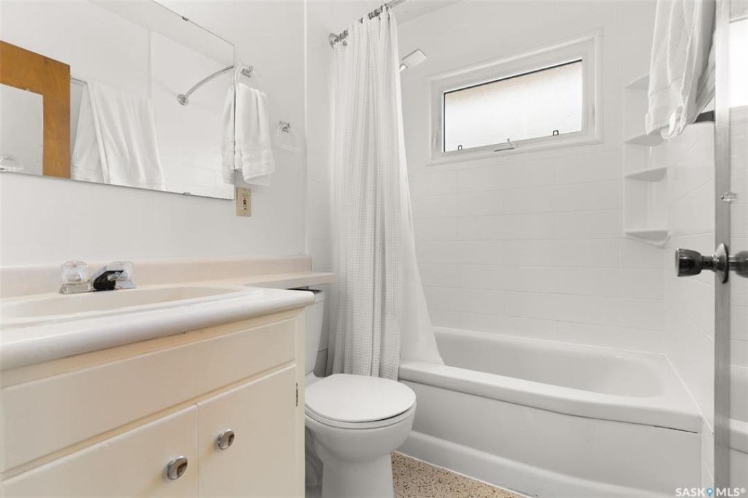 Welcome to a truly unique opportunity in the heart of South Regina. Tucked away on a quiet cul-de-sac overlooking green space, this home offers both privacy and convenience in a prime location. Originally designed as a single residence, the layout now provides a rare opportunity for families in need of an attached nanny suite or multi-generational living. The main home showcases stunning cathedral ceilings that create a bright and open feel, complimented by a series of thoughtful updates in recent years. The refreshed kitchen features stone counters with a waterfall edge, glass tile backsplash, updated flooring, and newer appliances. The primary bedroom is spacious and can double as an exercise space or reading nook. Here garden doors lead to a two-tiered composite deck with pergola and view of the east-facing backyard. Down the hall, a recently remodelled 3-piece bathroom with stylish shower and off the kitchen is access to an attached and heated (20'x26') garage. The fully finished basement adds to the living space with a 2nd bedroom, a den, 4-piece bathroom and laundry. Additional upgrades include modern lighting, a newer furnace, shingles and eaves all within the last 10 years. The second home offers more of the original 60's charm with its own private entrance. Here you will find a cozy space with a galley kitchen and an additional 3 bedrooms and 2 bathrooms. Paved walking paths right out your front door will take you to Kinsmen Park or watch your kids cross the street to school with the recently completed joint-use École St. Pius & Argyle Elementary Schools just a few steps away. Set on an impressive 100ft frontage (with 4 x 25ft lots), this property offers exceptional space and flexibility in one of the city's most desirable neighbourhoods. With its unique configuration, sought-after location, and blend of updates mixed with original charm this home presents an incredible opportunity you won't find anywhere else.