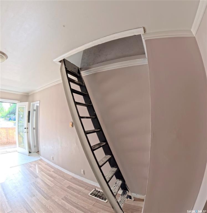 Welcome to this charming 1 ½ storey home in the Regent Park neighborhood of Regina. Built in 1949, this cozy property offers character with practical updates. Inside, you'll find laminate flooring in the living room, kitchen, and bedroom, with linoleum in the bathroom for easy upkeep. The main floor features one bedroom and a full bath, while the upper level provides a versatile loft space complete with a wall A/C unit—ideal for a home office, guest area, or additional living space. Outside, the home sits on a generous lot with a large backyard, perfect for gardening, entertaining, or simply enjoying the outdoors. Located near Lewvan Drive, this home offers convenient access to shopping, schools, and transit, making it a great choice for first-time buyers, downsizers, or investors alike.