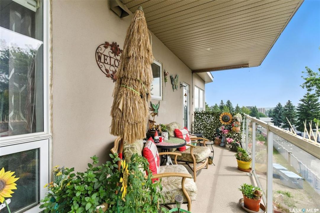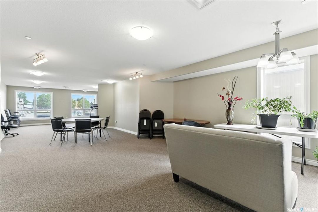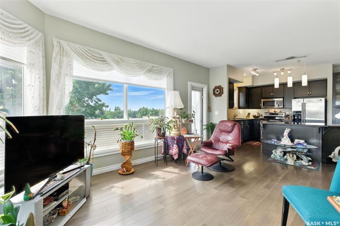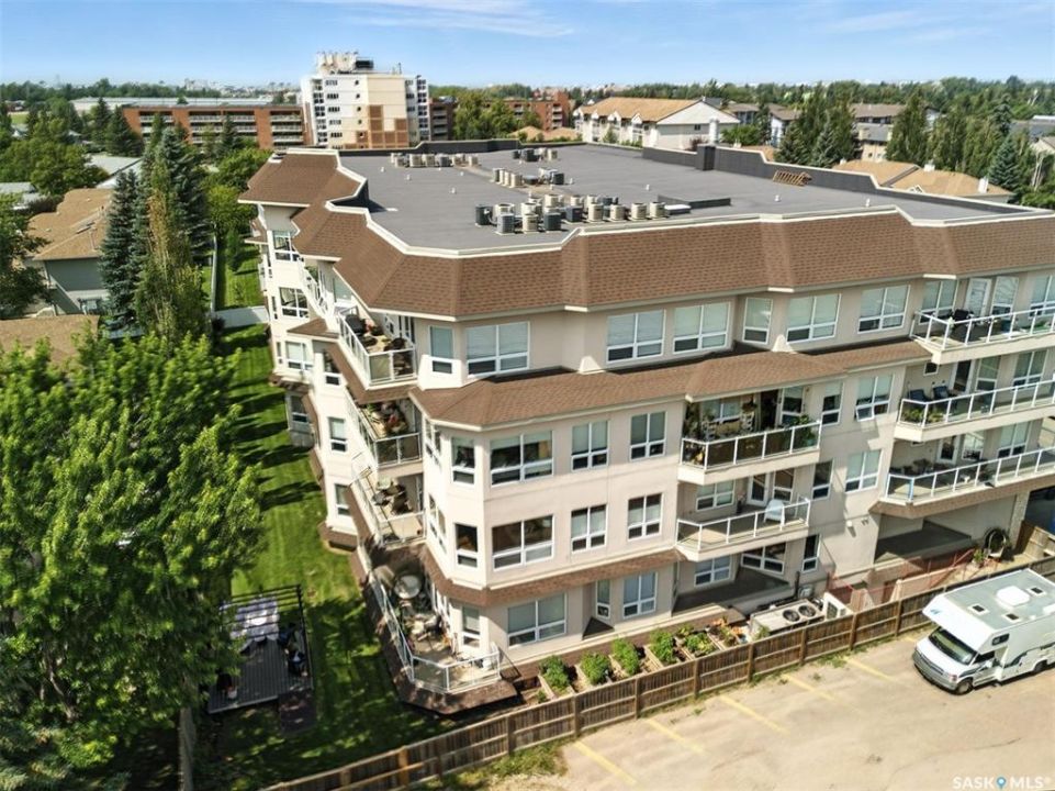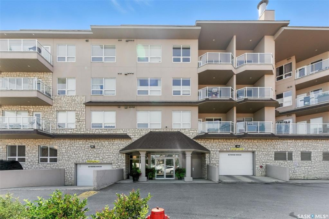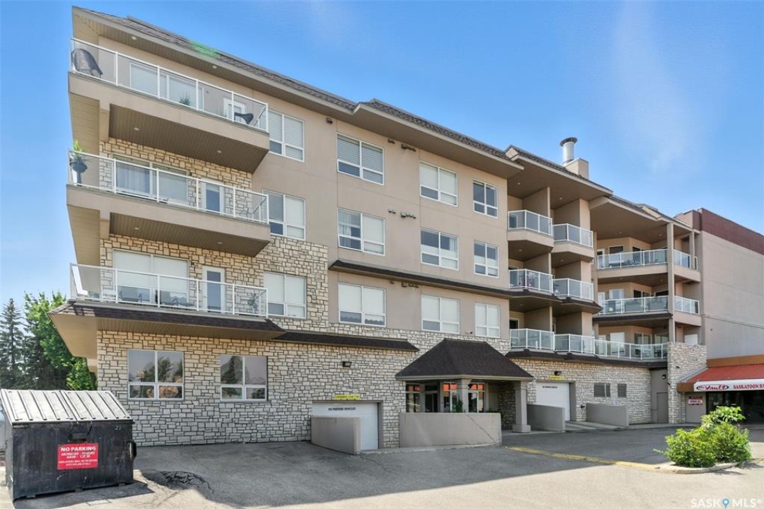 Welcome to Unit #303 – 227 Pinehouse Drive, a bright and spacious third-floor corner unit with southeast exposure, offering beautiful views and an abundance of natural light throughout the day. Located in the heart of Lawson Heights, this home is just steps from the Meewasin Trail, parks, the South Saskatchewan River, transit, restaurants, and all the amenities of Lawson Heights Mall. This 1,289 sq ft unit features a functional open-concept layout that blends comfort and style. The kitchen includes an upgraded double oven, granite countertops, and added pantry space, making it perfect for cooking and entertaining. Hardwood flooring runs throughout the unit, adding warmth and elegance. A sunny balcony offers a perfect retreat for morning coffee or evening relaxation. Additional conveniences include in-suite laundry and 9 ft ceilings, which enhance the spacious feel of the home. The property includes two underground parking stalls, providing secure, heated parking year-round. There's also a den, ideal for a home office or additional storage. Behind the building, residents enjoy access to a raised garden bed and lounge area — a peaceful space for gardening or socializing. The two-bedroom split layout ensures privacy and comfort. The primary bedroom faces east, welcoming the morning sun, and includes a walk-in closet and a 3-piece ensuite. The second bedroom faces south and is located next to the main 4-piece bathroom, making it ideal for guests or family. If you're seeking low-maintenance living in a quiet, walkable neighbourhood — with plenty of light, space, and secure parking — this condo checks all the boxes. Contact your REALTOR ® to book a private showing today.