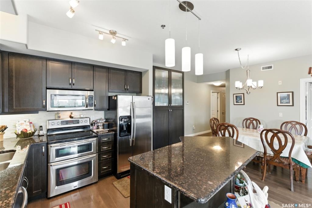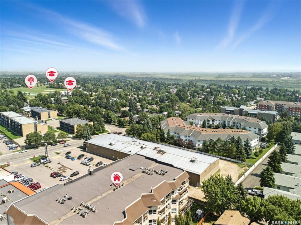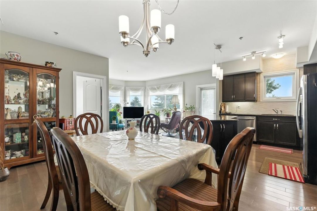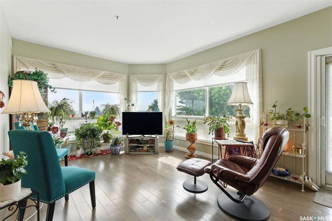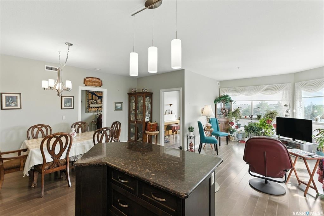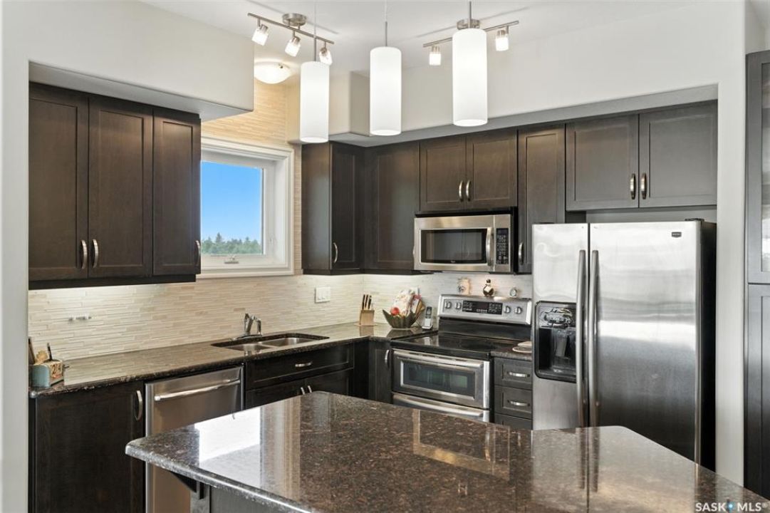Welcome to Unit #303 – 227 Pinehouse Drive, a bright and spacious third-floor corner unit with southeast exposure, offering beautiful views and an abundance of natural light throughout the day. Located in the heart of Lawson Heights, this home is just steps from the Meewasin Trail, parks, the South Saskatchewan River, transit, restaurants, and all the amenities of Lawson Heights Mall. This 1,289 sq ft unit features a functional open-concept layout that blends comfort and style. The kitchen includes an upgraded double oven, granite countertops, and added pantry space, making it perfect for cooking and entertaining. Hardwood flooring runs throughout the unit, adding warmth and elegance. A sunny balcony offers a perfect retreat for morning coffee or evening relaxation. Additional conveniences include in-suite laundry and 9 ft ceilings, which enhance the spacious feel of the home. The property includes two underground parking stalls, providing secure, heated parking year-round. There's also a den, ideal for a home office or additional storage. Behind the building, residents enjoy access to a raised garden bed and lounge area — a peaceful space for gardening or socializing. The two-bedroom split layout ensures privacy and comfort. The primary bedroom faces east, welcoming the morning sun, and includes a walk-in closet and a 3-piece ensuite. The second bedroom faces south and is located next to the main 4-piece bathroom, making it ideal for guests or family. If you're seeking low-maintenance living in a quiet, walkable neighbourhood — with plenty of light, space, and secure parking — this condo checks all the boxes. Contact your REALTOR ® to book a private showing today.