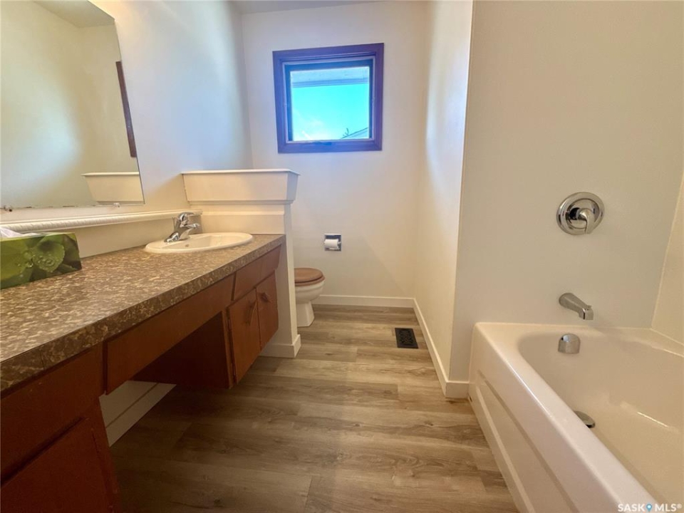 Great home in desirable Coronation Park. Are you looking for a home with lots of bedrooms – well this one has 5 bedrooms, 2 bathrooms, and backs greenspace. With 5 spacious bedrooms and 2 full bathrooms, there's plenty of room for growing families or those needing extra space for a home office or guests. The main floor features brand new vinyl plank flooring throughout, giving the home a fresh modern touch. This charming bright retro-style kitchen and dining area is filled with natural light from the large windows. While classic in design, the kitchen is incredibly functional – a favourite of the current owner for its layout and ease of use. All bedrooms are generously sized, including a large main bathroom with dual sinks, ample counter space – perfect for those busy mornings. The separate side entrance leads to a fully finished basement, featuring a huge recreation room complete with bar area and space for a fridge – ideal for entertaining or creating a second family room. The basement also includes 2 large bedrooms, 3 piece bathroom, and big windows that bring in lots of natural light. You'll appreciate the extra storage under the stairs and utility room. Added bonus is the soffit, facia, eaves, just updated (September 2025). The backyard offers more living outdoors and you can mold it into whatever you want. Finishing off the home is the oversized 14 x 24 single garage. Located just minutes from schools, parks, shopping, medical offices, public transit and more. This home offers both space and location at an incredible value