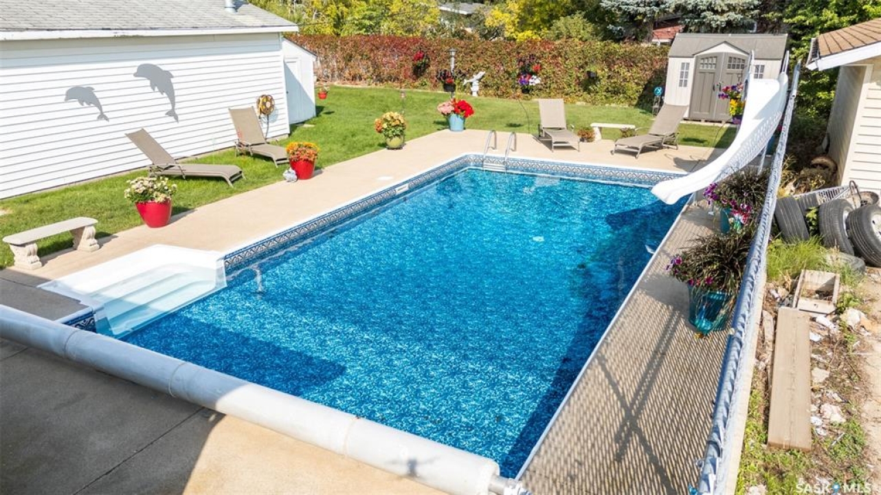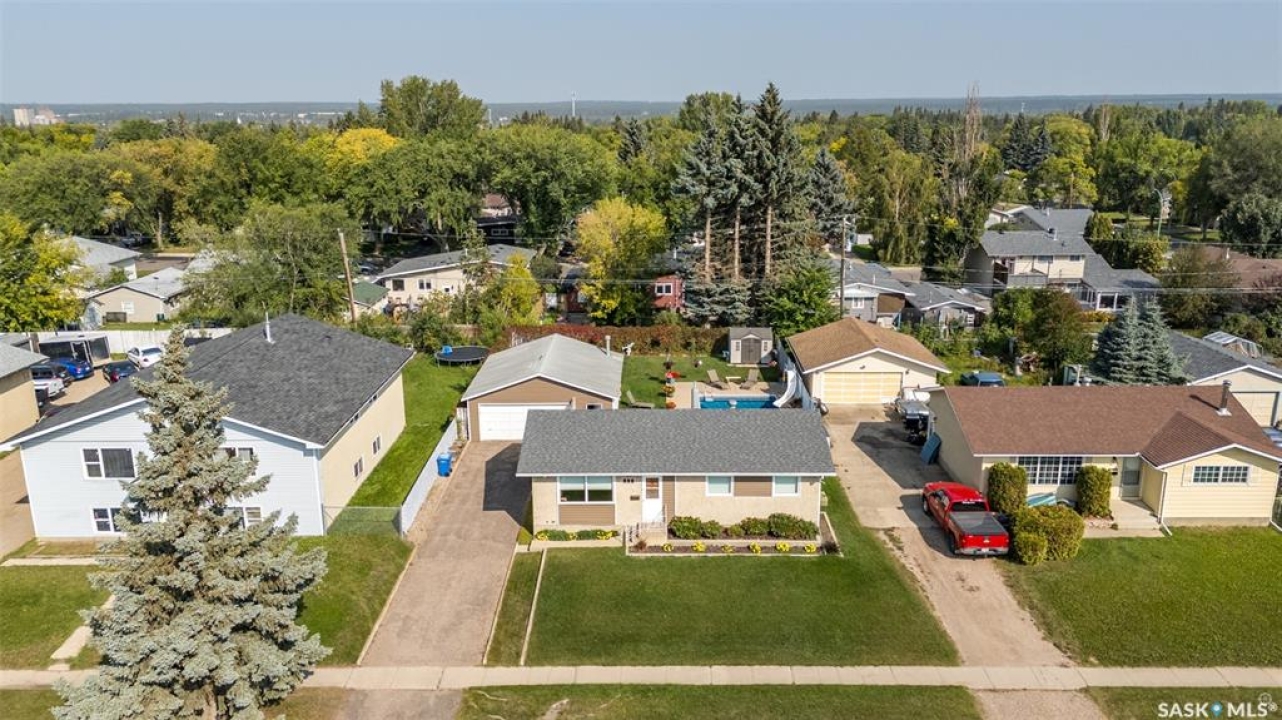 Beautiful 3 bedroom and 2 bathroom bungalow ideally located within walking distance of schools, parks and the Carlton Court shopping centre! The main floor welcomes you with a bright and airy living room, highlighted by a large south facing picture window that fills the space with natural light and flows effortlessly into the dining area, creating a warm and inviting setting for everyday living. The kitchen is bright and functional, featuring stainless steel appliances, ample cabinetry and plenty of workspace. Completing the main level are 3 generously sized bedrooms and a 4 piece bathroom. The fully finished basement provides an expansive family room, perfect for movie nights, games or hosting guests, alongside a 3 piece bathroom with a stand up shower and a combined laundry/utility room with extra storage space. Outside, the fully fenced and meticulously landscaped yard is a true showpiece. The property features a double detached garage, a patio area and an impressive 16ft x 32ft pool that transforms the space into a private backyard retreat, ideal for relaxing, entertaining and making lasting summer memories. Don't miss the chance to make this exceptional home your own!