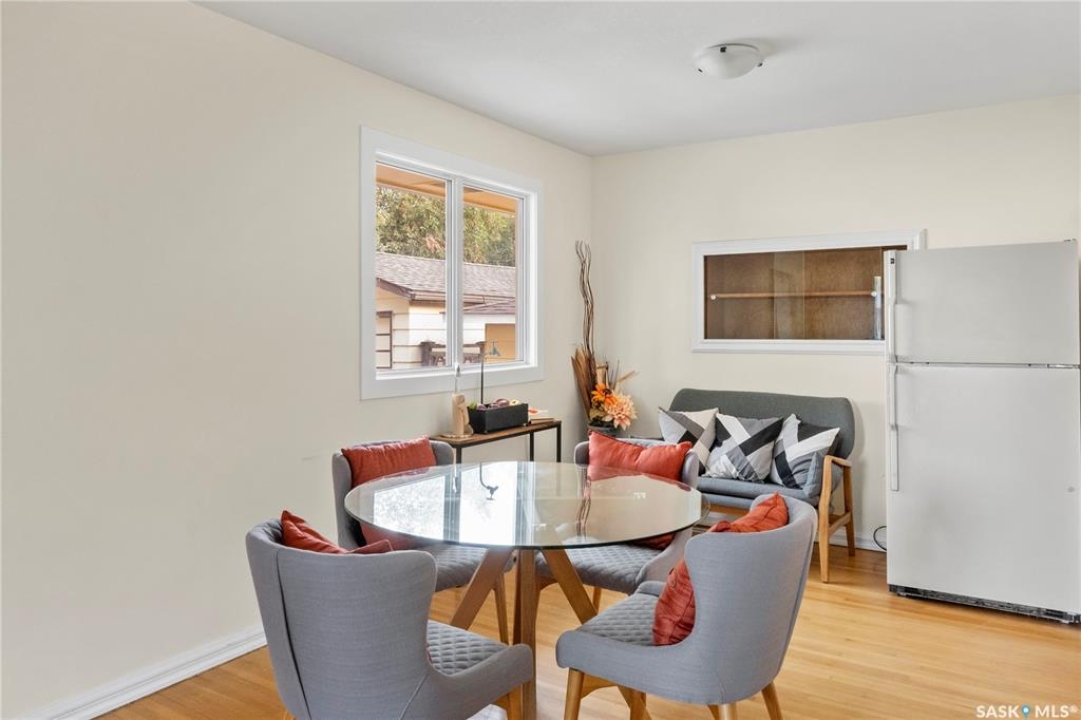 Welcome to this charming 4-bedroom, 2-bathroom bungalow located in the sought-after neighbourhood of Hillsdale. Nestled in a quiet and friendly area, this home is just minutes from the University of Regina and all south-end amenities, offering both convenience and comfort. Inside, you're greeted by a bright and spacious living room with a cozy reading area, alongside a large dining room perfect for family gatherings. The main floor features three good-sized bedrooms, a beautifully updated 4-piece bathroom with tiled finishes and a new window, plus a functional kitchen with plenty of cabinet space and a casual eating nook for quick meals. The basement, with its own separate entrance, provides excellent potential as a mortgage helper with a large family room and wet bar, an additional bedroom with an upgraded window, and a private 3-piece ensuite deal for a student rental or homestay. With roof shingles only four years old, this home has been well cared for and is move-in ready. Don't miss your chance to own a solid home in the heart of Hillsdale! Call your real estate agent today to book a showing!