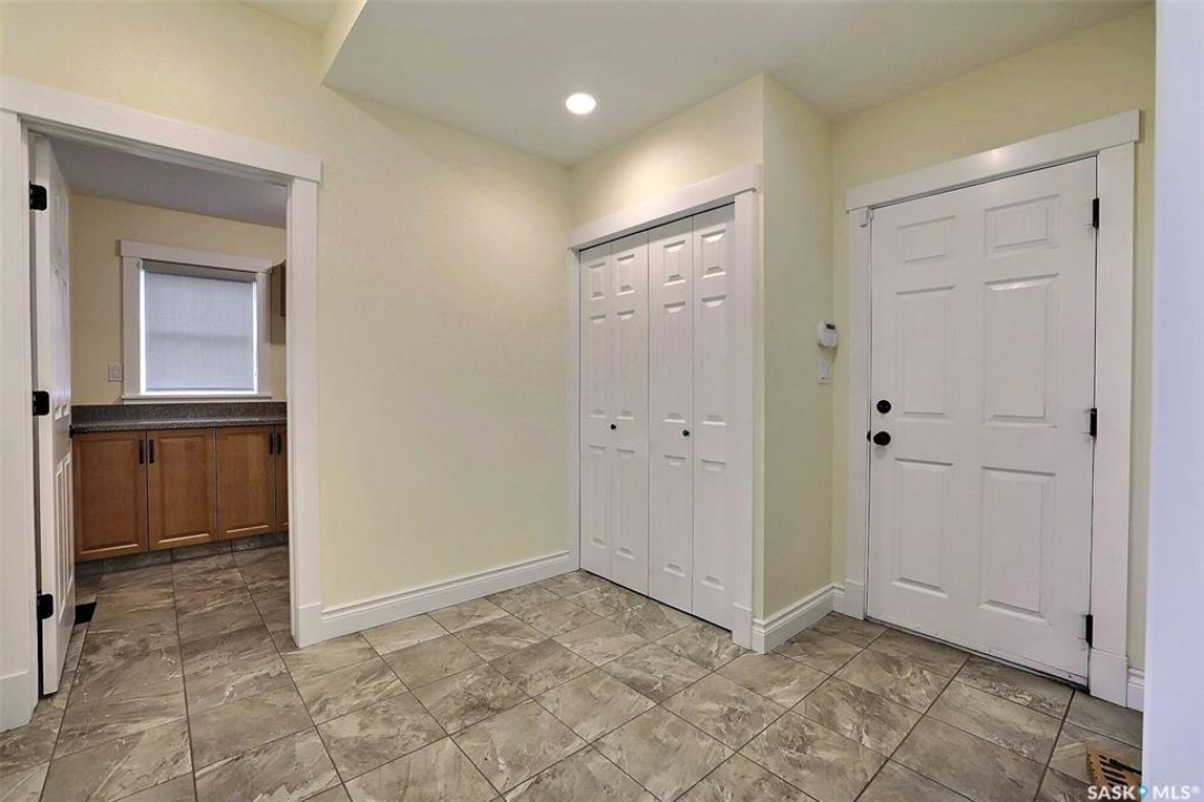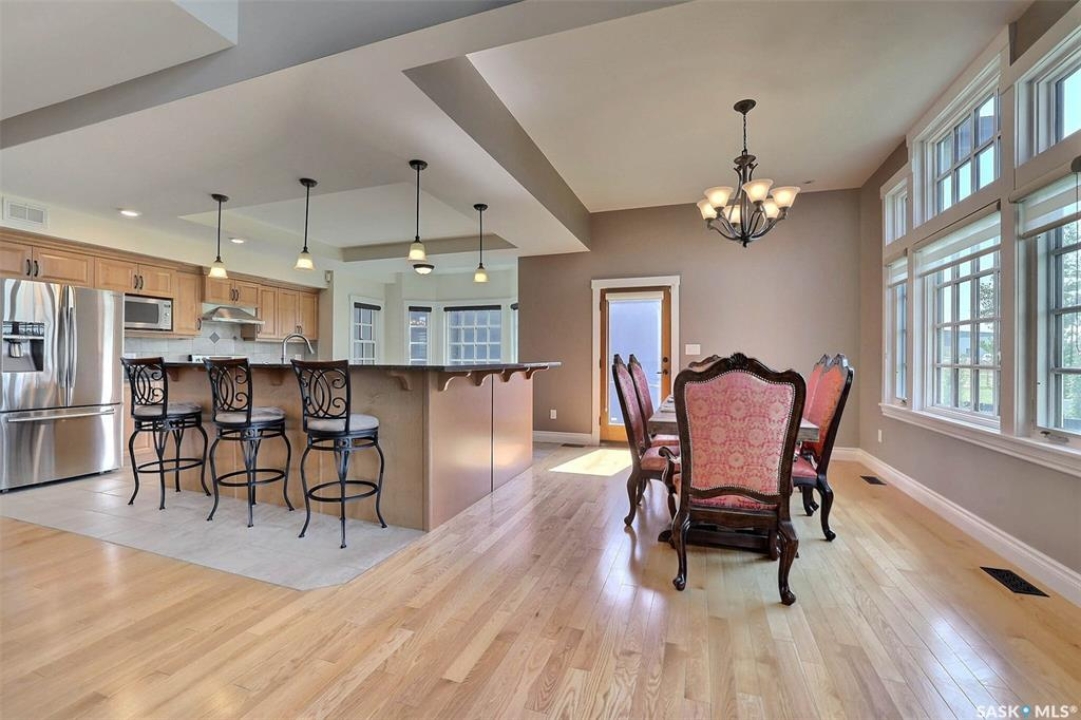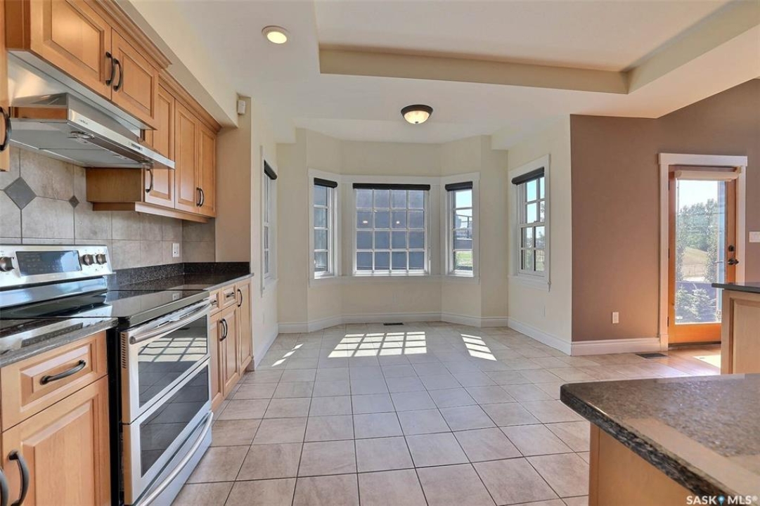 Stunning 2 storey on huge quarter acre lot backing neighbourhood greenspace in desirable White City. Custom built by original owner this 2700+ sq ft home offers superior construction and top quality materials and design throughout with impressive street appeal. Large foyer with beautiful stone flooring and very handy adjacent office/den with fireplace leads to main living area featuring large kitchen with an abundance of cabinets and stone counters, large eating bar and spacious dining area. Spectacular 2 storey ceiling height living room with impressive full wall height fireplace feature with original stone detail. 3 levels of windows overlook the huge greenspace backing rear yard and wide open prairie sky sunset views. Very convenient main floor bedroom and full 4pc bath, large mudroom, main floor laundry and direct entry to large double attached insulated and heated garage. 2nd level is accessed by statement hardwood staircase leading to balcony area overlooking the main floor living area and providing an elevated view of the prairie beyond. Massive primary suite with large walk-in closet, huge ensuite featuring separate soaker jet tub and large tiled shower and double vanity. 2 additional generous sized bedrooms and full bath. Basement has exterior insulated walls and some interior framing (building materials in bsmt included) Top quality Hunter Douglas window coverings (some with remotes), soft close drawers. White City is very desirable established community 10mins from the city but offering all necessary services, schools, shopping, restaurant, parks and prairie greenspaces. Gorgeous one of kind home, call for a private viewing!