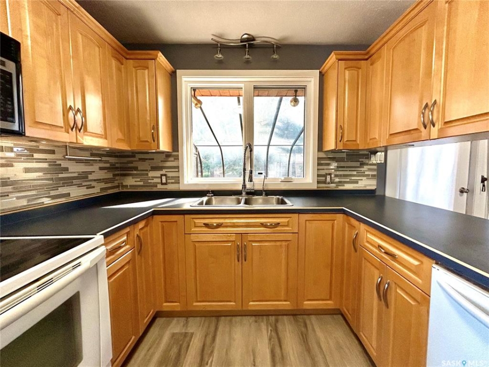 Welcome to this beautifully updated 4-level split home, situated on an impressive 120' x 100' lot with mature trees that makes you feel like you're not in town! The yard is private, fenced and offers convenient back alley access! This family-friendly property features 3 spacious bedrooms on the upper level and a walk-out basement that leads directly into the insulated single garage. There's ample parking space at the front as well as at the back of the property. This home features 3 spacious bedrooms and 3 bathrooms. The primary bedroom boasts a walk-in closet as well as an en-suite. The bright kitchen showcases quality Kroeker maple cabinets and a cozy breakfast nook with garden doors opening to a sunny solarium on the deck. Enjoy both formal and informal dining spaces, and a cozy basement retreat complete with a wood-burning fireplace, ideal for entertaining or a children's play area. The 4th level offers plenty of flexible space for a home office, home gym, crafts room, games room as well as storage. Recent upgrades include shingles (2018), triple-pane windows (2024), furnace (2024), doors (2025), trim & baseboards (2025), and flooring (2025). This home is move-in ready and a must-see!