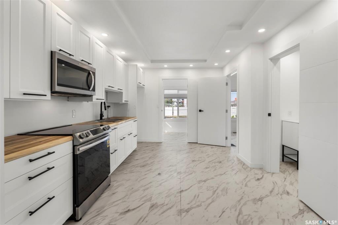 Fully renovated 3-bedroom bungalow on a massive 50x140 lot featuring raised ceilings, brand new kitchen with soft-close cabinets, new bathroom, triple-pane windows, newer high-efficiency furnace, new water tank, upgraded insulation, new plumbing, copper wiring with 100amp panel, new trusses/rafters/shingles, solid doors, quality blinds, large new washer & dryer, new range, pot lights, wireless thermostat, remote-control bathroom lighting, new exterior, and parking pad with electrical pole.