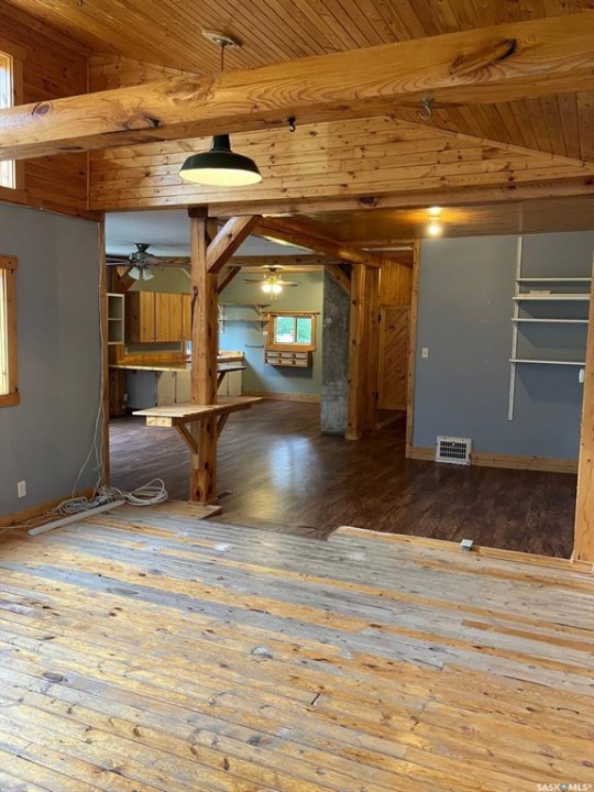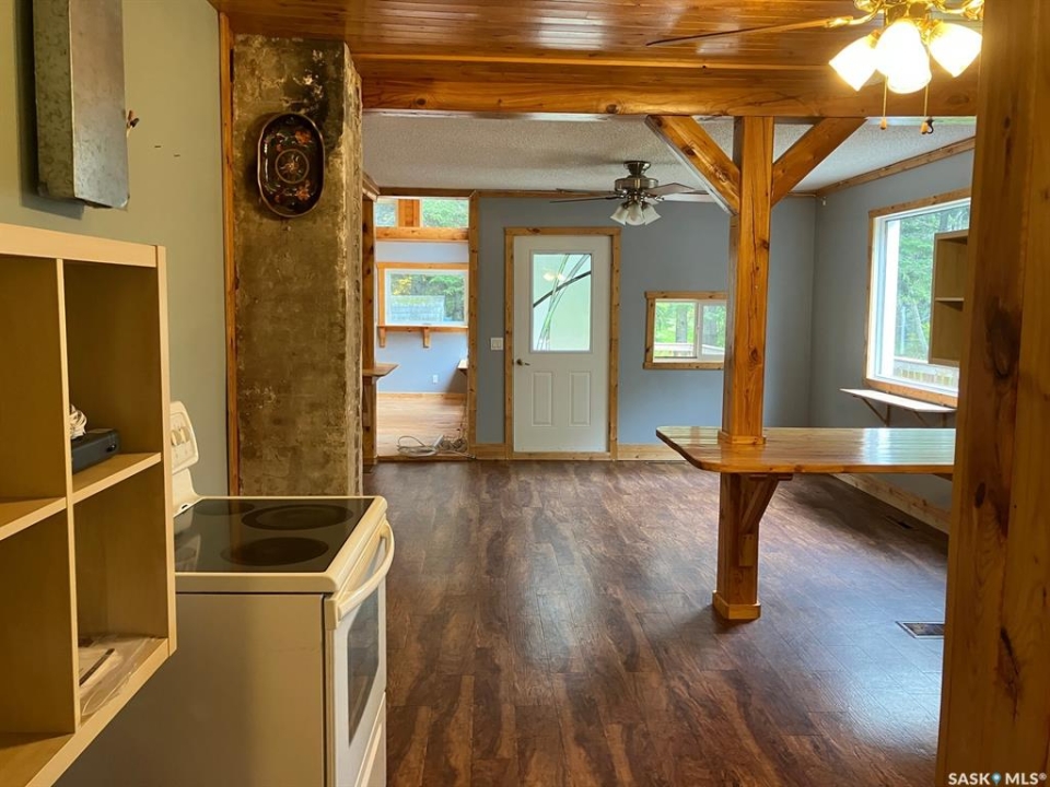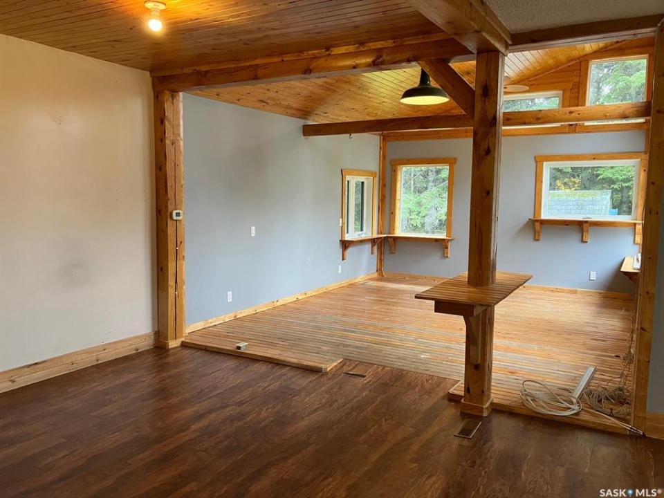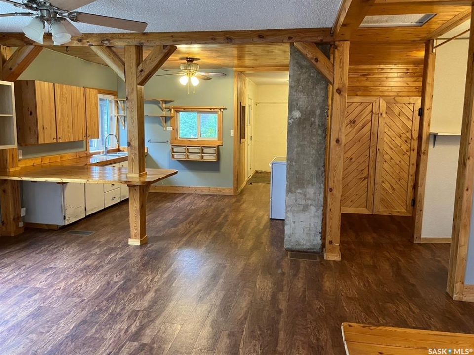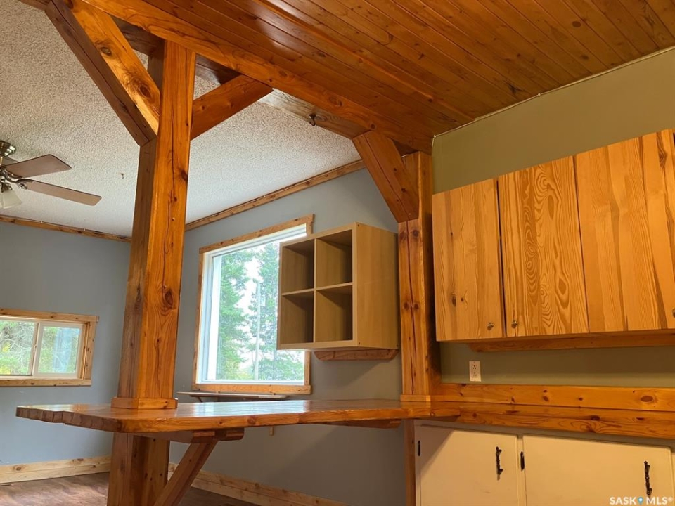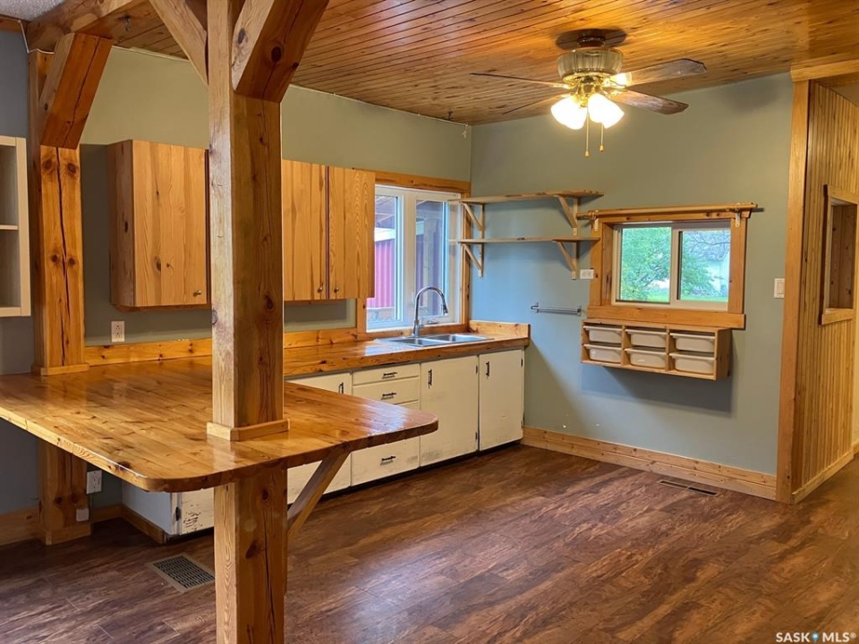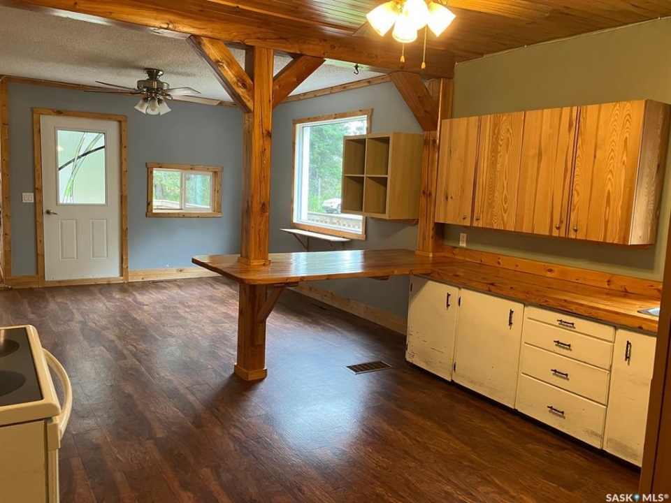 This cabin-like property at 303 1st Ave N in Garrick, SK offers the open concept 1-bedroom studio living with charming pine accents. Wheel chair access, with the covered ramp to the deck, large porch area, open concept kitchen/dining area with the beautiful peninsula. Upgrades include PVC windows, vinyl plank flooring, roofing. Located on a large 0.46 acre lot, this 992 sq ft home is perfect getaway or can be a great place to retire. Located in zone 50, the area is known for its great hunting. Easy access to snowmobiling, atv, skiing trails and more. Garrick is about a 25 min drive to Nipawin where you can launch your boat at the Regional Park into the Saskatchewan River / Tobin Lake. Tobin Lake is known for its world class fishing, producing trophy size Walleye and Northern Pike. Garrick is also close to highway 106 (Hanson Lake Road) leading to Narrow Hills Provincial Park accessing numerous trout lakes. Come and enjoy the outdoors paradise!