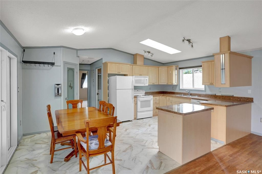 Seller will consider any reasonable offer and is very motivated to sell. Are you looking for a comfortable, move-in-ready home in a welcoming community? This well-kept Veteran owned mobile home, located in the desirable Prairie Oasis, could be your perfect fit. With its features and convenient location, Spacious and Bright: As you step into this home, you'll be greeted by vaulted ceilings that create a sense of openness and space. The natural light streaming through the skylight adds to the warm and inviting atmosphere. Primary Bedroom Suite: The primary bedroom is tucked away for privacy and includes a generous 4-piece ensuite bathroom, offering a personal retreat within your home. Climate Control: Enjoy the comfort of central air conditioning, complemented by a ceiling fan that ensures optimal airflow throughout the space. Convenient Location: Situated within walking distance to a variety of restaurants, shopping and hospital, this location offers the convenience of having everything you need. This home is ready to welcome its new owner. Whether you're a first-time buyer, seeking a new beginning, or looking to downsize without compromising on quality, this mobile home is an excellent choice. Don't miss out on the opportunity. "Some pictures are virtually staged." CLICK ON MULTI MEIDA LINK FOR A VISUAL TOUR AND CALL TODAY FOR YOUR PERSONAL VIEWING.