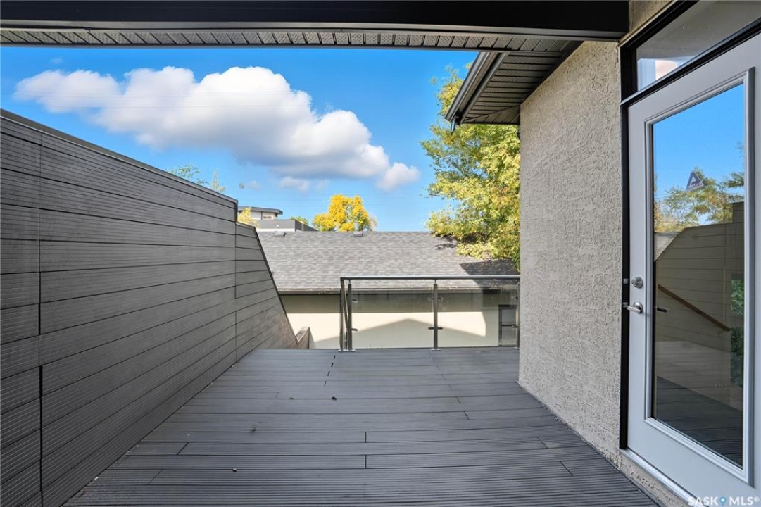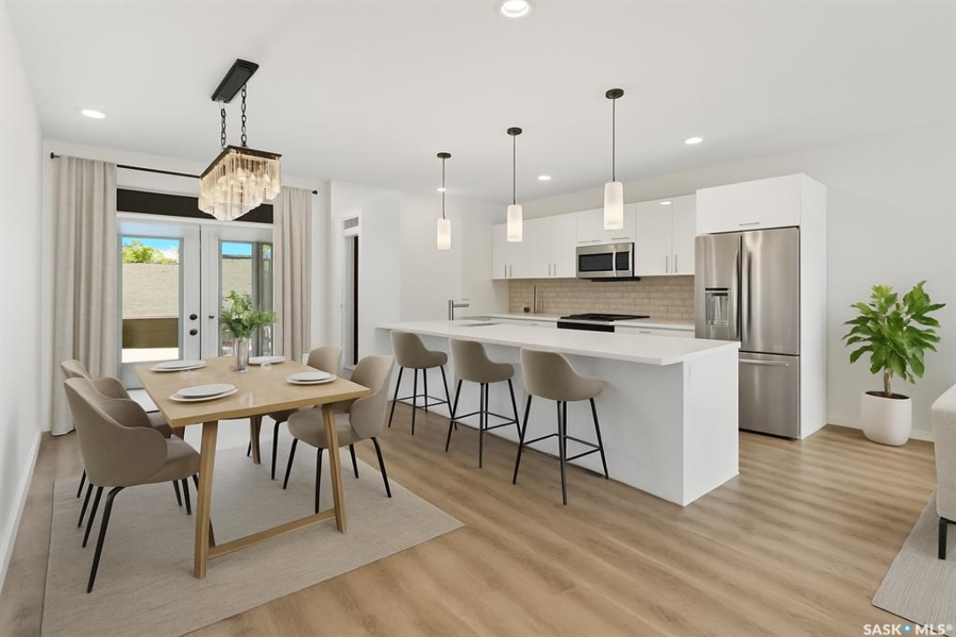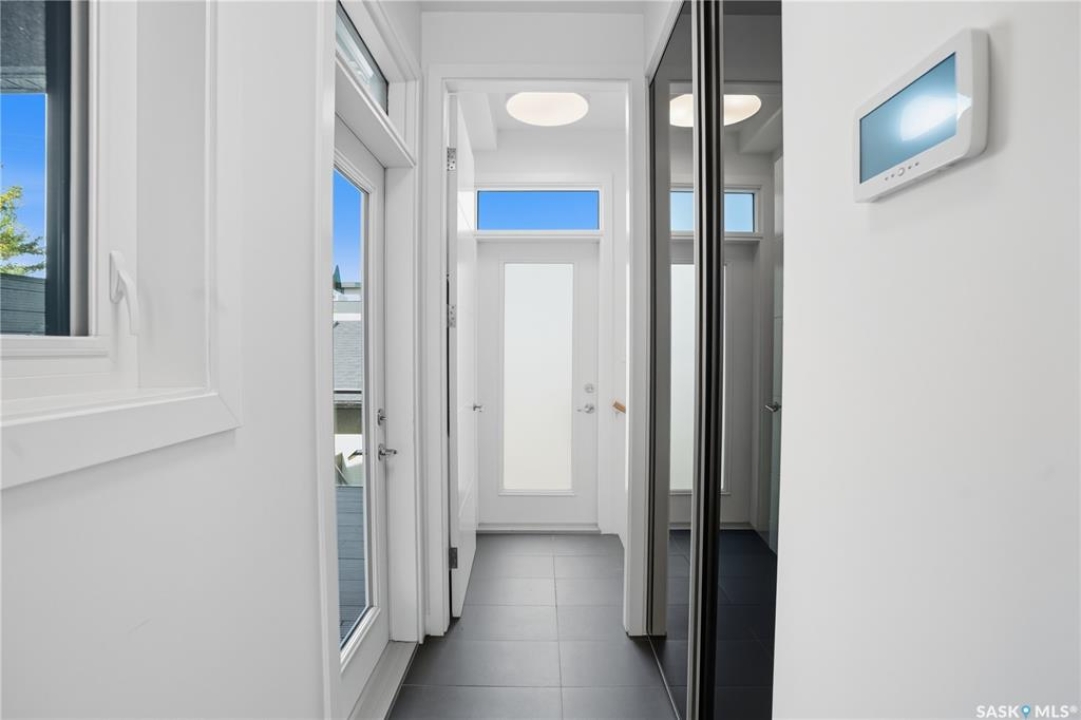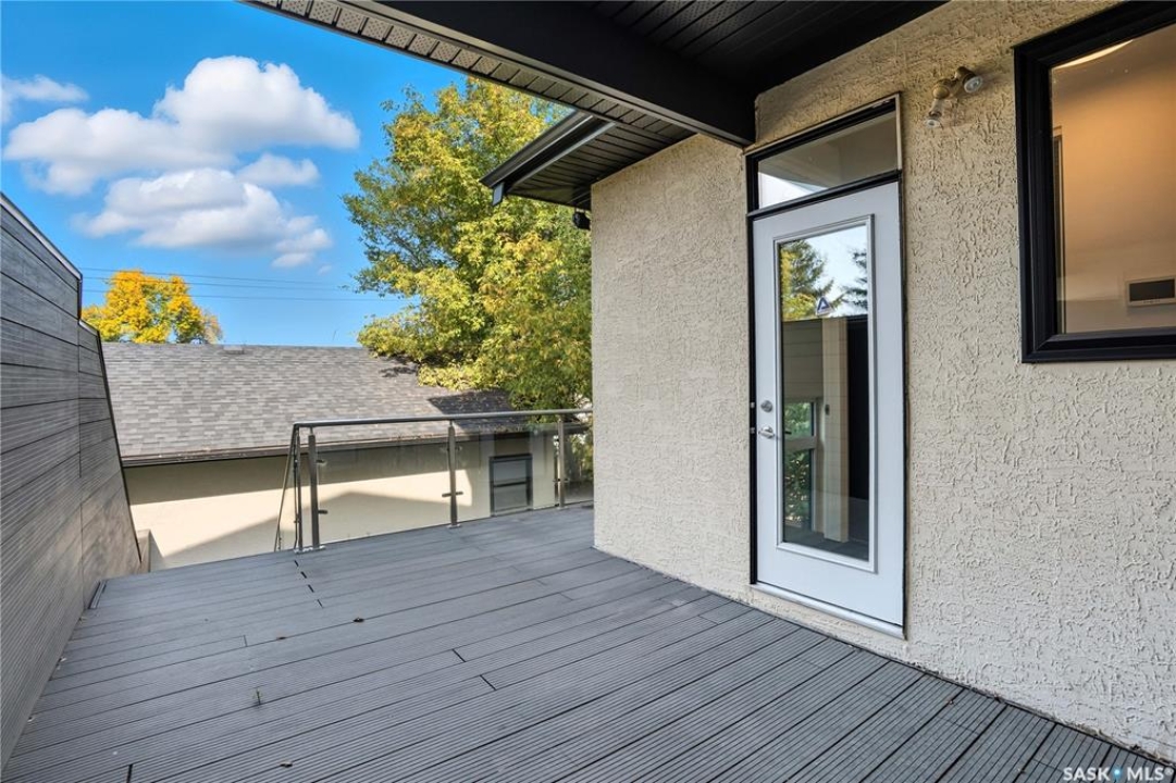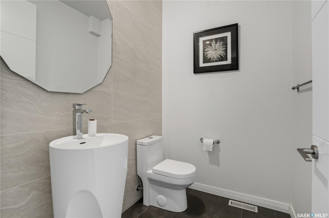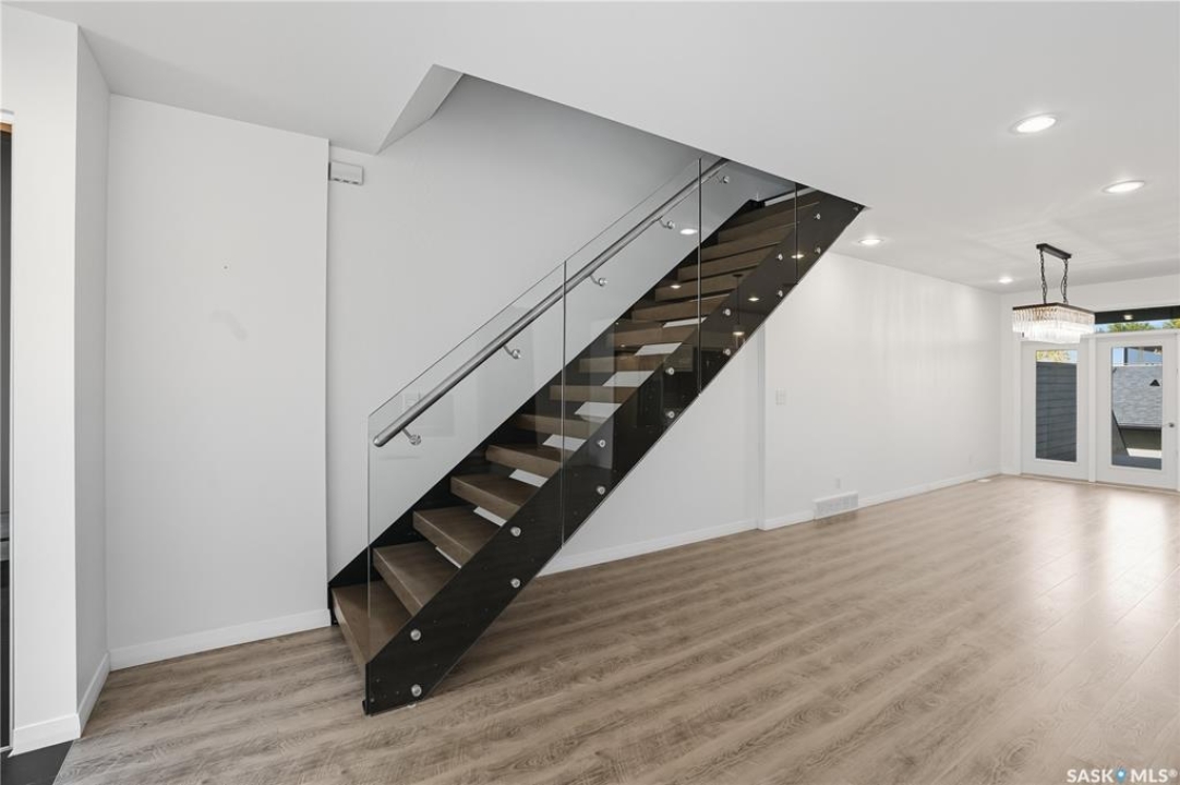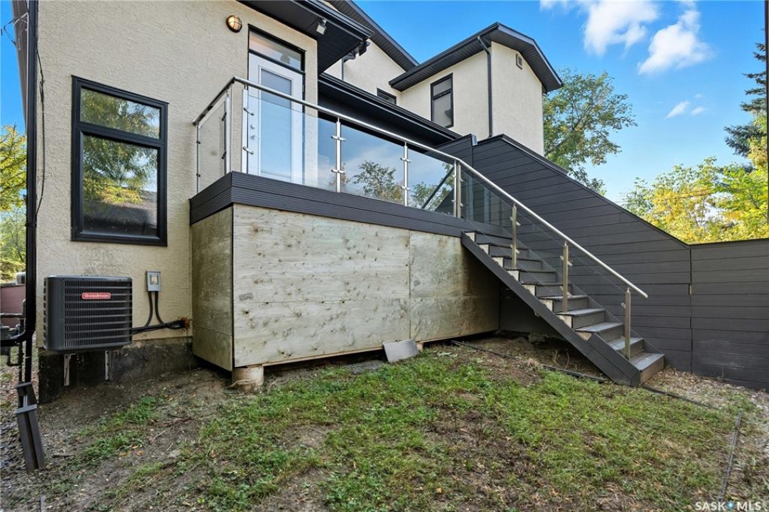 Welcome to 1105 7th Street East, ideally located in the desirable Haultain neighbourhood, just steps from 8th Street shopping, dining, schools, and parks. Built in 2015, this modern 2,050 sq. ft. semi-detached 2-storey home combines the character of a mature area with the peace of mind of a newer build. As you enter, you'll be impressed by the bright, airy, and open concept main floor, featuring 9' ceilings, large south-facing windows, and a custom open-tread staircase that create a seamless flow from living to dining to kitchen. The living room includes a stone fireplace, while the gourmet kitchen boasts a massive quartz island, gas range, and modern lighting. A large patio door opens directly to the private composite deck, perfect for indoor-outdoor living. A convenient 2-piece bathroom completes the main floor. Upstairs, the primary suite offers a luxurious walk-in closet with custom shelving and a spa-like ensuite with double sinks, heated floors, and a soaker tub/shower combo. Two additional spacious bedrooms, a 5-piece bath, and a separate laundry room complete the second floor. The basement is open for development, featuring large windows, 9' ceilings, and a separate side entrance, making it ideal for a potential legal suite for mortgage helper. Outside, enjoy the private composite deck, a double detached garage, plus an extra front parking space for added convenience. The low-maintenance yard is perfect for those who prefer more time relaxing and less time on upkeep.