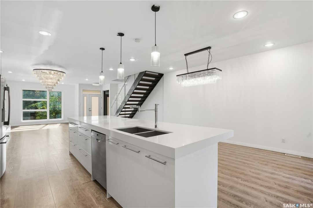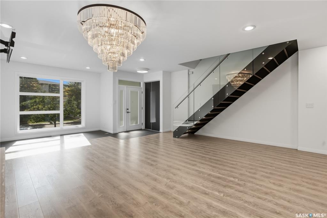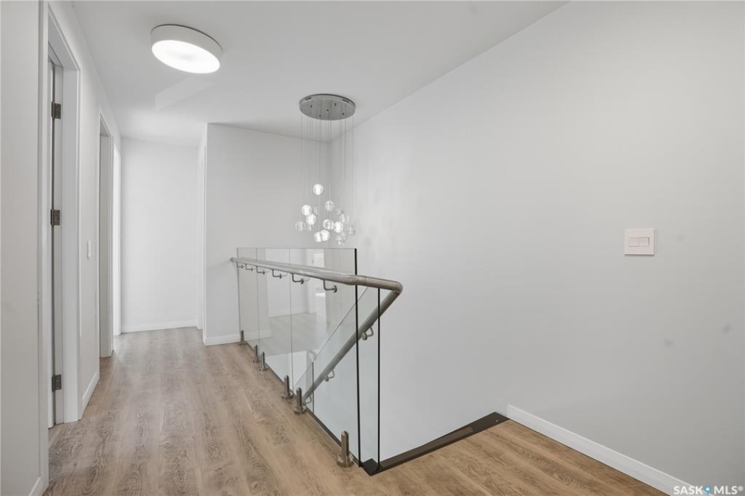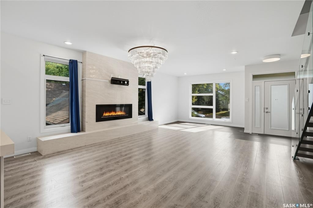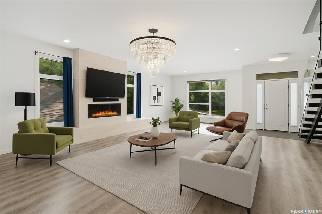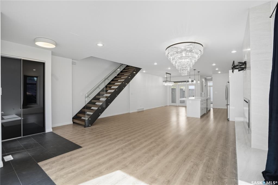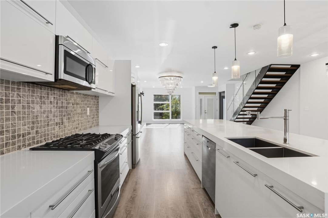 Welcome to 1105 7th Street East, ideally located in the desirable Haultain neighbourhood, just steps from 8th Street shopping, dining, schools, and parks. Built in 2015, this modern 2,050 sq. ft. semi-detached 2-storey home combines the character of a mature area with the peace of mind of a newer build. As you enter, you'll be impressed by the bright, airy, and open concept main floor, featuring 9' ceilings, large south-facing windows, and a custom open-tread staircase that create a seamless flow from living to dining to kitchen. The living room includes a stone fireplace, while the gourmet kitchen boasts a massive quartz island, gas range, and modern lighting. A large patio door opens directly to the private composite deck, perfect for indoor-outdoor living. A convenient 2-piece bathroom completes the main floor. Upstairs, the primary suite offers a luxurious walk-in closet with custom shelving and a spa-like ensuite with double sinks, heated floors, and a soaker tub/shower combo. Two additional spacious bedrooms, a 5-piece bath, and a separate laundry room complete the second floor. The basement is open for development, featuring large windows, 9' ceilings, and a separate side entrance, making it ideal for a potential legal suite for mortgage helper. Outside, enjoy the private composite deck, a double detached garage, plus an extra front parking space for added convenience. The low-maintenance yard is perfect for those who prefer more time relaxing and less time on upkeep.