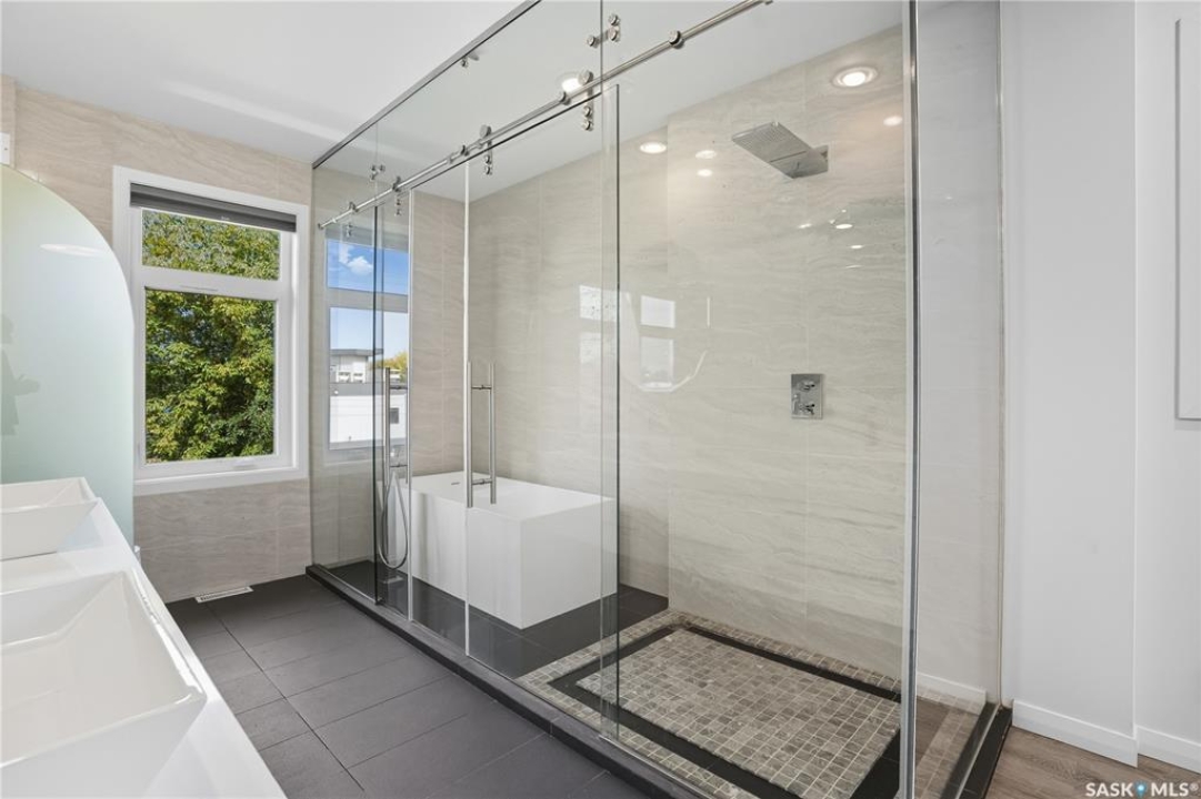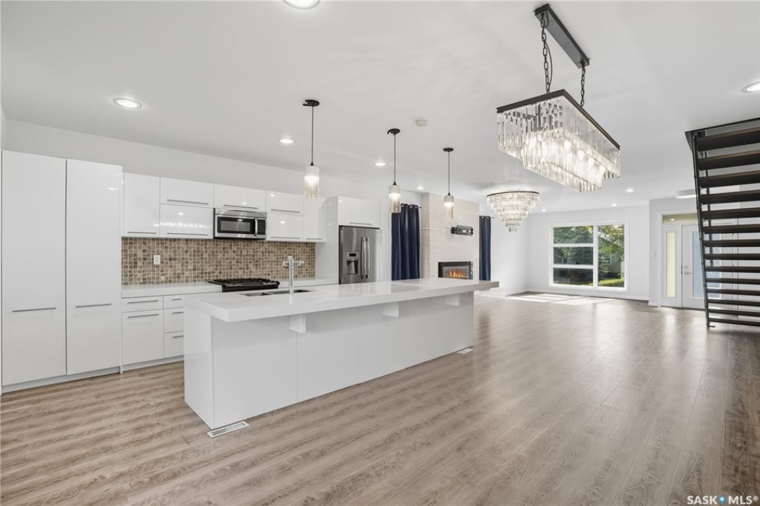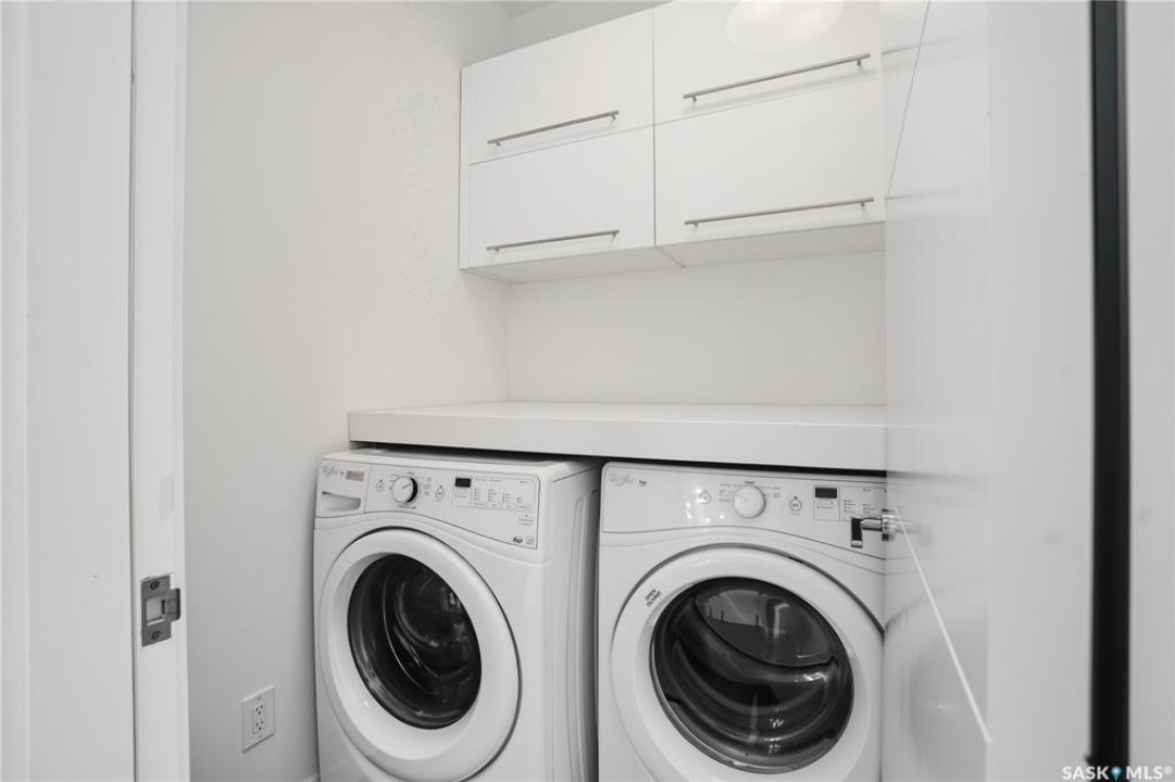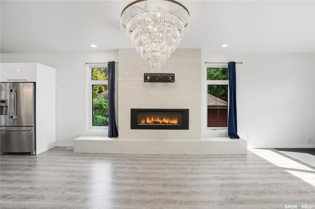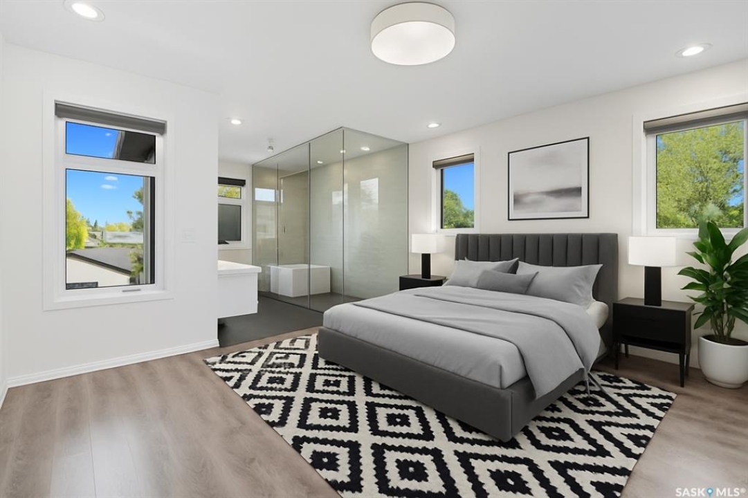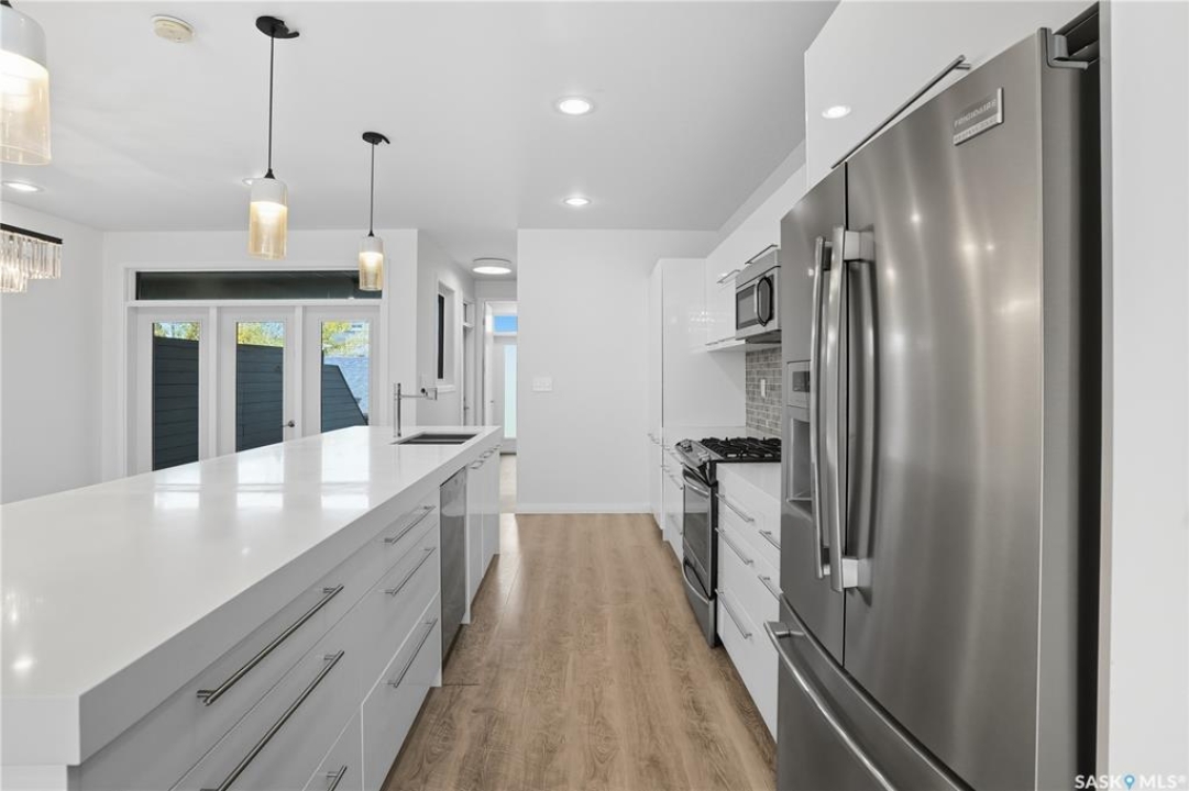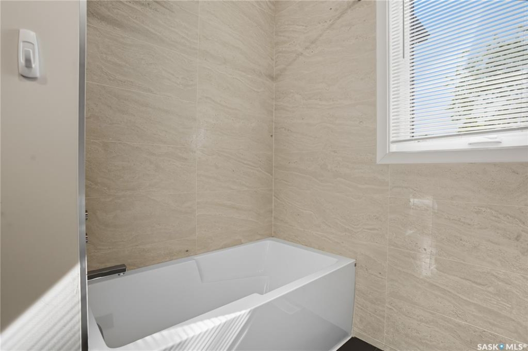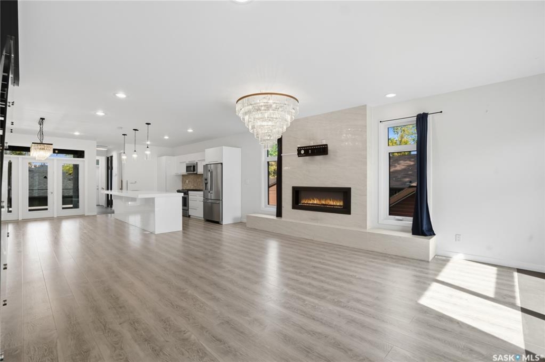 Welcome to 1105 7th Street East, ideally located in the desirable Haultain neighbourhood, just steps from 8th Street shopping, dining, schools, and parks. Built in 2015, this modern 2,050 sq. ft. semi-detached 2-storey home combines the character of a mature area with the peace of mind of a newer build. As you enter, you'll be impressed by the bright, airy, and open concept main floor, featuring 9' ceilings, large south-facing windows, and a custom open-tread staircase that create a seamless flow from living to dining to kitchen. The living room includes a stone fireplace, while the gourmet kitchen boasts a massive quartz island, gas range, and modern lighting. A large patio door opens directly to the private composite deck, perfect for indoor-outdoor living. A convenient 2-piece bathroom completes the main floor. Upstairs, the primary suite offers a luxurious walk-in closet with custom shelving and a spa-like ensuite with double sinks, heated floors, and a soaker tub/shower combo. Two additional spacious bedrooms, a 5-piece bath, and a separate laundry room complete the second floor. The basement is open for development, featuring large windows, 9' ceilings, and a separate side entrance, making it ideal for a potential legal suite for mortgage helper. Outside, enjoy the private composite deck, a double detached garage, plus an extra front parking space for added convenience. The low-maintenance yard is perfect for those who prefer more time relaxing and less time on upkeep.