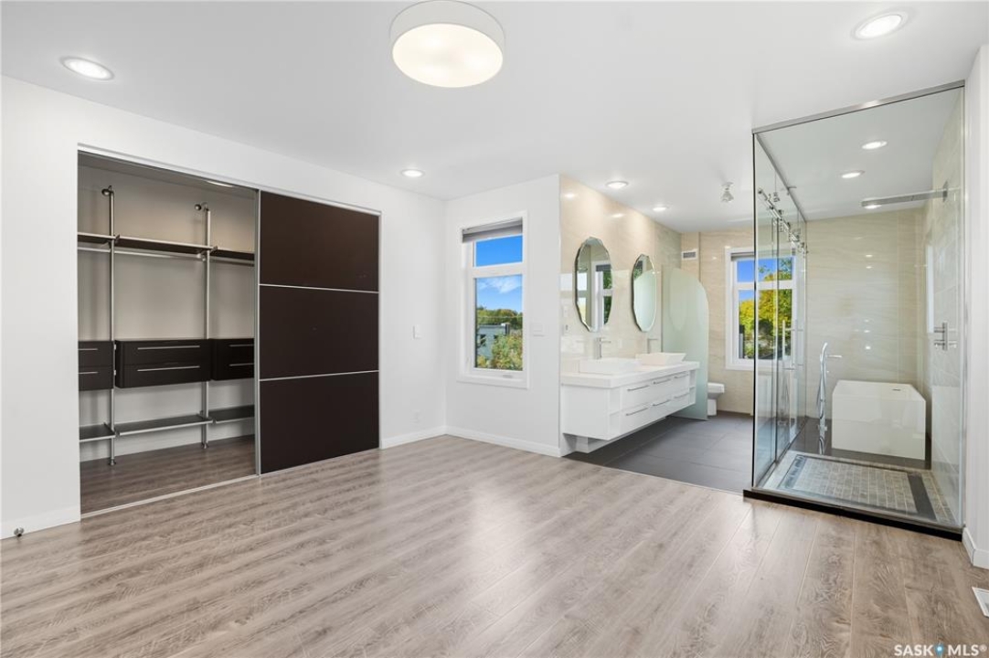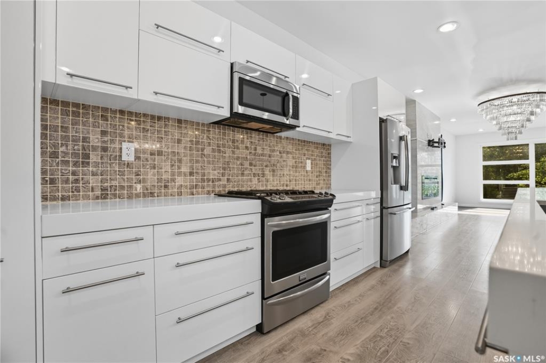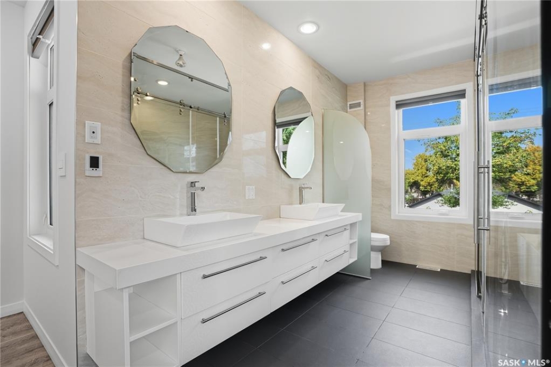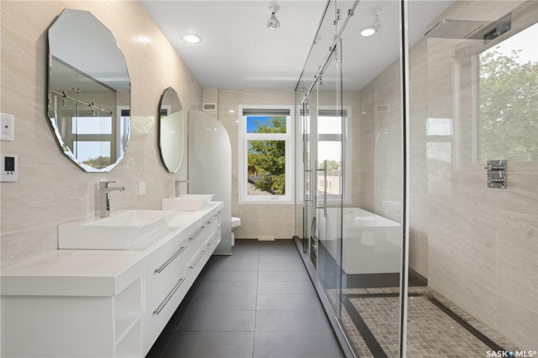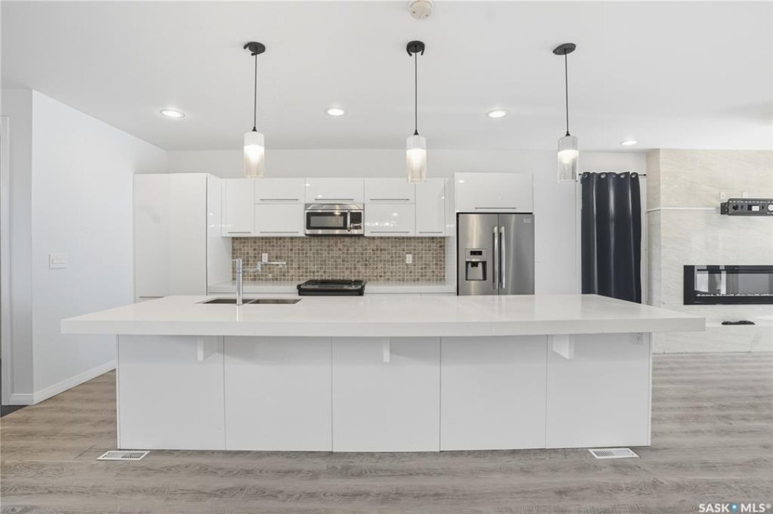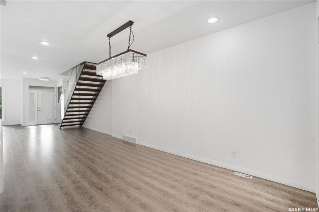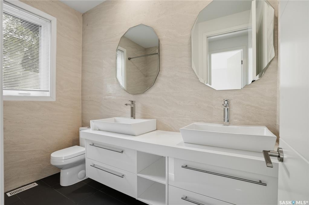 Welcome to 1105 7th Street East, ideally located in the desirable Haultain neighbourhood, just steps from 8th Street shopping, dining, schools, and parks. Built in 2015, this modern 2,050 sq. ft. semi-detached 2-storey home combines the character of a mature area with the peace of mind of a newer build. As you enter, you'll be impressed by the bright, airy, and open concept main floor, featuring 9' ceilings, large south-facing windows, and a custom open-tread staircase that create a seamless flow from living to dining to kitchen. The living room includes a stone fireplace, while the gourmet kitchen boasts a massive quartz island, gas range, and modern lighting. A large patio door opens directly to the private composite deck, perfect for indoor-outdoor living. A convenient 2-piece bathroom completes the main floor. Upstairs, the primary suite offers a luxurious walk-in closet with custom shelving and a spa-like ensuite with double sinks, heated floors, and a soaker tub/shower combo. Two additional spacious bedrooms, a 5-piece bath, and a separate laundry room complete the second floor. The basement is open for development, featuring large windows, 9' ceilings, and a separate side entrance, making it ideal for a potential legal suite for mortgage helper. Outside, enjoy the private composite deck, a double detached garage, plus an extra front parking space for added convenience. The low-maintenance yard is perfect for those who prefer more time relaxing and less time on upkeep.