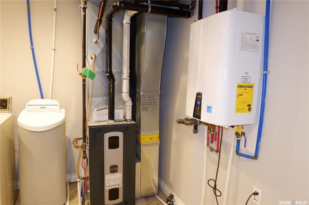 Situated in the Town of Assiniboia, this property boasts an excellent location near schools and recreational amenities. The home is move-in ready and has been comprehensively upgraded with high-quality finishes throughout. Custom Hickory cabinetry enhances the kitchen and extends into the dining area, which also features a built-in computer desk. The main floor is finished with solid core vinyl plank flooring, except for the bathroom, which has durable vinyl tile. There are three bedrooms on the main level and two additional bedrooms in the fully developed basement, making the layout ideal for families. The interior decor features modern paint colours, creating an inviting atmosphere. Garden doors from the dining room open onto an oversized deck with glass inserts, offering a comfortable space to enjoy the private backyard, complete with mature landscaping, garden boxes, and abundant plantings. The property includes enclosed blinds on the garden doors, with custom up/down and room-darkening blinds in other areas. The basement features vinyl plank flooring with a water membrane installed below for moisture control, as well as ample storage options, including a finished room under the stairs and a full storage room. Utilities include a high-efficiency natural gas furnace, on-demand water heater, and owned water softener, all located in a spacious laundry room. The exterior of the home is maintenance-free, featuring newer vinyl siding and asphalt shingles. Additional highlights include a paved driveway leading to a single detached insulated garage, insulated bathroom walls, and solid core doors. One basement bedroom is soundproofed. This property offers exceptional comfort and a range of modern upgrades.