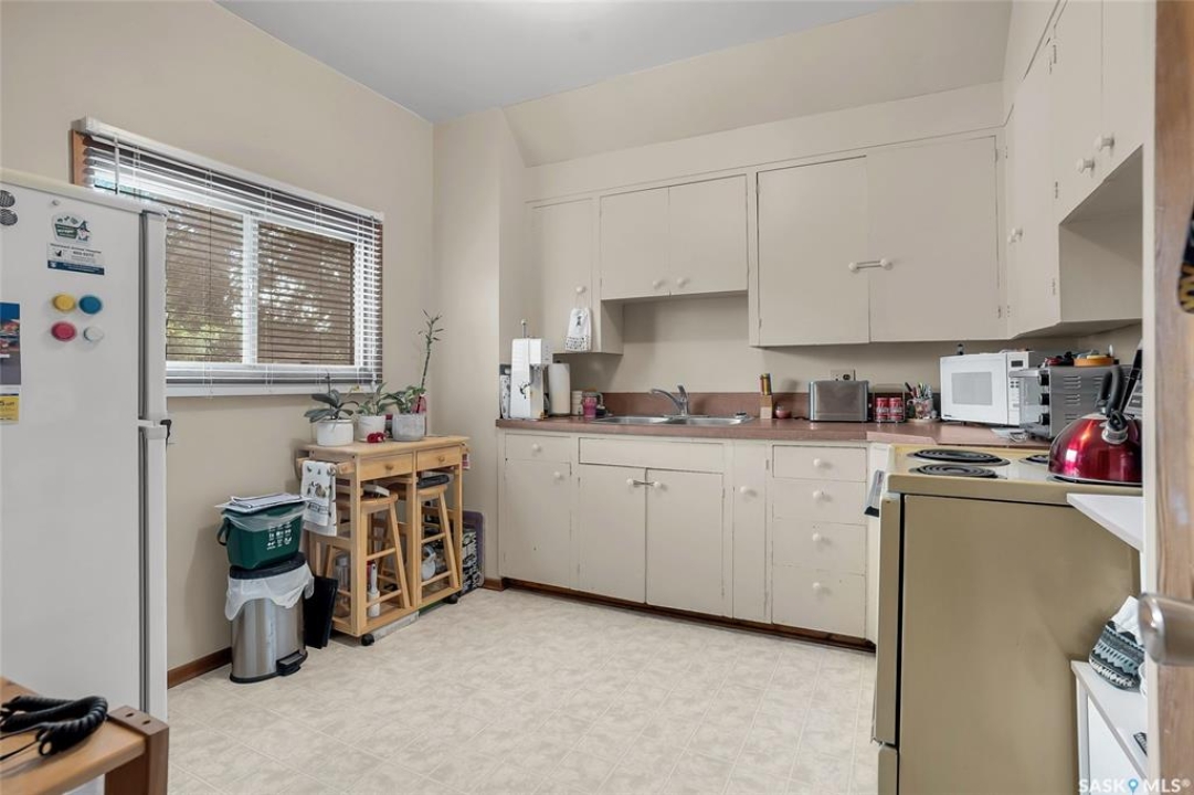 Live mortgage free in this great starter home. Live on the main floor and rent out the upper floor and lower level. With multiple revenue you can live here and earn extra cash.. Are you a first time buyers, or looking for your student to live with other income, take note. Located in Buena Vista close to the Broadway scene. Good shopping, bussing, university and downtown this revenue property offers 3 sources of income from rental residences and optional garage rental. Top floor, one bedroom unit, with 3pc bath, fridge and stove. Main floor one bedroom unit, with 4pc bath, fridge, stove, and washer, dryer. Lower basement features a bachelor suite, with three-piece bath, fridge, stove, and washer dryer hook ups. (In total three fridges, three stoves, one washer, one dryer). All units have separate entrance. Top floor with separate electrical billing. Property also offers potential as holding property. Note some Photos have AI staging of furnishings.