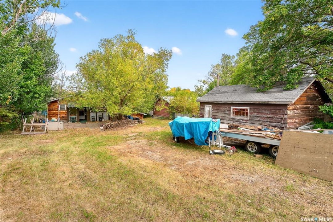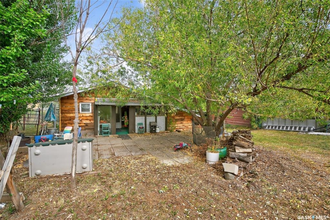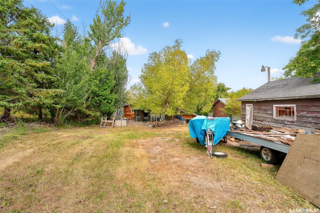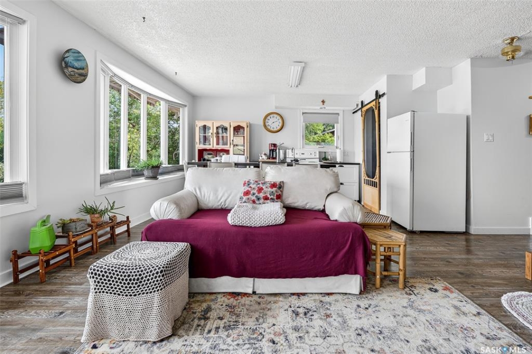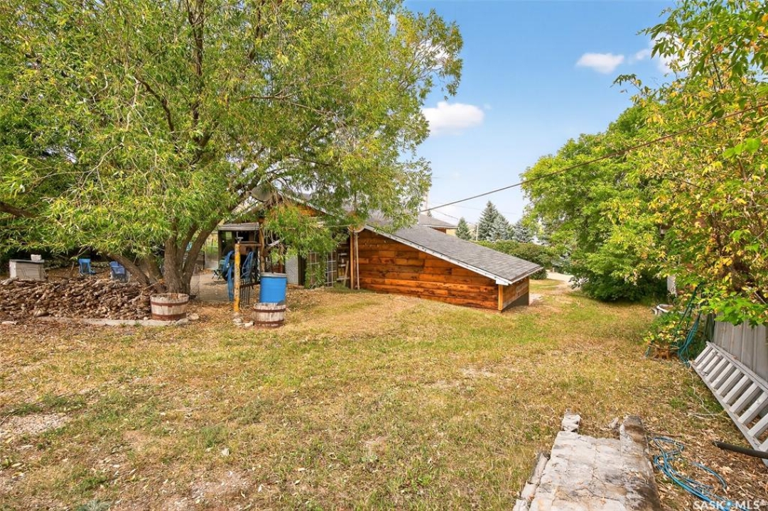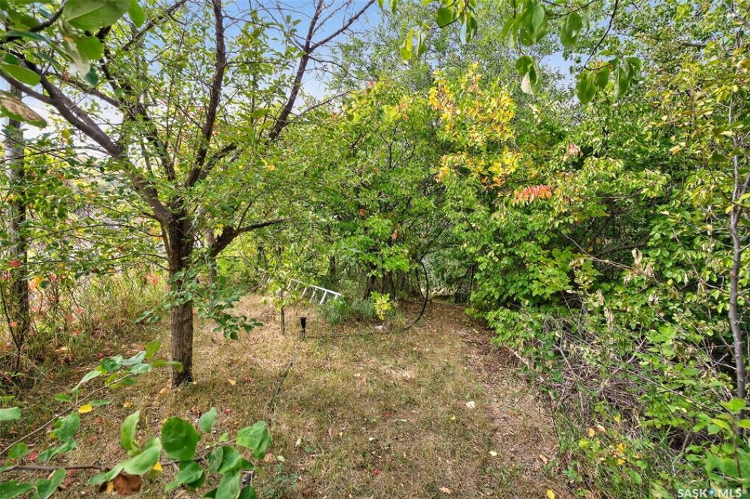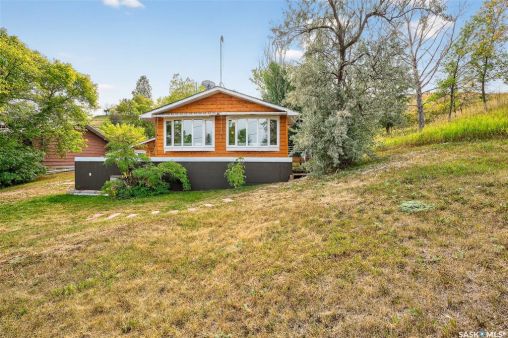 Charming year-round property at Parkview on Buffalo Pound Lake! This inviting 2-bedroom home offers comfort, functionality, and lake-life charm. As you approach, you're welcomed by a spacious front deck with convenient storage underneath. Inside, the open-concept layout connects the kitchen and living room, highlighted by large windows that fill the space with natural light. The kitchen features updated cabinetry, a modern sink, a generous pantry, and a functional island that doubles as a prep area and eating space. The main level includes a well-sized bedroom and a spacious 4-piece bathroom, complete with laundry. At the back of the home, step out to a screened-in deck that overlooks a large yard—perfect for relaxing or entertaining. The lower level offers a small additional bedroom, mechanical room, and an extra toilet for convenience. Outdoors, the property includes an older garage, a fenced area with multiple raised garden beds, and a pathway leading to a private trail lined with apple trees and Saskatoon berry bushes. This is an ideal opportunity to own a cozy four-season retreat with both modern updates and natural beauty at your doorstep.