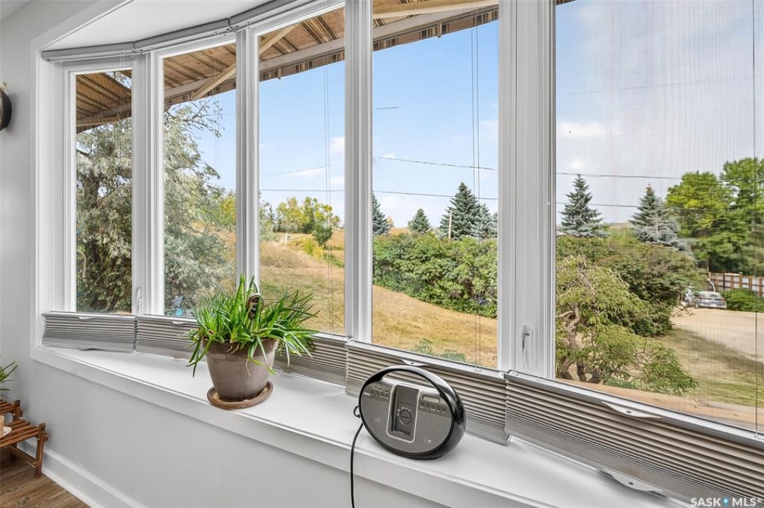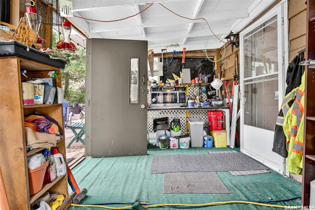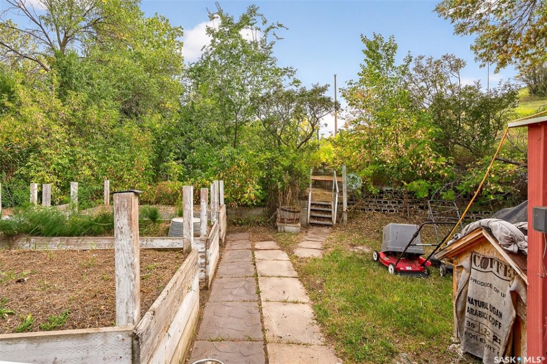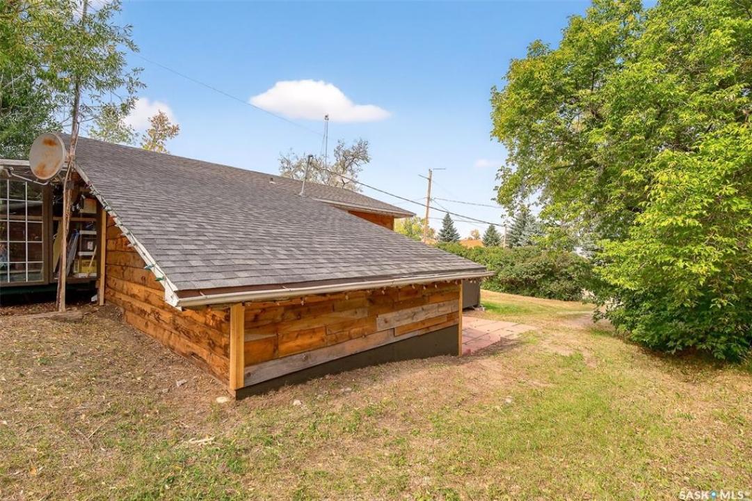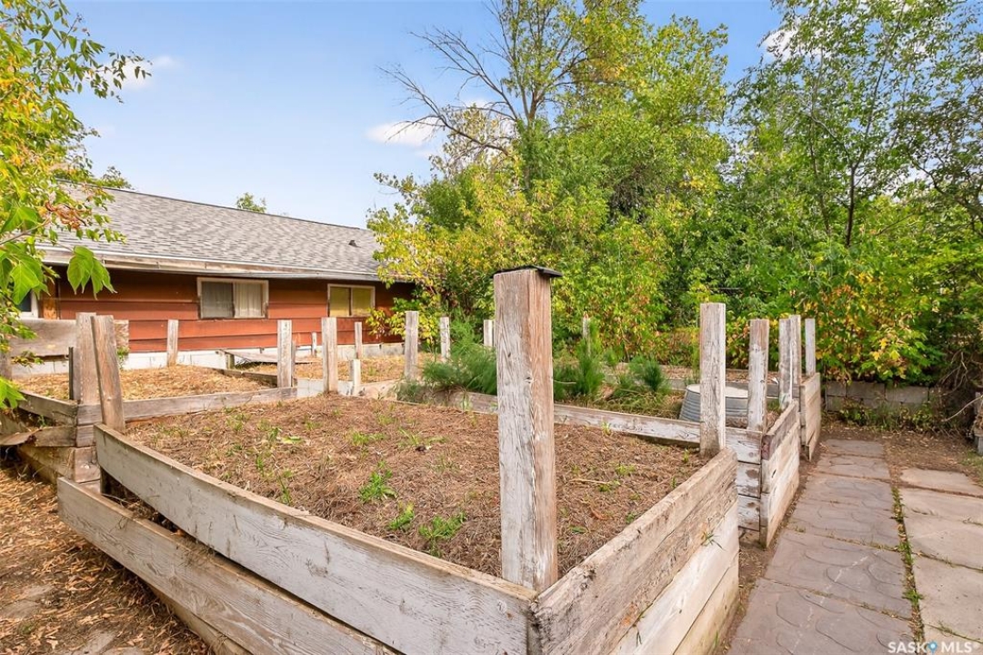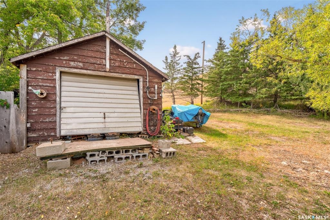 Charming year-round property at Parkview on Buffalo Pound Lake! This inviting 2-bedroom home offers comfort, functionality, and lake-life charm. As you approach, you're welcomed by a spacious front deck with convenient storage underneath. Inside, the open-concept layout connects the kitchen and living room, highlighted by large windows that fill the space with natural light. The kitchen features updated cabinetry, a modern sink, a generous pantry, and a functional island that doubles as a prep area and eating space. The main level includes a well-sized bedroom and a spacious 4-piece bathroom, complete with laundry. At the back of the home, step out to a screened-in deck that overlooks a large yard—perfect for relaxing or entertaining. The lower level offers a small additional bedroom, mechanical room, and an extra toilet for convenience. Outdoors, the property includes an older garage, a fenced area with multiple raised garden beds, and a pathway leading to a private trail lined with apple trees and Saskatoon berry bushes. This is an ideal opportunity to own a cozy four-season retreat with both modern updates and natural beauty at your doorstep.
