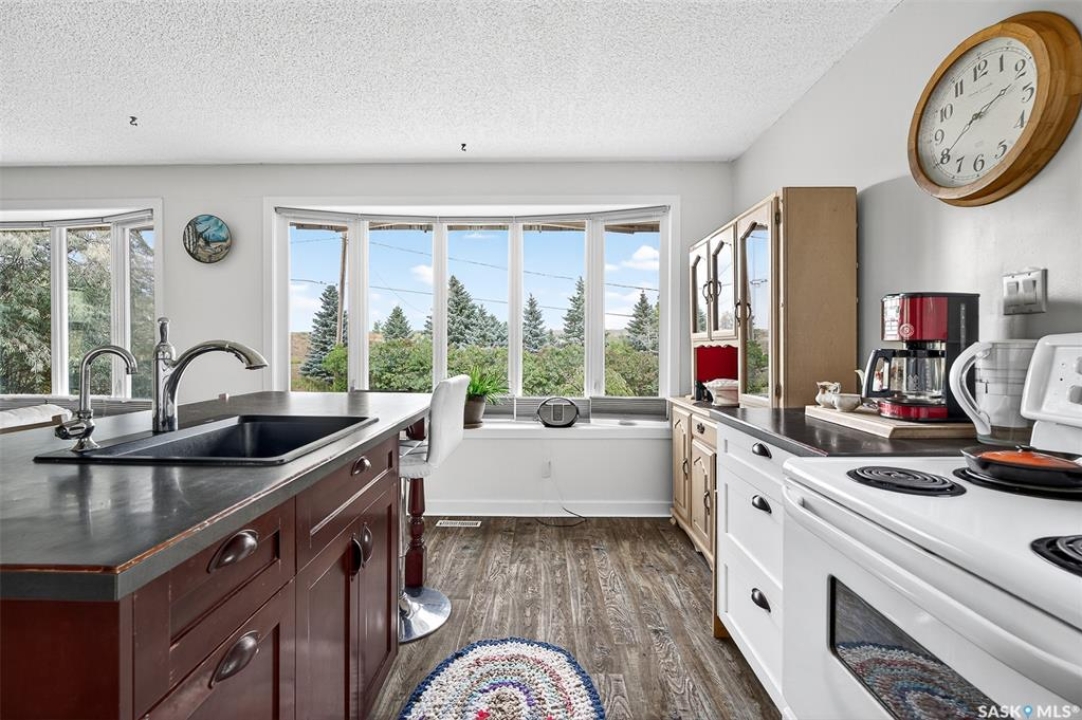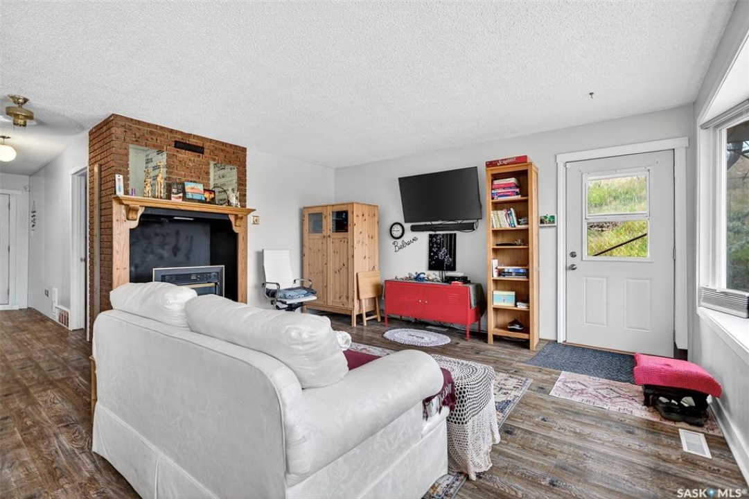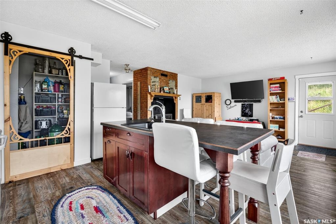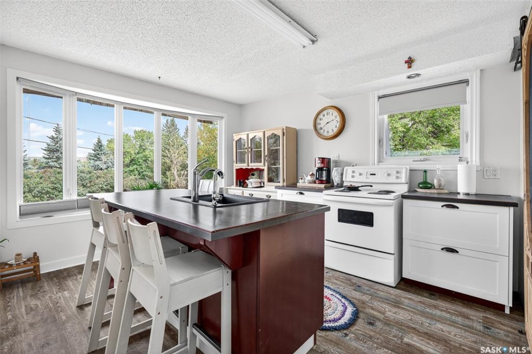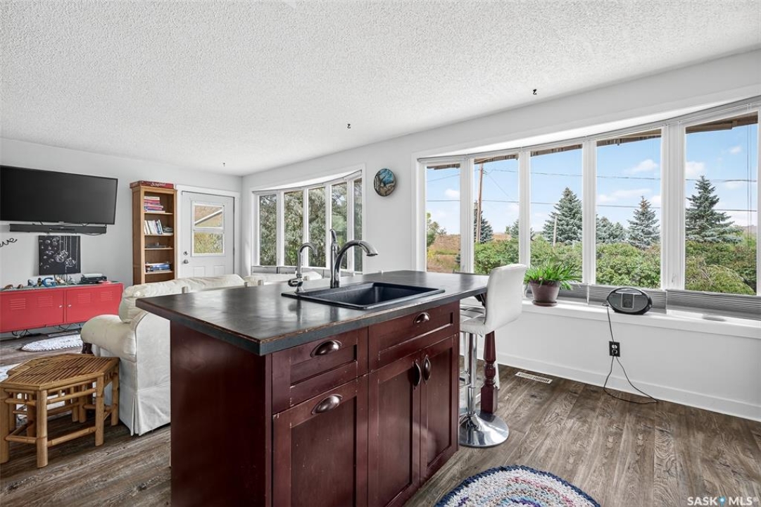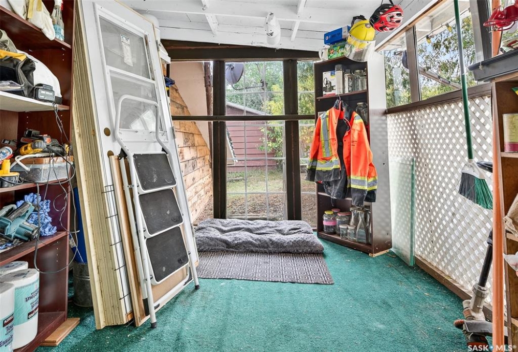 Charming year-round property at Parkview on Buffalo Pound Lake! This inviting 2-bedroom home offers comfort, functionality, and lake-life charm. As you approach, you're welcomed by a spacious front deck with convenient storage underneath. Inside, the open-concept layout connects the kitchen and living room, highlighted by large windows that fill the space with natural light. The kitchen features updated cabinetry, a modern sink, a generous pantry, and a functional island that doubles as a prep area and eating space. The main level includes a well-sized bedroom and a spacious 4-piece bathroom, complete with laundry. At the back of the home, step out to a screened-in deck that overlooks a large yard—perfect for relaxing or entertaining. The lower level offers a small additional bedroom, mechanical room, and an extra toilet for convenience. Outdoors, the property includes an older garage, a fenced area with multiple raised garden beds, and a pathway leading to a private trail lined with apple trees and Saskatoon berry bushes. This is an ideal opportunity to own a cozy four-season retreat with both modern updates and natural beauty at your doorstep.