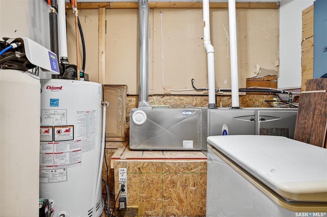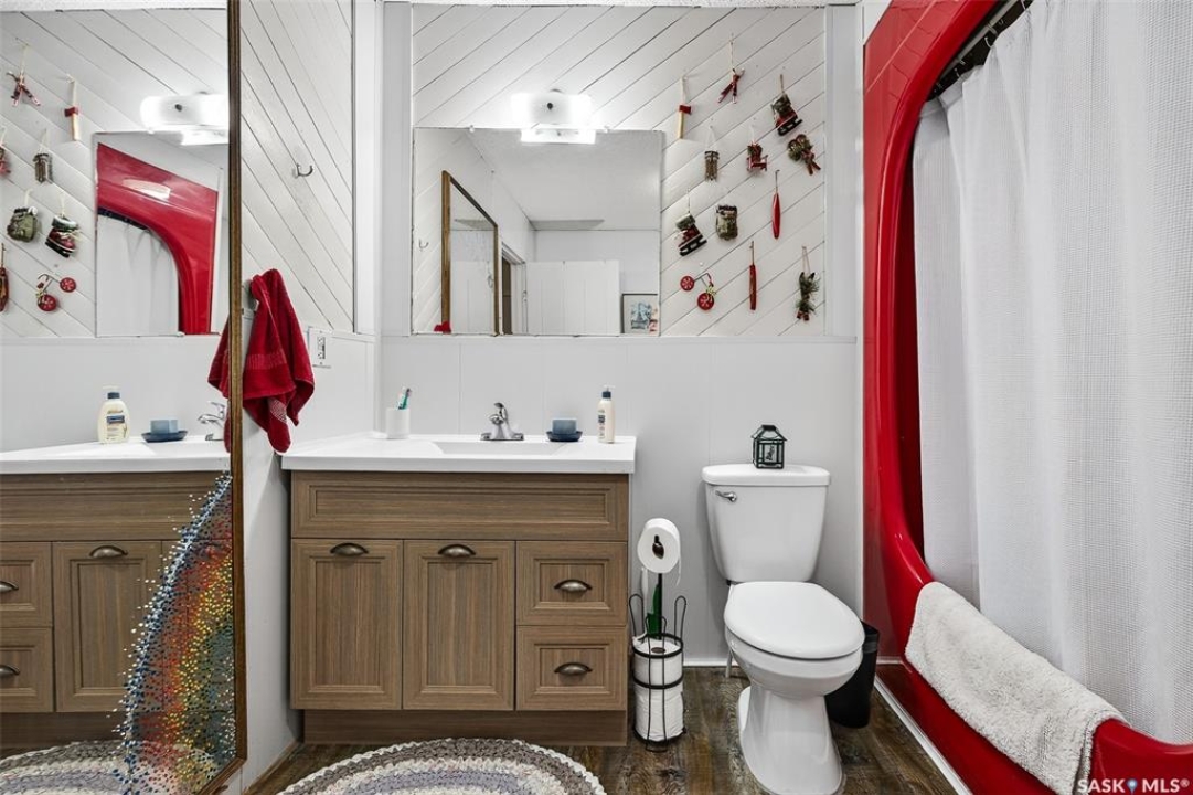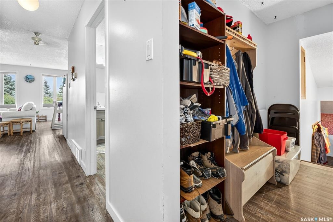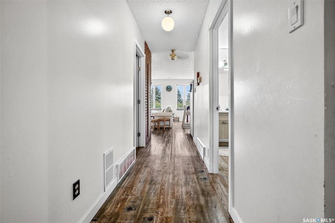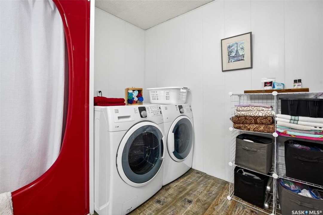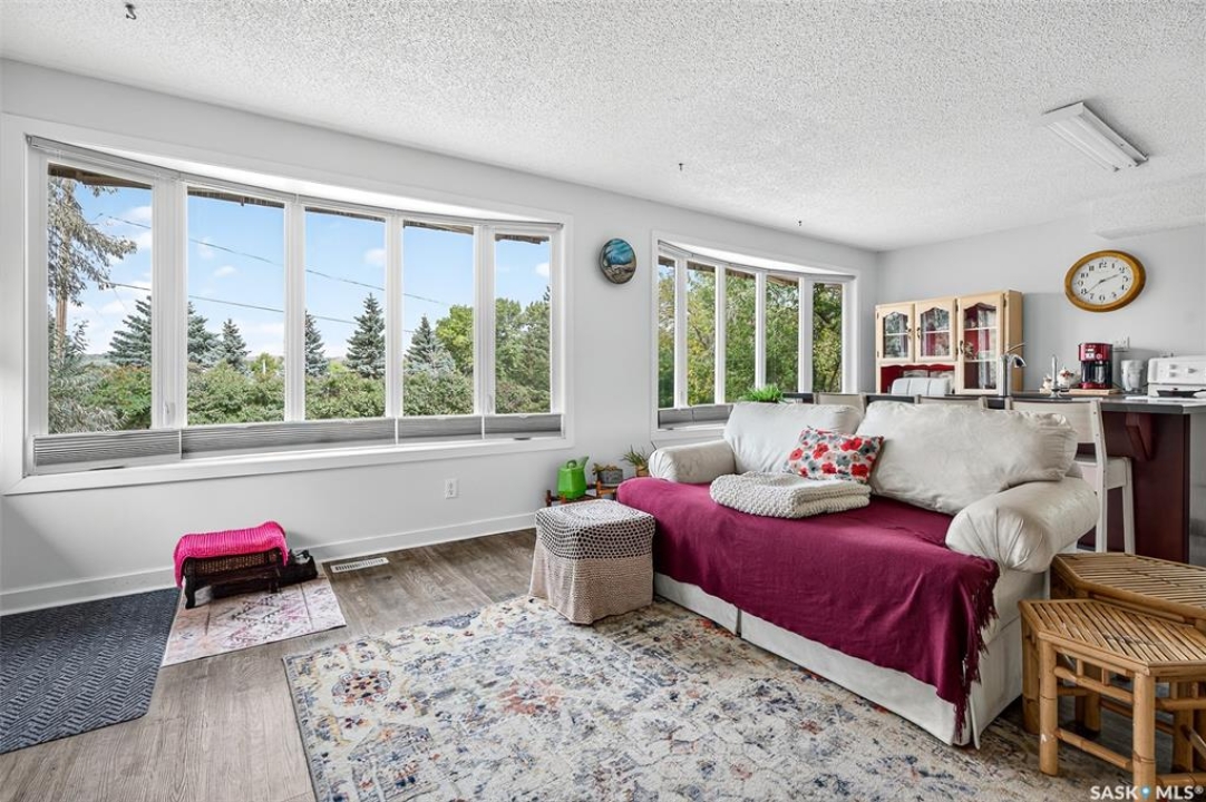 Charming year-round property at Parkview on Buffalo Pound Lake! This inviting 2-bedroom home offers comfort, functionality, and lake-life charm. As you approach, you're welcomed by a spacious front deck with convenient storage underneath. Inside, the open-concept layout connects the kitchen and living room, highlighted by large windows that fill the space with natural light. The kitchen features updated cabinetry, a modern sink, a generous pantry, and a functional island that doubles as a prep area and eating space. The main level includes a well-sized bedroom and a spacious 4-piece bathroom, complete with laundry. At the back of the home, step out to a screened-in deck that overlooks a large yard—perfect for relaxing or entertaining. The lower level offers a small additional bedroom, mechanical room, and an extra toilet for convenience. Outdoors, the property includes an older garage, a fenced area with multiple raised garden beds, and a pathway leading to a private trail lined with apple trees and Saskatoon berry bushes. This is an ideal opportunity to own a cozy four-season retreat with both modern updates and natural beauty at your doorstep.