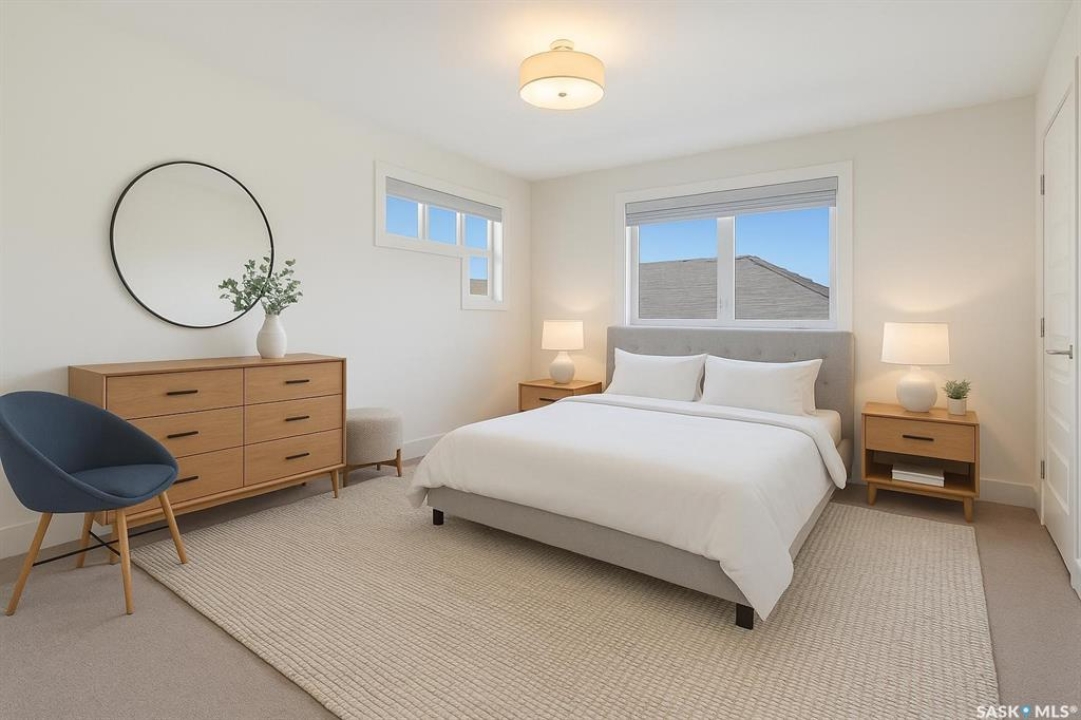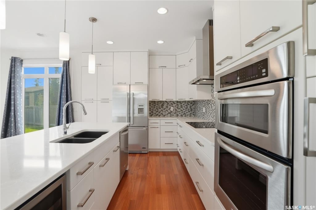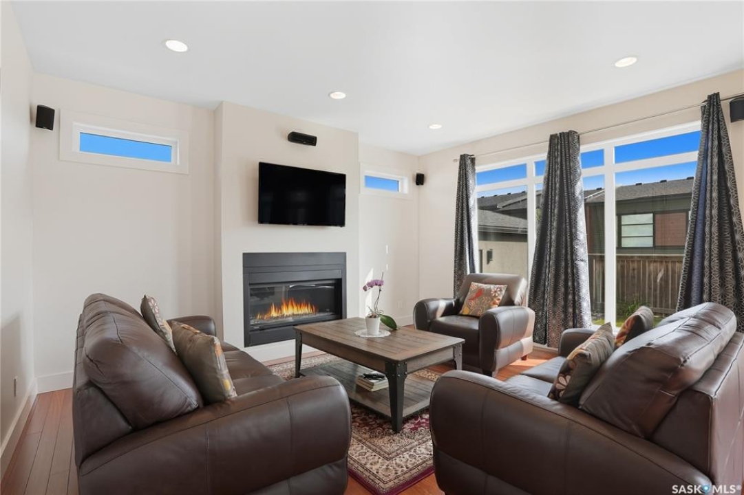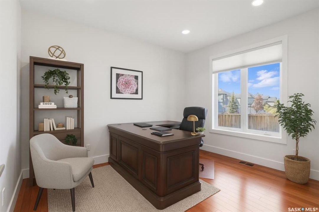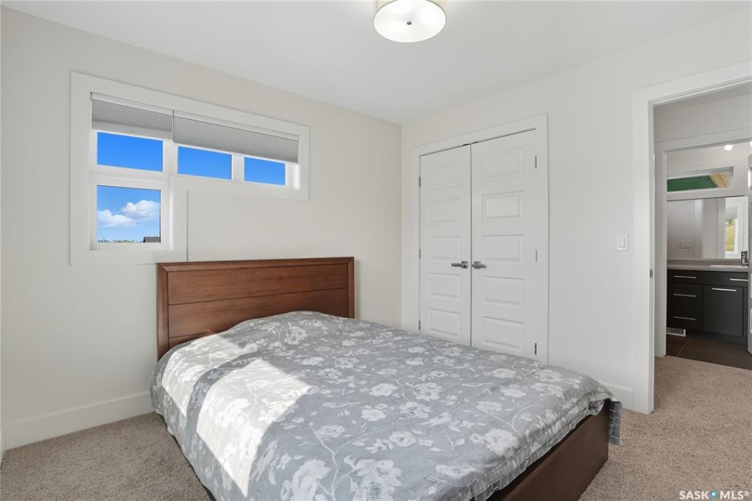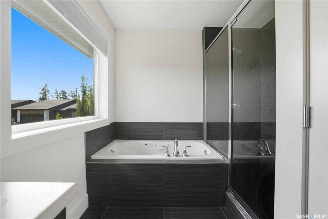 Immaculate Evergreen Home on a Large Pie-Shaped Lot with Detached Garage! Situated in the sought-after Evergreen neighbourhood, this stunning 2-storey home sits on a generous pie-shaped lot & features both an oversized attached double garage with a drive-through third door & a single detached garage—ideal for car enthusiasts or extra storage! Step into the spacious foyer through an oversized 8' front door & experience the pride of ownership throughout. The main floor features a dedicated office/den near the entrance & a light-filled open-concept kitchen, living, and dining area. The sleek modern kitchen boasts ample white cabinetry, a wall pantry, quartz countertops, tile backsplash, stainless steel appliances including a wine fridge & stylish finishes throughout. The living room is anchored by a cozy gas fireplace, while the large dining space opens via patio door to the deck & landscaped backyard. Rich hardwood flooring complements the main level, which also includes a convenient 2-piece bathroom tucked off the mudroom, leading to the impressive 22.10x27.3x30.4 garage. Upstairs, you'll find 3 spacious bedrooms, including a luxurious primary suite with a 5-piece ensuite featuring a soaker tub, double walk-in shower, dual sinks, water closet & walk-in closet. The upper floor also offers a full 5-piece main bathroom and a large laundry room with counter space and cabinetry. The finished basement provides even more room to entertain, with a huge family room, games area, 4th bedroom & full 4-piece bath. A spacious utility area adds storage flexibility. Enjoy custom blinds, A/C, central vacuum. Loads of potential for the back yard which is ready to be transformed into your dream space, plus garden beds & easy access to nearby walking paths. Note the single detached garage (19.8'x12.7') with easy access. Located near the Forestry Farm/Zoo, amenities, school bus pick-up, elementary & high schools! Call your Realtor ® to view today! *some pictures are virtually staged