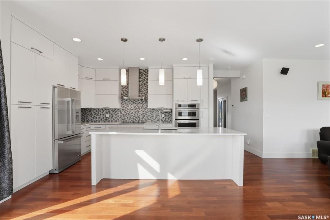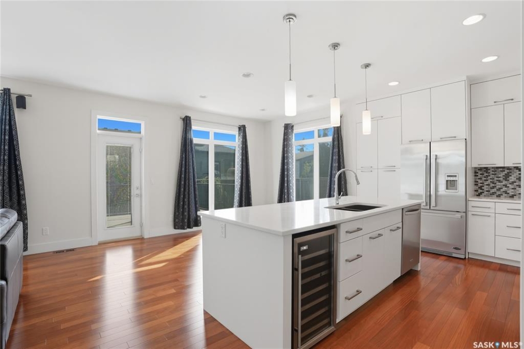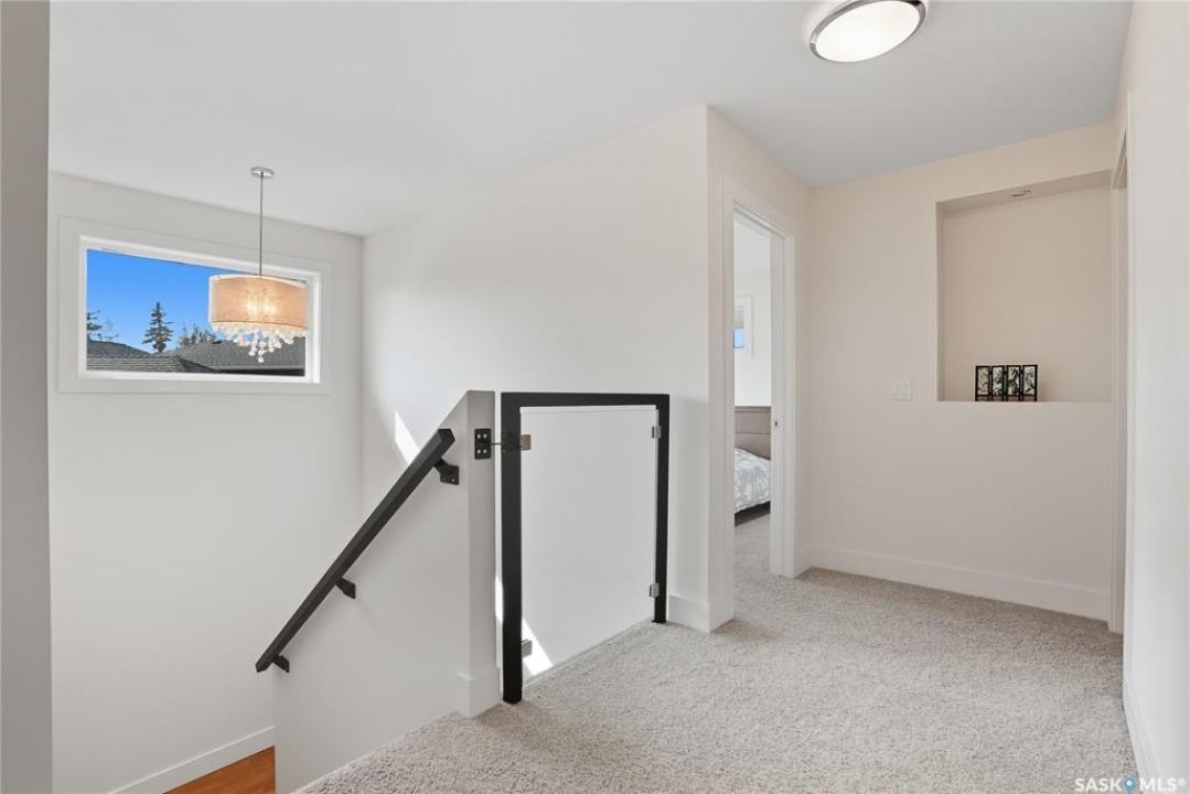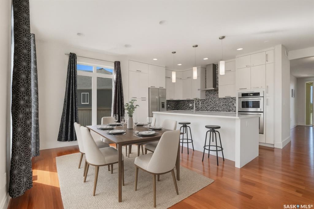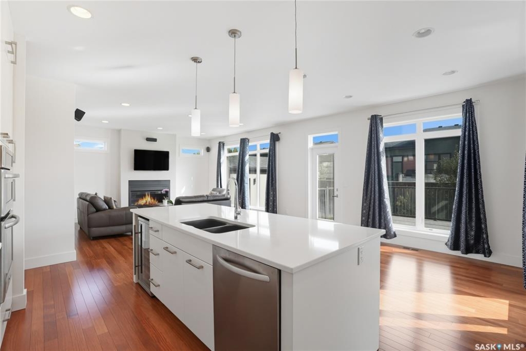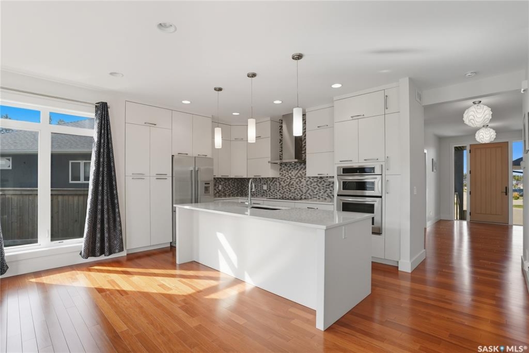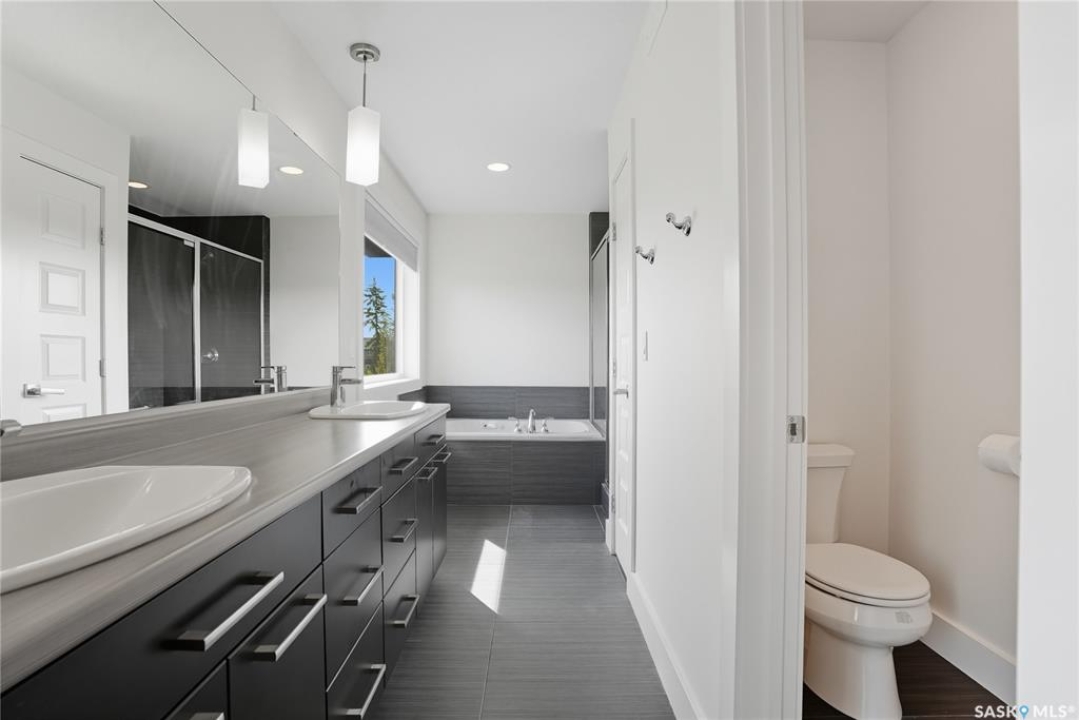 Immaculate Evergreen Home on a Large Pie-Shaped Lot with Detached Garage! Situated in the sought-after Evergreen neighbourhood, this stunning 2-storey home sits on a generous pie-shaped lot & features both an oversized attached double garage with a drive-through third door & a single detached garage—ideal for car enthusiasts or extra storage! Step into the spacious foyer through an oversized 8' front door & experience the pride of ownership throughout. The main floor features a dedicated office/den near the entrance & a light-filled open-concept kitchen, living, and dining area. The sleek modern kitchen boasts ample white cabinetry, a wall pantry, quartz countertops, tile backsplash, stainless steel appliances including a wine fridge & stylish finishes throughout. The living room is anchored by a cozy gas fireplace, while the large dining space opens via patio door to the deck & landscaped backyard. Rich hardwood flooring complements the main level, which also includes a convenient 2-piece bathroom tucked off the mudroom, leading to the impressive 22.10x27.3x30.4 garage. Upstairs, you'll find 3 spacious bedrooms, including a luxurious primary suite with a 5-piece ensuite featuring a soaker tub, double walk-in shower, dual sinks, water closet & walk-in closet. The upper floor also offers a full 5-piece main bathroom and a large laundry room with counter space and cabinetry. The finished basement provides even more room to entertain, with a huge family room, games area, 4th bedroom & full 4-piece bath. A spacious utility area adds storage flexibility. Enjoy custom blinds, A/C, central vacuum. Loads of potential for the back yard which is ready to be transformed into your dream space, plus garden beds & easy access to nearby walking paths. Note the single detached garage (19.8'x12.7') with easy access. Located near the Forestry Farm/Zoo, amenities, school bus pick-up, elementary & high schools! Call your Realtor ® to view today! *some pictures are virtually staged