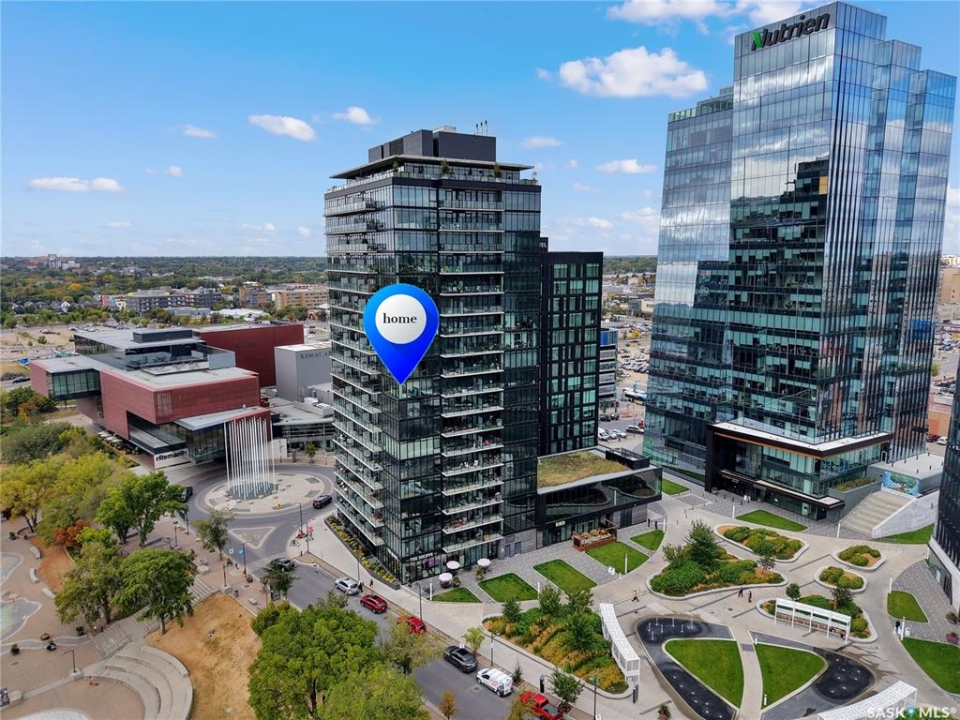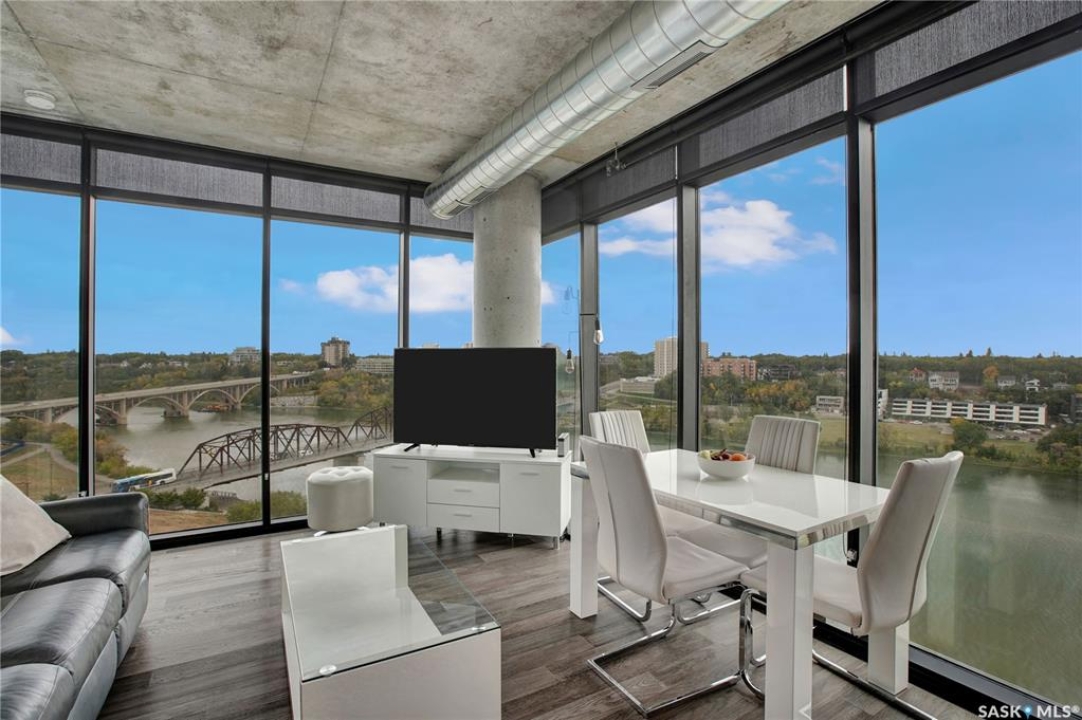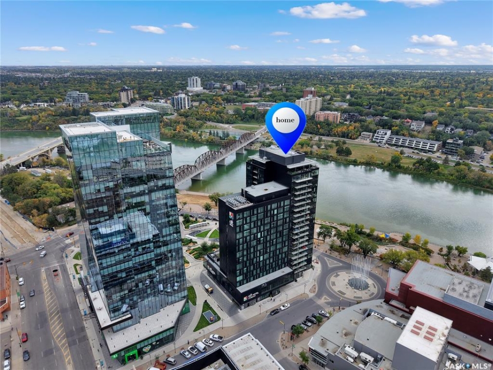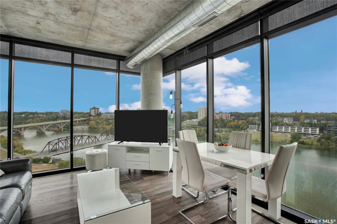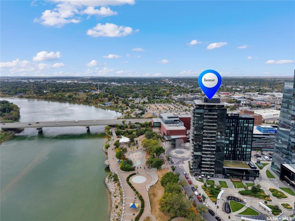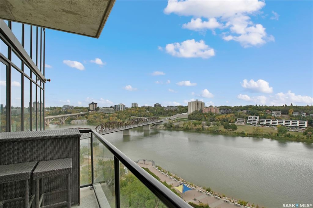 Live your life with the best river view in Saskatchewan. This stunning 2-bedroom, 2-bath condominium was the most sought after during the purchase phase. It's the south east corner, river facing, D2 floor plan, and the best value per dollar at River Landing. With a sleek design, you can enjoy a place of prestige, with a breathtaking view through the seventeen 9-ft floor to ceiling windows. A custom install of in-floor heating for both bathrooms gives you spa-like comfort while dining at a 10th floor level. A fair-sized balcony allows you to BBQ while looking for miles in either direction while watching the sunrise or set. You'll have a front row seat to the fireworks festival 365 days of the year. This includes an underground parking stall and a storage unit. Amenities include a resident lounge and fitness centre facing the South Saskatchewan river. This rare opportunity is a generational build that may not ever happen again in our city.