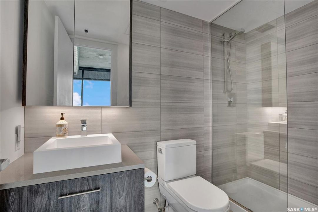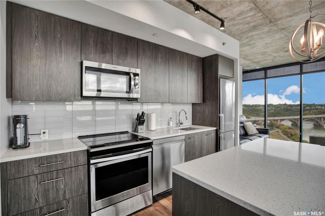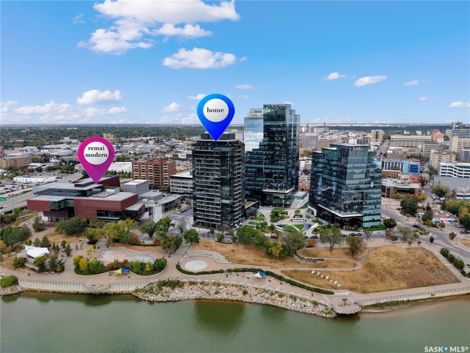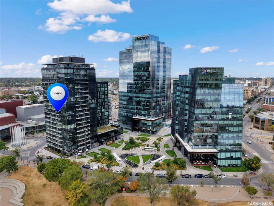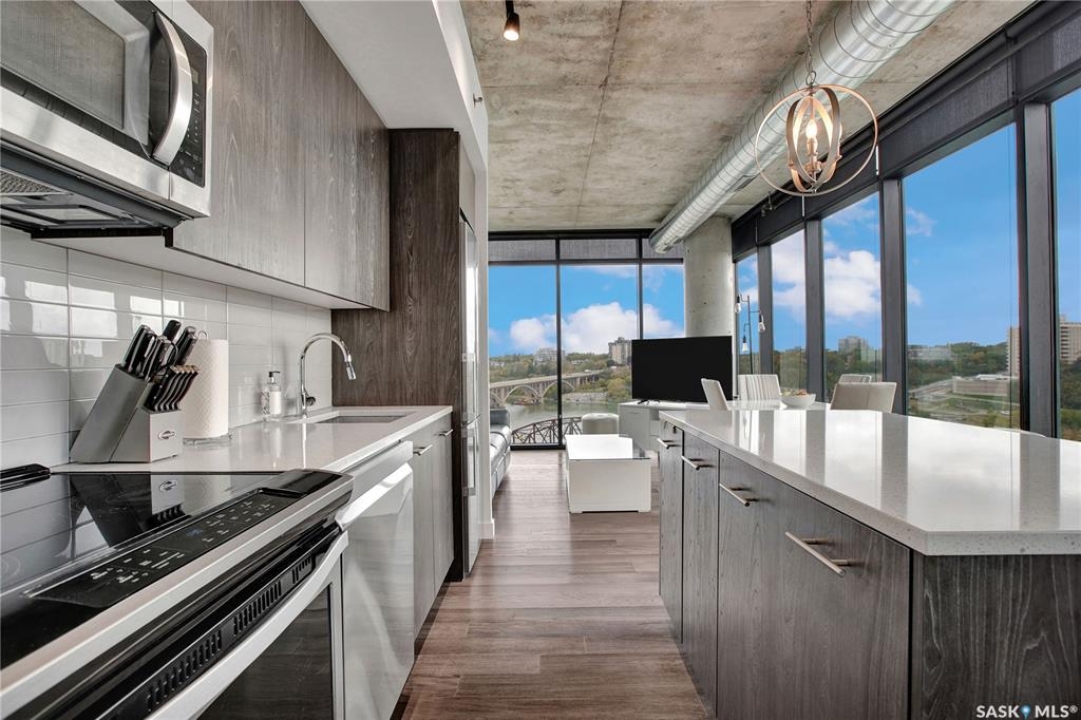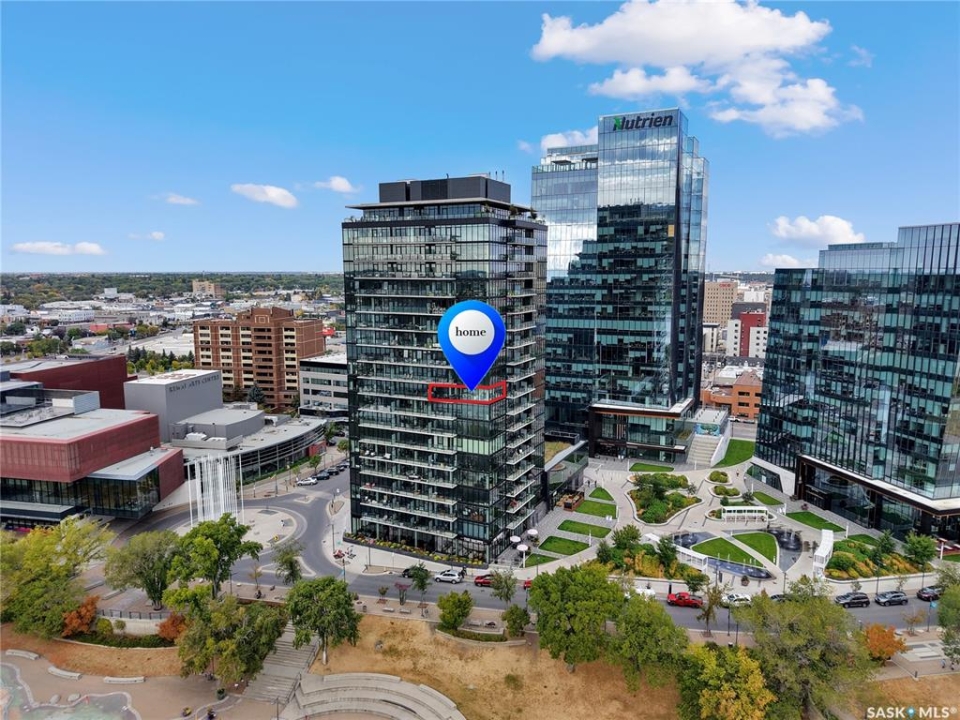 Live your life with the best river view in Saskatchewan. This stunning 2-bedroom, 2-bath condominium was the most sought after during the purchase phase. It's the south east corner, river facing, D2 floor plan, and the best value per dollar at River Landing. With a sleek design, you can enjoy a place of prestige, with a breathtaking view through the seventeen 9-ft floor to ceiling windows. A custom install of in-floor heating for both bathrooms gives you spa-like comfort while dining at a 10th floor level. A fair-sized balcony allows you to BBQ while looking for miles in either direction while watching the sunrise or set. You'll have a front row seat to the fireworks festival 365 days of the year. This includes an underground parking stall and a storage unit. Amenities include a resident lounge and fitness centre facing the South Saskatchewan river. This rare opportunity is a generational build that may not ever happen again in our city.