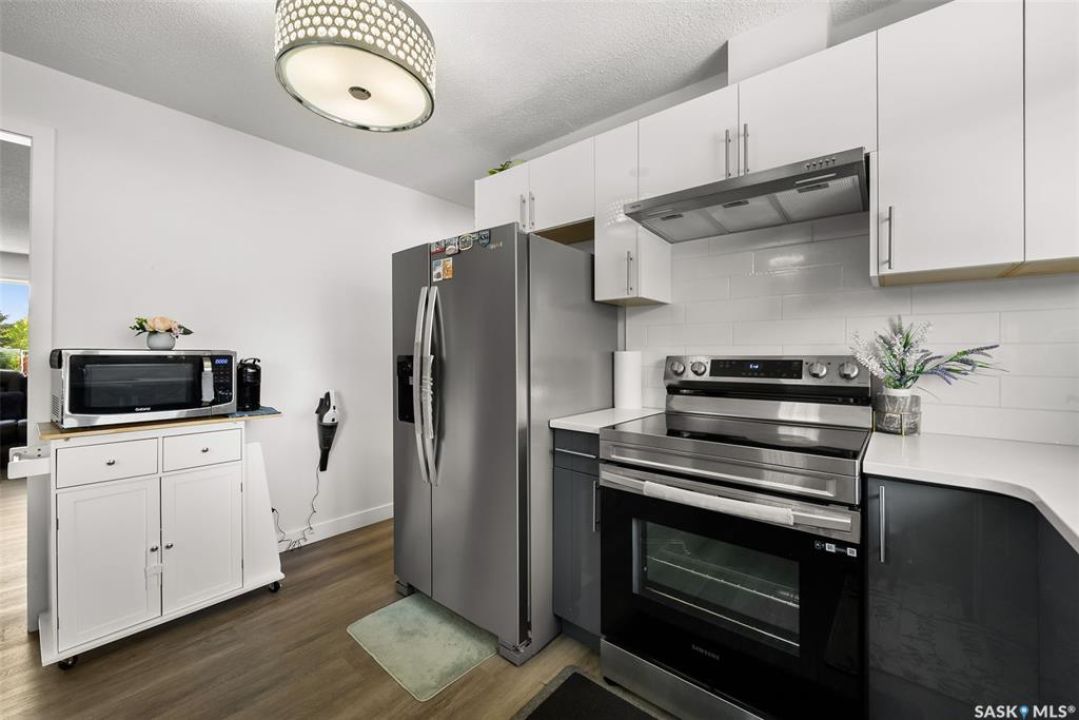 Welcome to 315 McIntosh Street N, a beautifully updated bungalow nestled in the family-friendly Normanview neighbourhood of Regina. This move-in ready home offers 1,245 sq. ft. of bright, modern living space on a spacious 6,100 sq.ft. lot. Thoughtful upgrades throughout. The main floor features a spacious living room with large windows that flood the space with natural light, complemented by vinyl plank flooring throughout. The open-concept design flows seamlessly into the dining area and a stunning updated kitchen, complete with quartz countertops, stylish two-tone cabinetry, stainless steel appliances, and an island with breakfast bar seating—perfect for everyday living and entertaining. Three main-floor bedrooms provide comfort and functionality, including a generous primary bedroom, and a beautifully renovated 4-piece bathroom with modern finishes. The fully developed basement offers even more living space with a large recreation room, an additional bedroom, a den, a 3-piece bath, and a spacious laundry room with extra storage—ideal for growing families or guests. Outside, the property sits on a 6,100 sq. ft. lot with a fenced backyard, patio area, and ample green space. A standout feature is the oversized 24' x 25' detached insulated garage, plus a long concrete driveway offering plenty of off-street parking. The home also boasts a durable metal roof for peace of mind. Additional highlights include central air conditioning, updated flooring, and modern fixtures throughout. Conveniently located near schools, parks, shopping, and transit, this property combines style, space, and practicality. This is an excellent opportunity to own a turn-key family home in a desirable location.