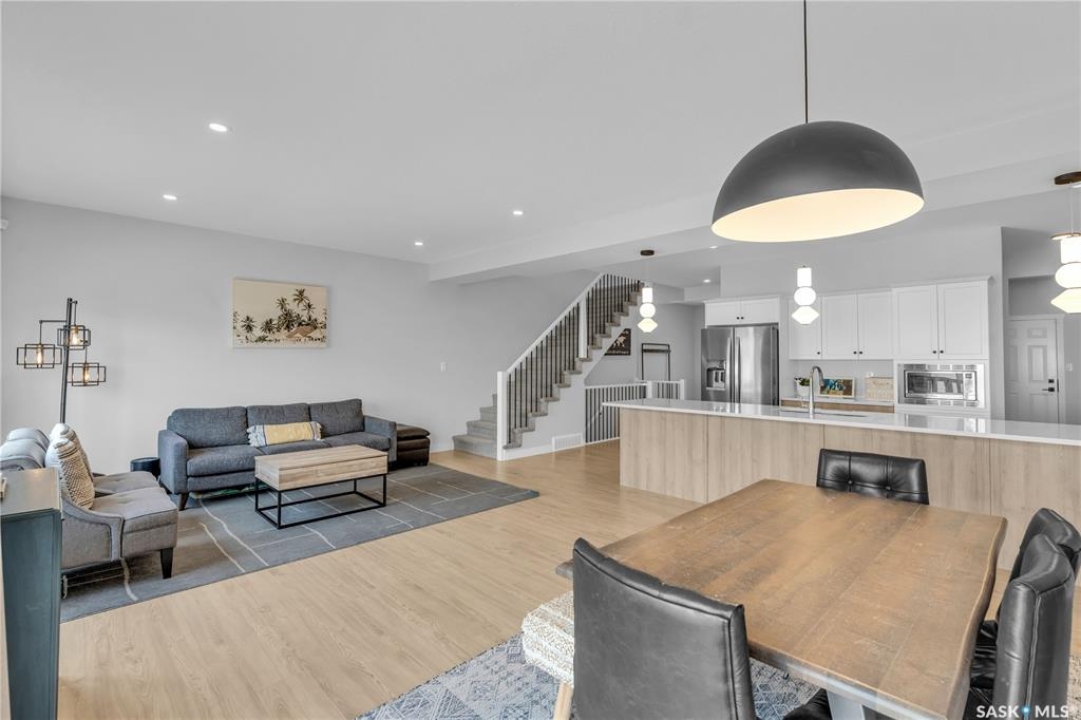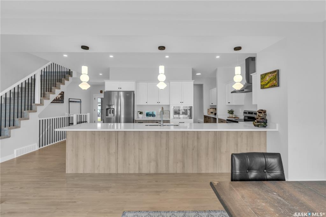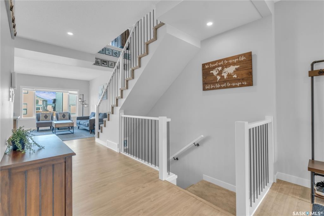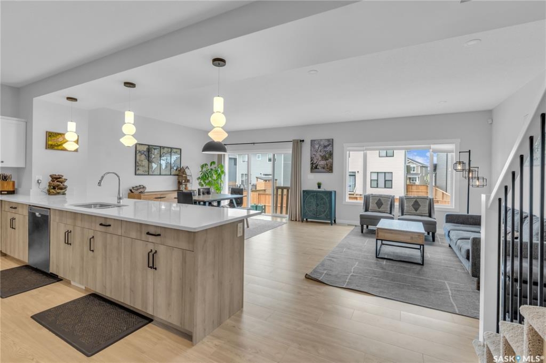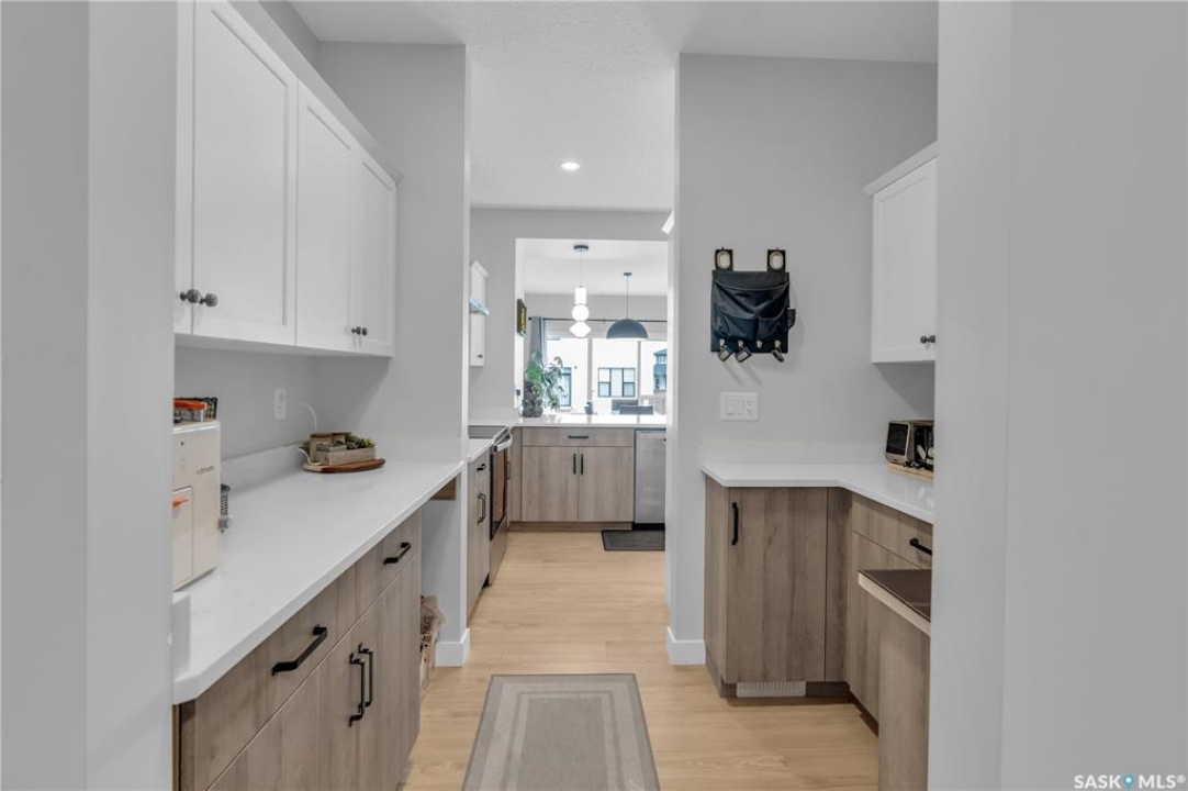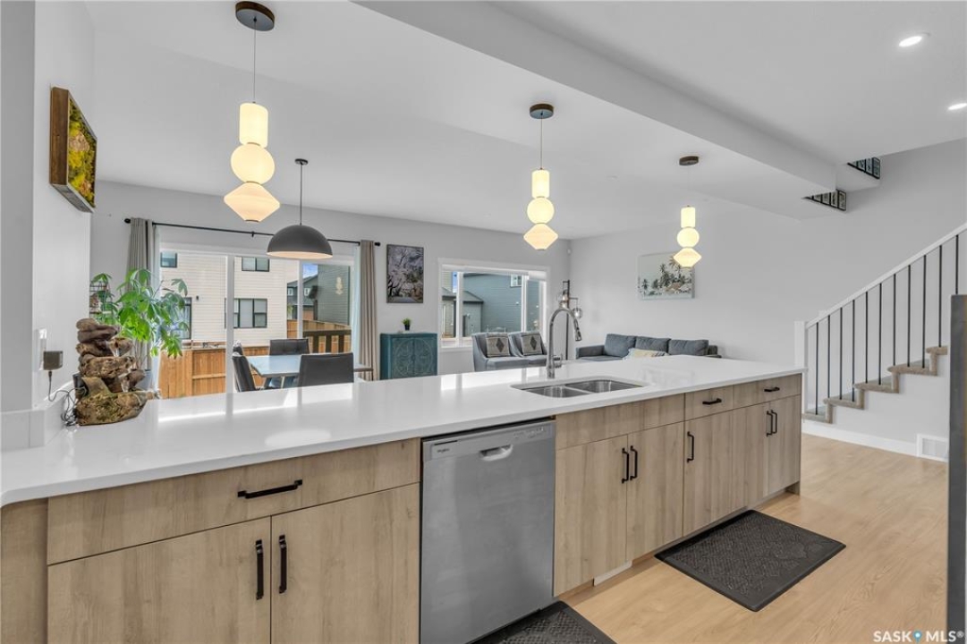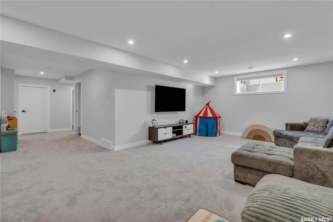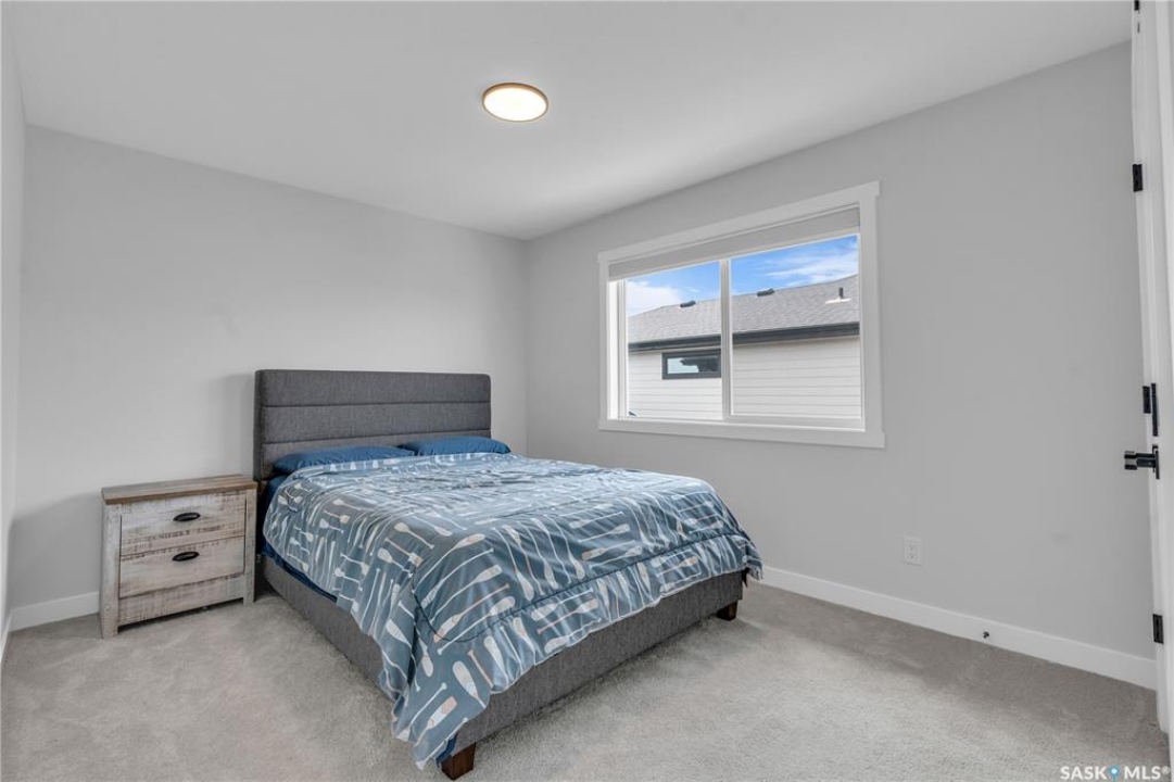 This exceptional, fully developed two-story residence offers 2,346 sq ft of impeccably crafted living space, complete with a triple attached insulated garage. The main floor welcomes you with a spacious mudroom and walk-in closet, flowing effortlessly into a custom walkthrough pantry adorned with cabinetry and quartz countertops. The contemporary kitchen, generous dining area, and inviting living room create an open, elegant atmosphere ideal for both entertaining and everyday living. A well-appointed half bath adds convenience to this level. Upstairs, the sun-filled primary suite boasts an expansive walk-in closet and a spa-inspired five-piece ensuite. Two additional bedrooms, a four-piece bathroom, laundry room, and versatile bonus room provide comfort and flexibility for the entire household. The fully developed basement offers a large family room, den, additional bedroom, and full bathroom, extending the home's living space. Premium upgrades include the custom pantry, concrete patio, air conditioning, and refined finishes throughout. Front landscaping will be completed by the developer, and the home's remaining warranty will be transferred to the new owners. Perfectly positioned just steps from schools, Costco, and all the amenities of The Meadows.