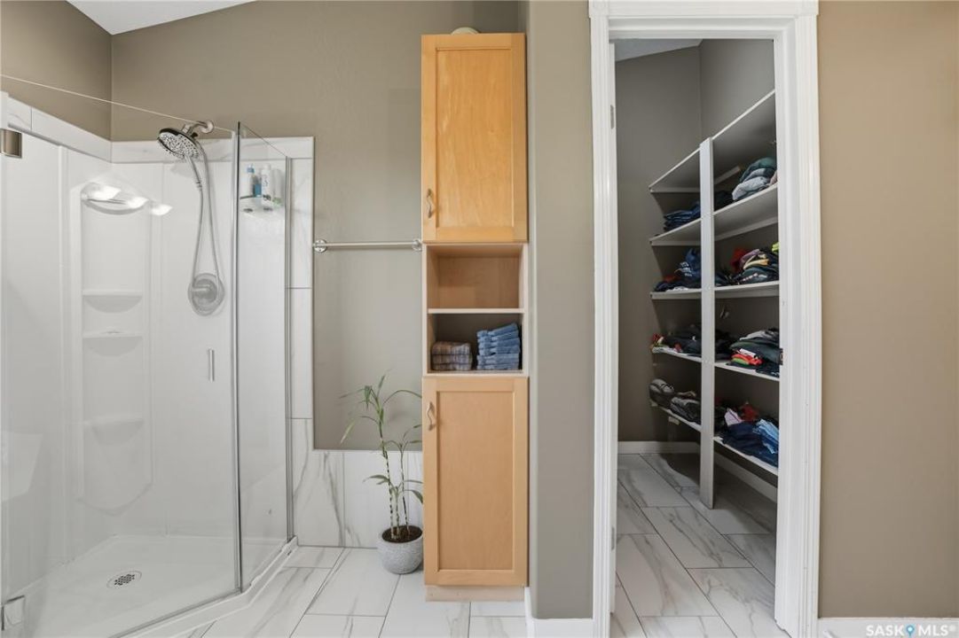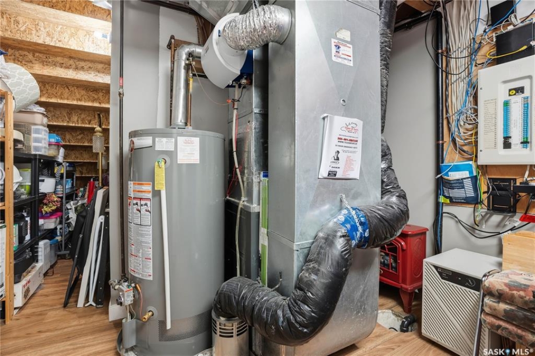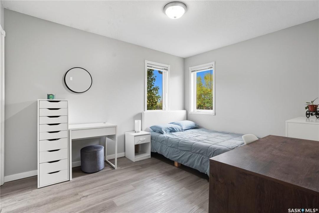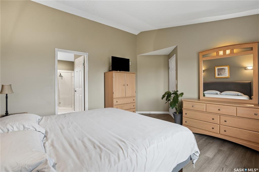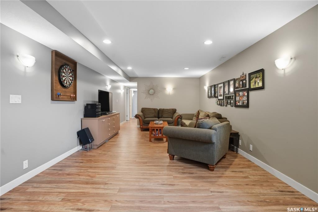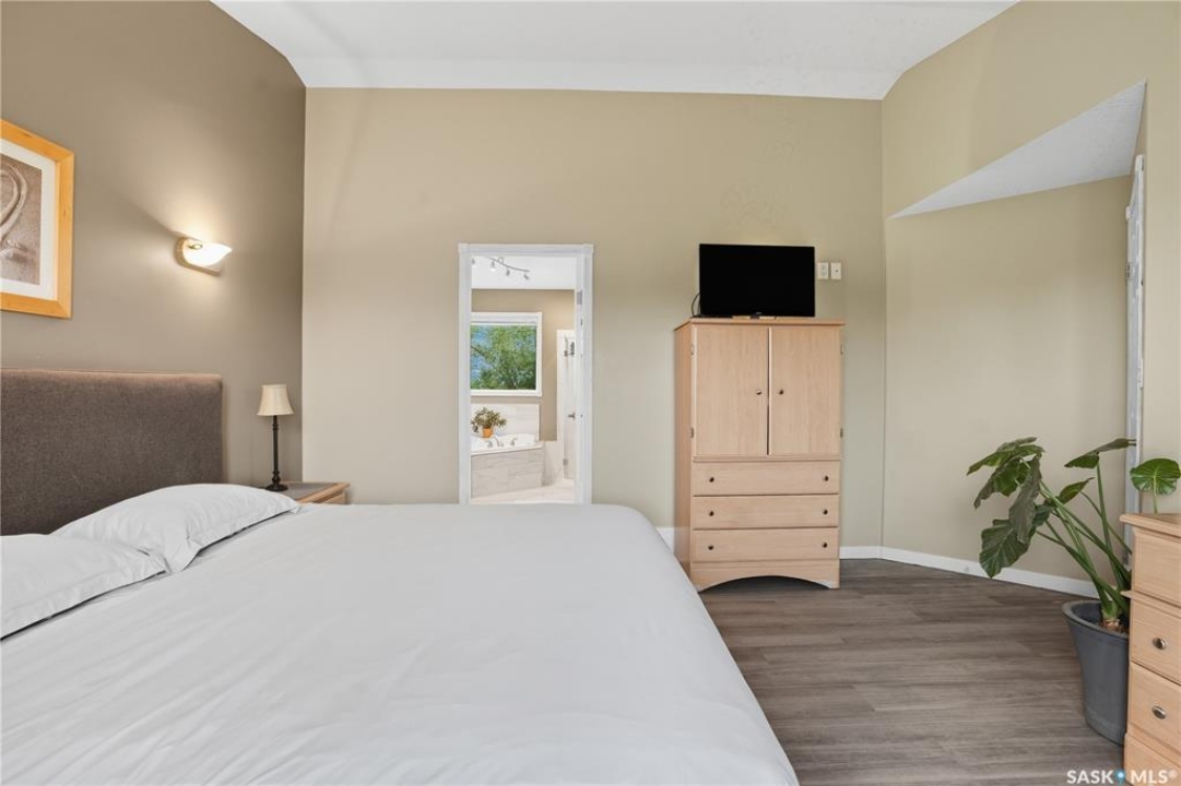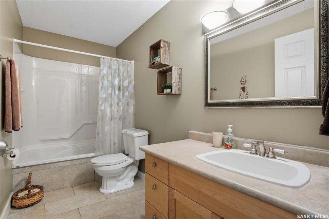 Tucked into Valley Ridge Estates and surrounded by mature trees, shrubs and natural screening! This private 2.77 acre property offers country living, while being only seconds away from Moose Jaw city limits and walking distance to the brand new Coteau Hills elementary school. Built in 2002 and lovingly maintained, this home features a comfortable main floor with an open concept kitchen/dining and living room featuring vaulted ceilings and a gas fireplace. The primary bedroom boasts a generous ensuite with a Jacuzzi tub, standalone shower and a large walk-in closet. Another full bathroom, a separate laundry room as well as an additional bedroom complete the main floor living space. The fully finished lower level is bright and airy thanks to the oversized windows found throughout. A large family room, three additional good size bedrooms and another 4 piece bath with jacuzzi tub complete the lower level. The double car attached garage plus an additional 16' x 24' detached garage provide ample storage for all of your toys and equipment. The rear of the home features a large south facing deck and a lower patio area perfect for entertaining or enjoying your hot tub(included). This home is move in ready, the only thing left to do is put your feet up and enjoy the peace and tranquility. Recent updates include shingles (2020), new furnace (2024), hot water heater (2022), new flooring in basement (2017), new flooring upstairs (2019). Property is on Municipal water.
