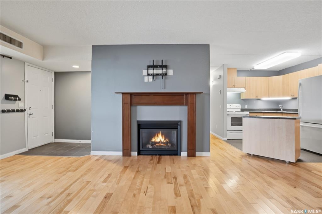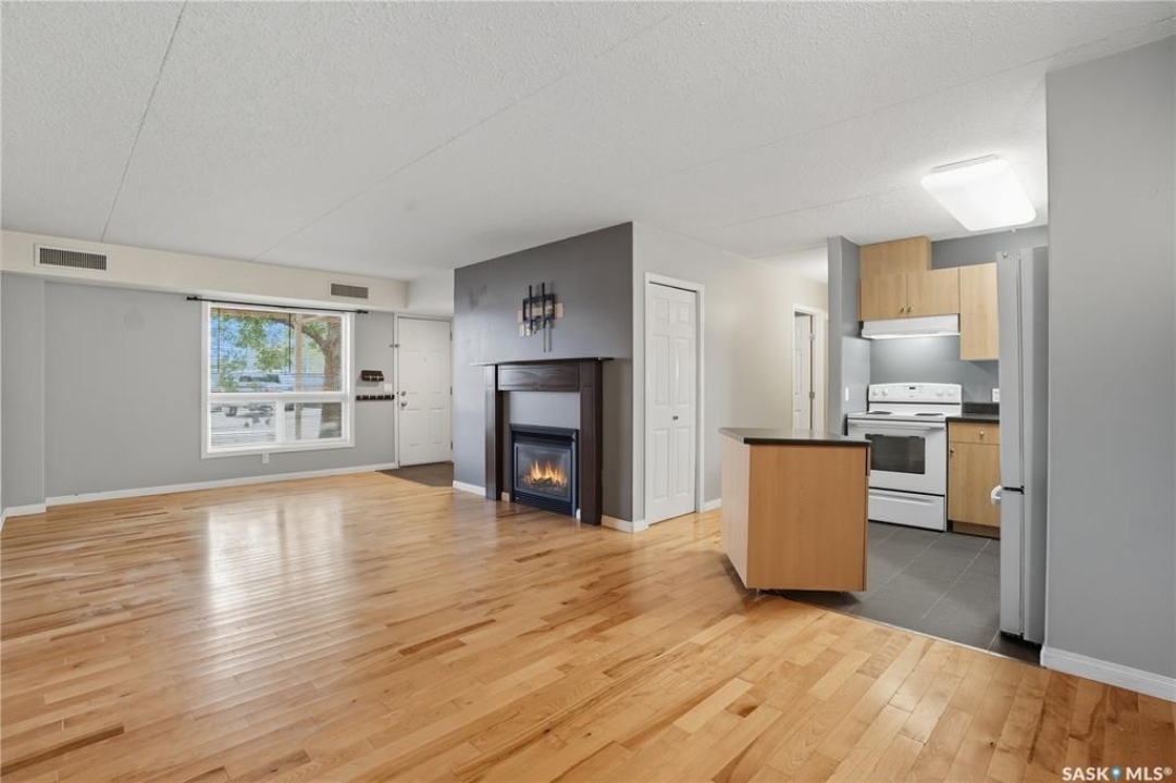 Welcome to 160 Gore Place unit #300. This move-in-ready, lower level apartment-style condo, perfect for a first-time homebuyer or revenue property. This well-maintained, updated unit features 2 comfortable bedrooms, gleaming hardwood flooring throughout, and a bright 4-piece bathroom. The kitchen is equipped with attractive cabinetry, under-counter lighting, and a convenient moveable island, opening to a dining area ideal for everyday meals or entertaining. Additional highlights include in-suite laundry with extra storage, plus an outdoor storage space located in the furnace room. The unit is heated with a high-efficiency furnace, adding to its comfort and value. A dedicated parking stall is included for your convenience. Clean, functional, and ready for new owners, this condo is an excellent opportunity to enjoy affordable, low-maintenance living. For your own personal showing, contact us today.