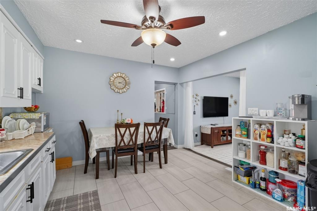 Bright, well-kept 1969 bungalow on a 50×130 corner lot in Meadowgreen—~2-min walk to the Dawah & Community Centre, steps to 22nd St transit/amenities, and an easy stroll to St. Paul's Hospital. Main level offers 3 bedrooms, a gorgeous eat-in kitchen (tile flooring, ceiling fan, LED pot lights, long run of cabinetry), a comfortable living room, and an updated 4-pc bath with tiled surround/niche (see photos). Bedrooms show warm wood tones; vinyl plank runs through most of the main for easy care. The enclosed back porch adds year-round utility—cold-room storage in winter, gear space in summer. Finished lower level features a bedroom + windowed den (use as office/flex), a bathroom with in-bath laundry (see photos), and extra storage. Outside, enjoy a fully fenced, extra-deep backyard with rear gate access and a single detached garage with opener and space for a workbench. Mature city trees are beyond the rear fence—so you get privacy and shade without giving up usable yard area. Possession March 2025.