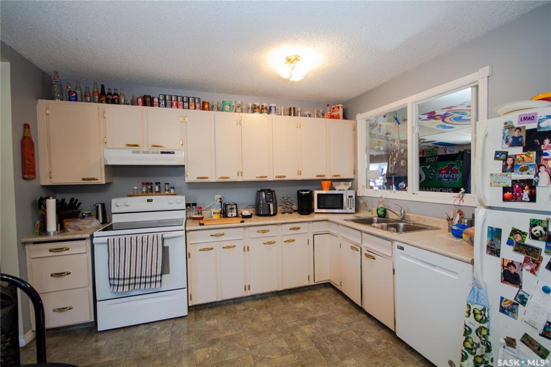 Nestled in Battleford on 3rd Ave Crescent you'll find is this cozy bungalow featuring 2 bedrooms, 2 dens & 2 4pc bathrooms. Enter through the back porch where there is lots of room to store all of your outwear in the large closet. From there you can enter the 4-season living room which is off the back of the house where you can host a variety of activities and allows for easy access to a den that could easily be turned into a bedroom with a new egress window. Upstairs living space features a dedicated dining area with classic parquet flooring, a living room with a bright updated window, and an L-shaped kitchen with an additional eating area. A 4-pc bath and bedroom complete this floor. Downstairs features a bedroom, a den, and a unique 4-piece bathroom set up with the tub separate from the toilet and sink. Step outside to a deep paved driveway leading up to an 24x24 insulated garage, a great place to park and avoid the outside elements. The backyard is a bit larger than the average sized lot with plenty of space for your hobbies, BBQ's on the patio and storing your toys. Added value here with new central air and all new main floor exterior windows, both in 2024. Sounds like just what you are looking for? Call and schedule your showing today!
