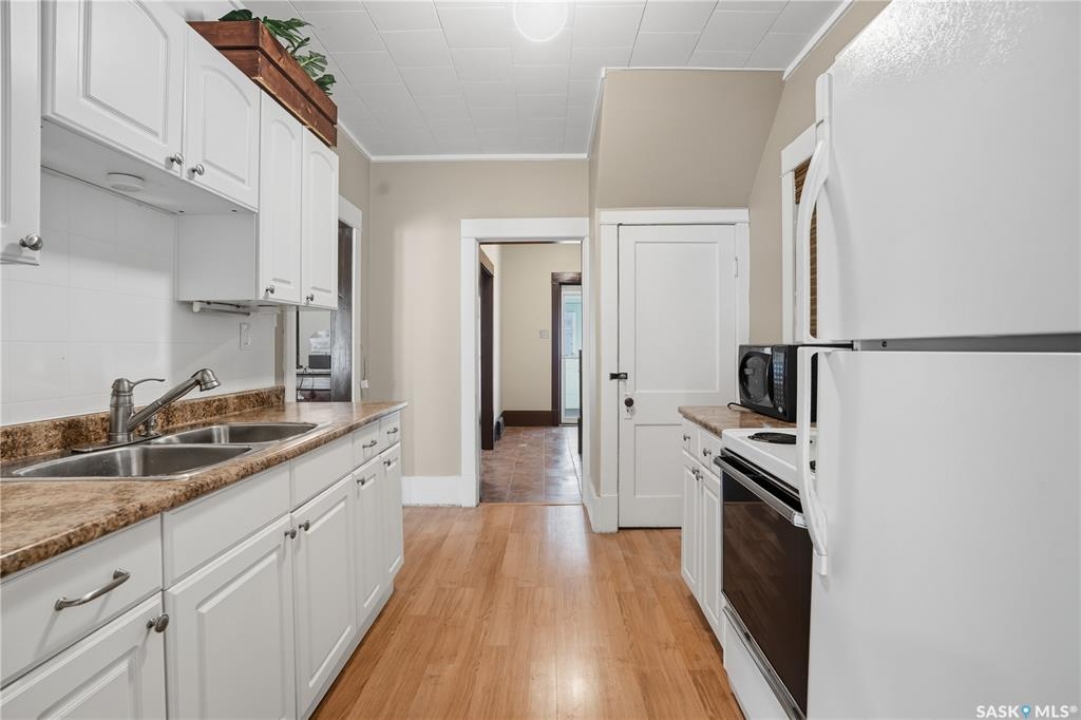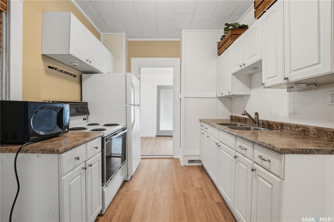 Welcome to 2327 Toronto Street, a charming 1922 Craftsman character home located in the desirable Heritage Area, also known as the General Hospital Area. This property combines timeless character with important modern updates, making it a perfect choice for families, professionals, or investors seeking a well-maintained downtown home. Offering over 1,000 sq. ft. of living space, this home features three bedrooms and a four-piece bathroom complete with the original clawfoot tub. The master suite is enhanced by a bright sunroom, ideal for relaxing or enjoying your morning coffee. The second bedroom provides great space for family or guests, while the third would function well as a children's room or a dedicated office. Throughout the home you'll find original wood trim and hardwood floors (preserved under carpeting and laminate), maintaining the authentic Craftsman character. The kitchen has been fully renovated, providing a modern space that blends seamlessly with the home's charm.Extensive updates have already been completed for peace of mind, including: • New sewer line from the stack to the City connection (2024) • New water line (2024, no lead lines) • High-efficiency furnace • New concrete basement floor (2025) • Newer PVC windows and updated shingles on the east side of the house • Back porch fully redone in 2025 with heat source, insulation, drywall, and new flooring, adding valuable year-round living space. Outdoor features include a composite covered deck (2019, roof 2020), PVC fencing with privacy slats, and a low-maintenance backyard offering plenty of parking with the option to develop a garage.With immediate possession available, this is a rare opportunity to own a character-filled home with the important mechanical updates already taken care of. Whether you're looking for a family residence or a solid investment property close to downtown, this home is move-in ready and waiting for its new owners.