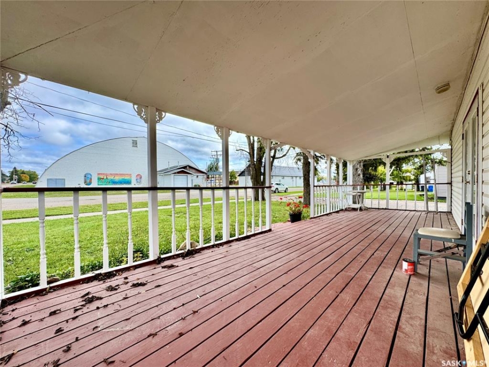 Situated directly across the street from the daycare, K-12 school, and arena, and just steps away from the community pool, this property is perfectly positioned for family living and convenience. This 2 bedroom, 1 bathroom home is wheelchair-friendly and offers an attached insulated one-car garage with direct entry. Inside, the bright kitchen boasts an abundance of counter and cupboard space, while the layout features main floor laundry for easy living. The cozy wood stove adds warmth and charm, and the updated 200-amp electrical panel provides peace of mind. Though the basement is for storage only, it's a practical bonus for seasonal items and extras. Step outside to discover a fully fenced backyard—a private retreat complete with a hot tub to unwind in at the end of the day. You will love the spacious partial wrap-around deck, providing the perfect spot to enjoy both morning sunrises and evening shade. This property combines everyday function with unbeatable location, making it a fantastic opportunity for its next owners.