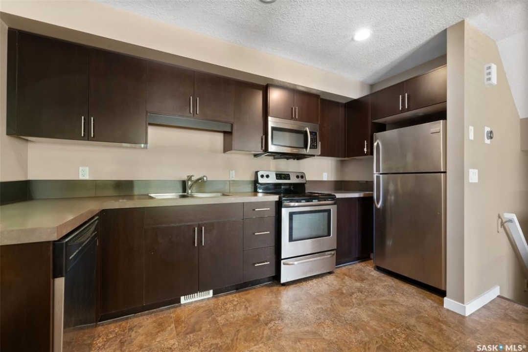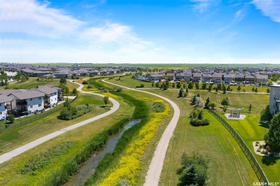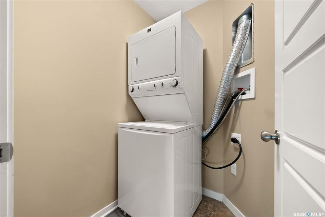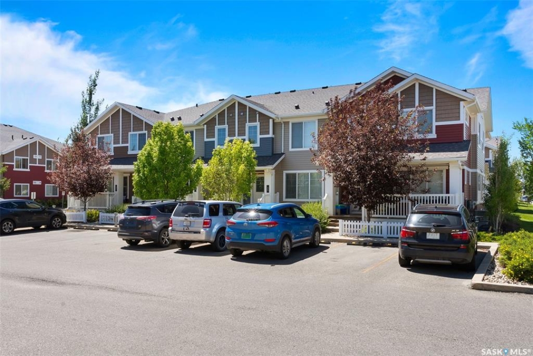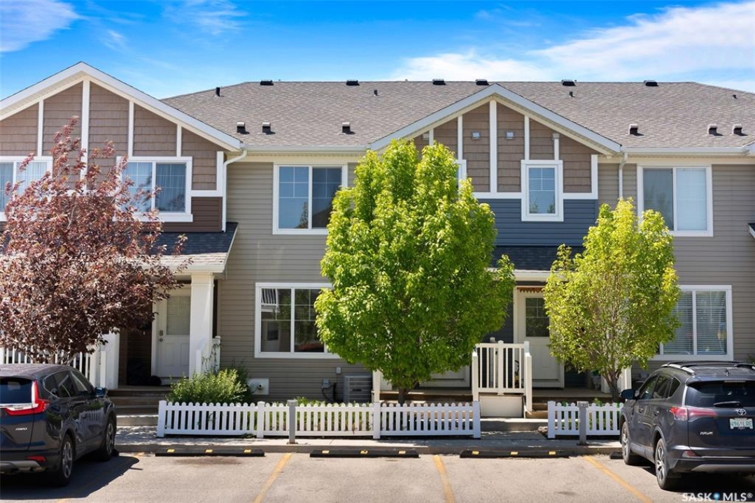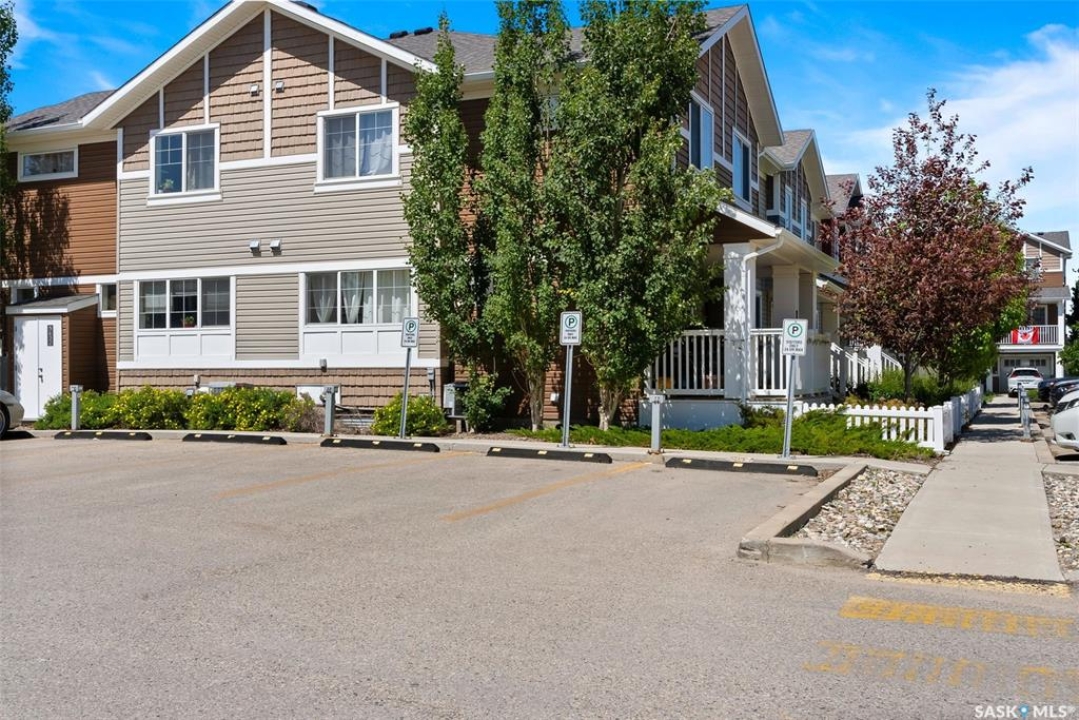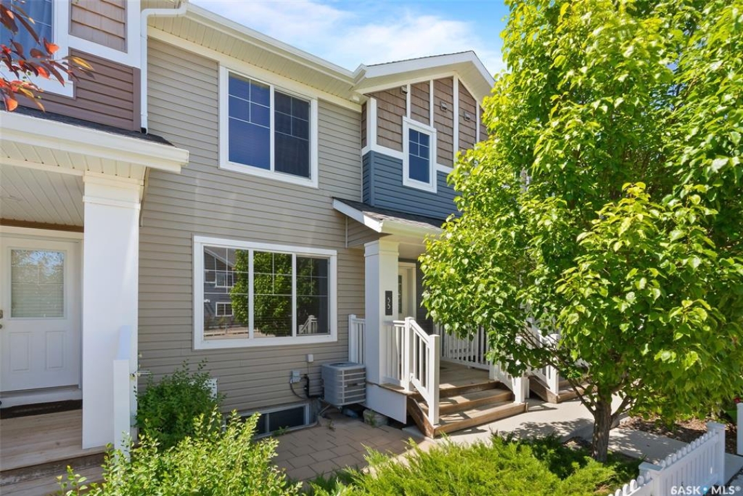 Step into a home that effortlessly blends warmth, functionality, and location. Tucked inside the thoughtfully designed Life on Gordon complex, this 2-storey townhouse condo offers not just a place to live—but a lifestyle to love. You will appreciate the well kept landscaping and the upgraded central air conditioning. Inside, you're greeted by a bright and open main floor layout. The generous living room flows naturally into a stylish kitchen and dining area, perfect for everything from quiet mornings to casual entertaining. Rich dark cabinetry and stainless steel appliances—including a built-in microwave hood fan, dishwasher, fridge, and stove. A convenient two-piece bathroom and access to the lower level add to the practicality of the main floor, while large windows allow natural light to pour in, creating an inviting ambiance. The second floor features two well-appointed bedrooms, including a spacious primary suite with a walk-in closet and direct access to the full bathroom. You'll love the upper-level laundry room with a smart, stacked washer/dryer combo, offering efficiency without sacrificing storage space. Downstairs, the unfinished basement presents endless possibilities—home gym, cozy media room, or future third bedroom. With roughed-in plumbing for a bathroom and ample storage, the potential is yours to unlock. Step outside to your own private patio—an ideal spot for summer barbecues, morning coffee, or quiet evenings under the prairie sky. Located just steps from walking paths, green spaces, parks, and the dual Catholic/Public elementary school, this home is perfect for young professionals, first-time buyers, or downsizers who still crave an active lifestyle. All of Harbour Landing's shopping, dining, and amenities are just minutes away. Unit #83 parking space is included, and quick possession means your new beginning could be just around the corner. (Note: Some Virtually Staged photos).