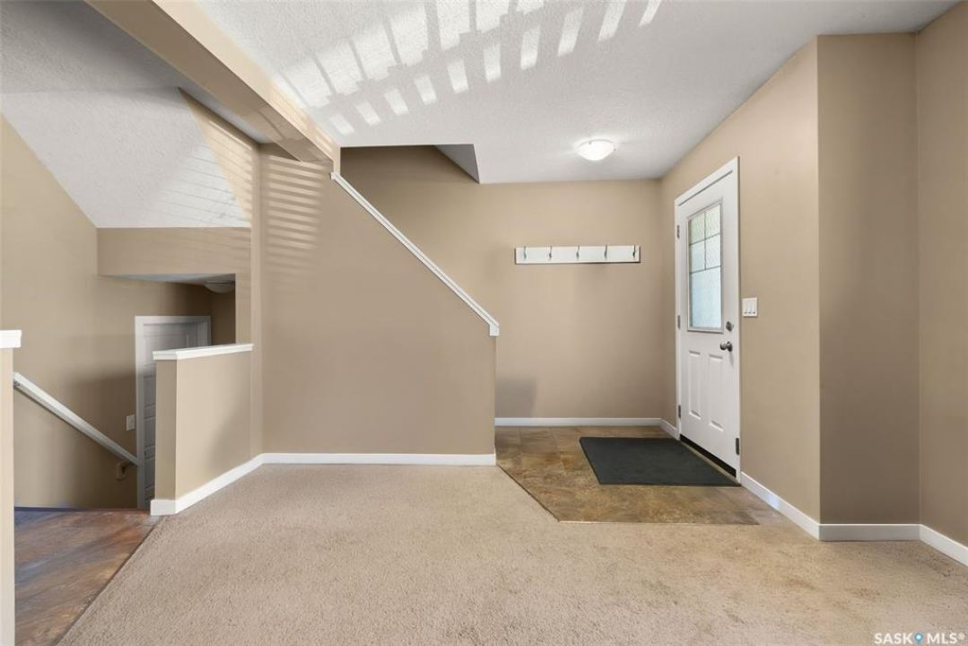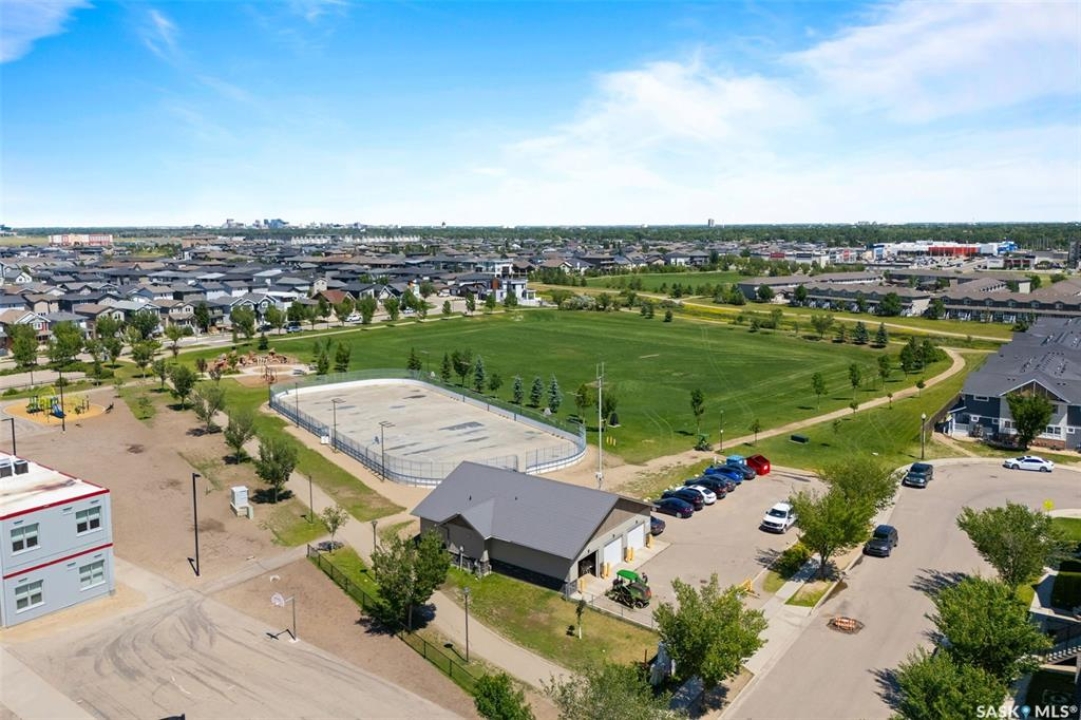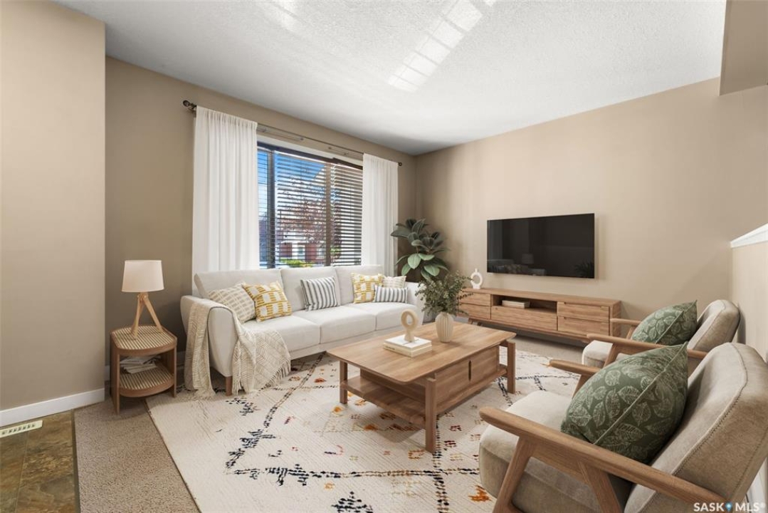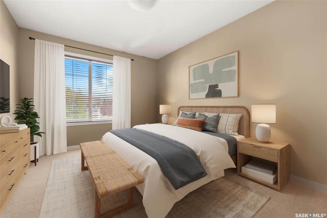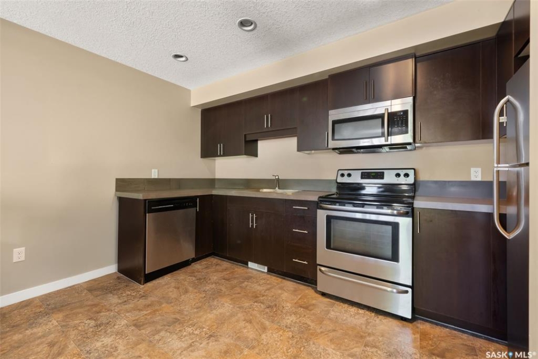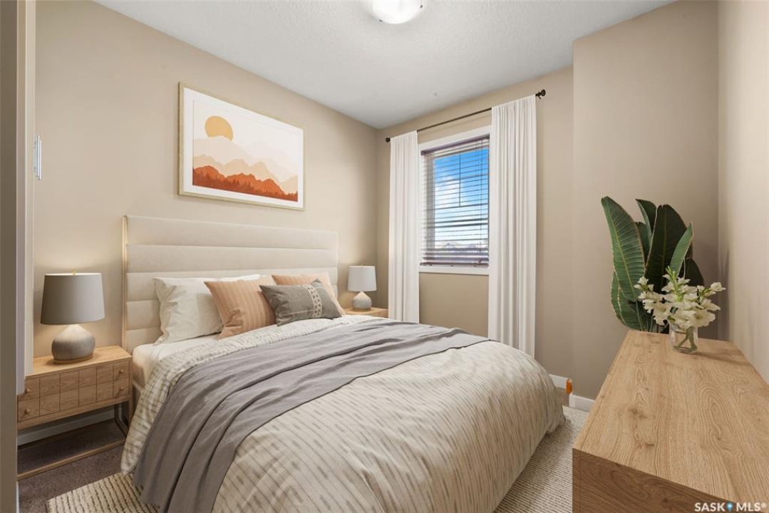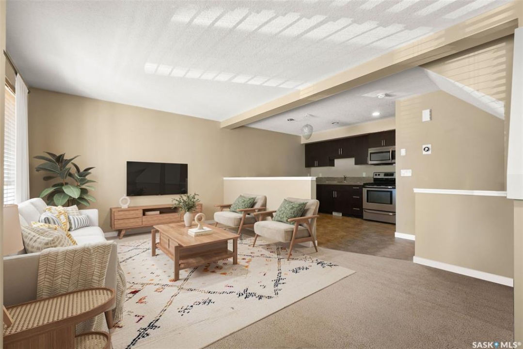 Step into a home that effortlessly blends warmth, functionality, and location. Tucked inside the thoughtfully designed Life on Gordon complex, this 2-storey townhouse condo offers not just a place to live—but a lifestyle to love. You will appreciate the well kept landscaping and the upgraded central air conditioning. Inside, you're greeted by a bright and open main floor layout. The generous living room flows naturally into a stylish kitchen and dining area, perfect for everything from quiet mornings to casual entertaining. Rich dark cabinetry and stainless steel appliances—including a built-in microwave hood fan, dishwasher, fridge, and stove. A convenient two-piece bathroom and access to the lower level add to the practicality of the main floor, while large windows allow natural light to pour in, creating an inviting ambiance. The second floor features two well-appointed bedrooms, including a spacious primary suite with a walk-in closet and direct access to the full bathroom. You'll love the upper-level laundry room with a smart, stacked washer/dryer combo, offering efficiency without sacrificing storage space. Downstairs, the unfinished basement presents endless possibilities—home gym, cozy media room, or future third bedroom. With roughed-in plumbing for a bathroom and ample storage, the potential is yours to unlock. Step outside to your own private patio—an ideal spot for summer barbecues, morning coffee, or quiet evenings under the prairie sky. Located just steps from walking paths, green spaces, parks, and the dual Catholic/Public elementary school, this home is perfect for young professionals, first-time buyers, or downsizers who still crave an active lifestyle. All of Harbour Landing's shopping, dining, and amenities are just minutes away. Unit #83 parking space is included, and quick possession means your new beginning could be just around the corner. (Note: Some Virtually Staged photos).