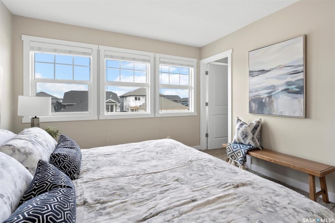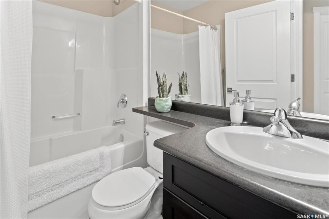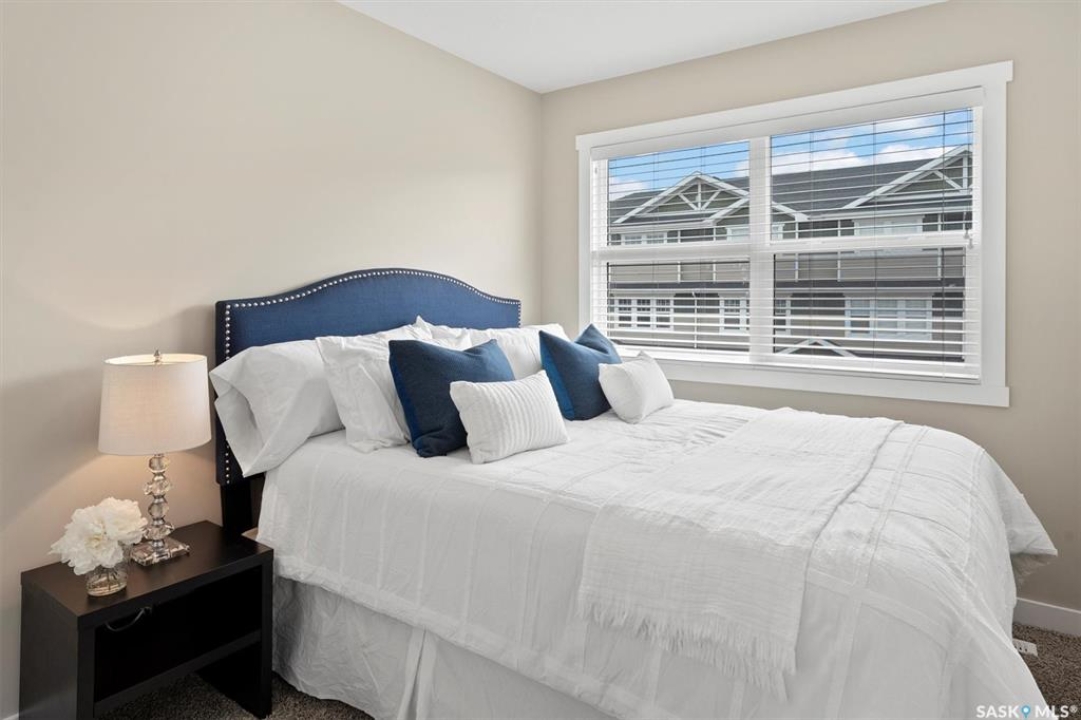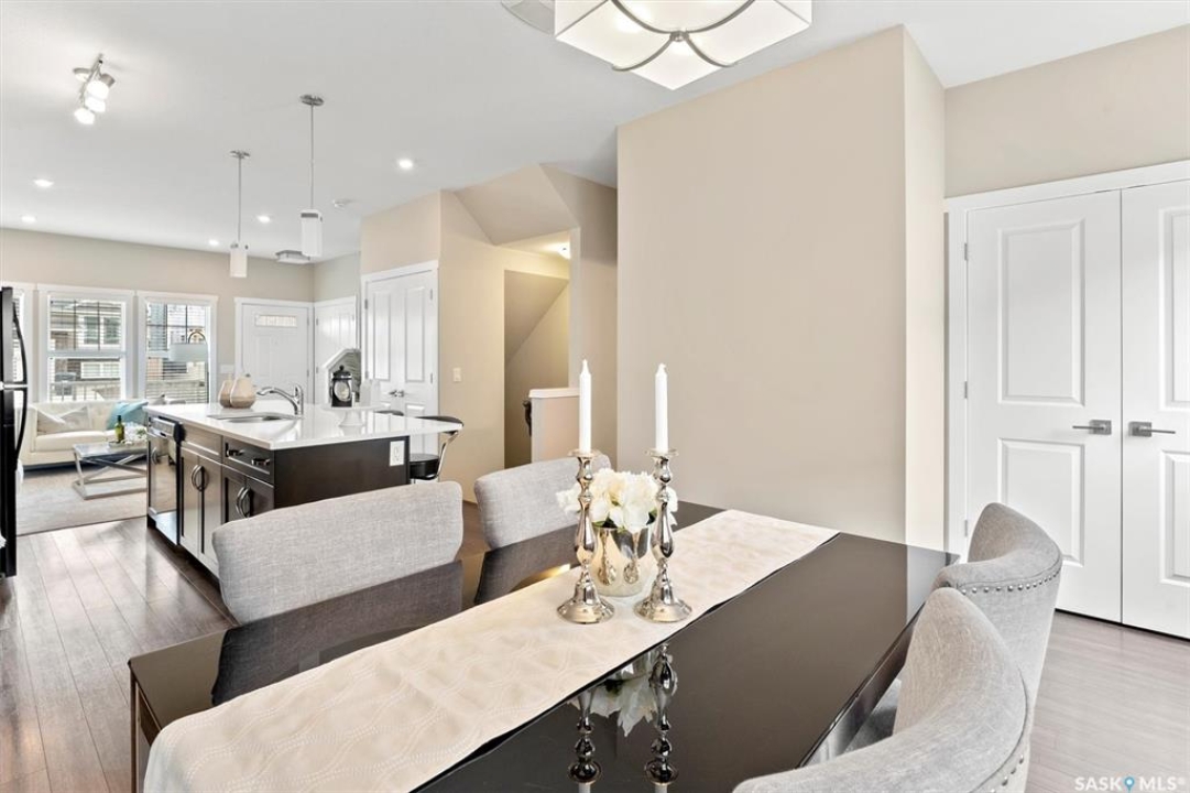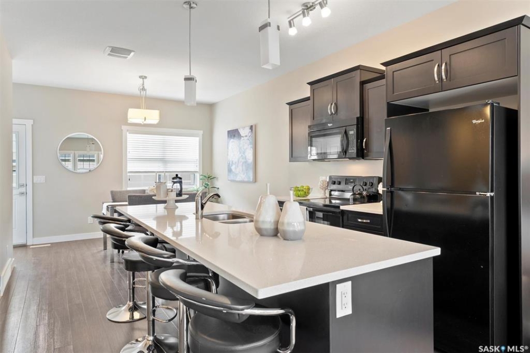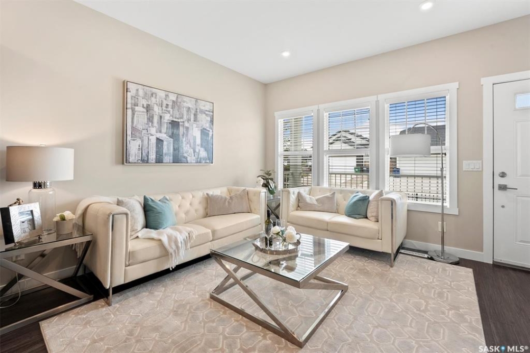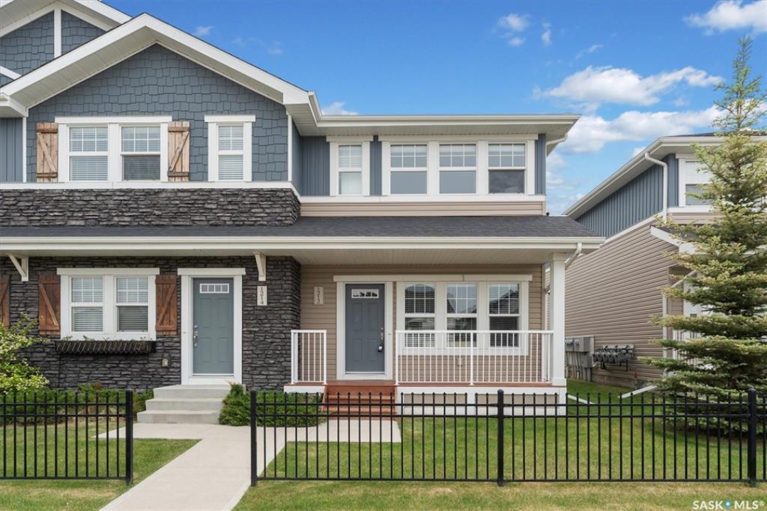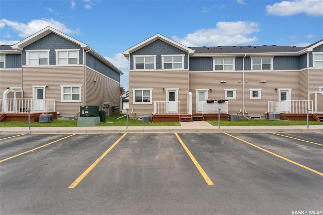 Welcome to 1129 Kolynchuk Link — a modern townhouse located in the desirable Living Stone community of Stonebridge. This two-storey home features 3 bedrooms, 2 bathrooms, and over 1,200 sq. ft. of living space, along with two electrified parking stalls and convenient visitor parking nearby. The main floor offers a spacious living room, dining area, and a well-laid-out kitchen with modern appliances, plus a convenient 2-piece bath. Upstairs, you'll find three comfortable bedrooms, including a primary bedroom with generous closet space, along with a full 4-piece bathroom. The unfinished basement with laundry is ready for your personal touch and offers potential for a family room, additional bedroom, or bathroom. Additional highlights include central air conditioning, laminate flooring throughout the main level, a rear deck, and front lawn space. Condo fees are only $258 per month and include common area maintenance, snow removal, water, lawn care, garbage, reserve fund contributions, and more. Living Stone is a well-managed community that allows pets (with restrictions) and is ideally located near parks, schools, and the many amenities of Stonebridge, including Sobeys, Walmart, Home Depot, Brown's, The Canadian Brewhouse, and Motion Fitness. The neighborhood also offers scenic walking and biking paths, with quick access to the University of Saskatchewan and downtown. This affordable and functional townhouse is a fantastic opportunity for first-time buyers, young families, or investors—book your private showing today!