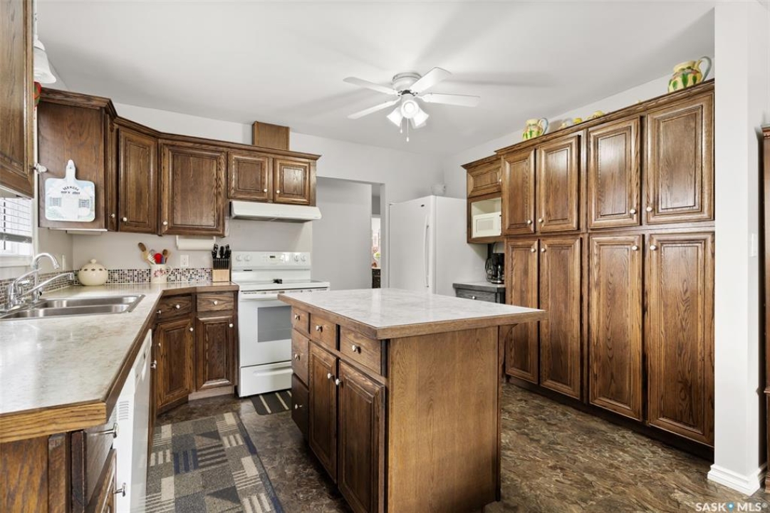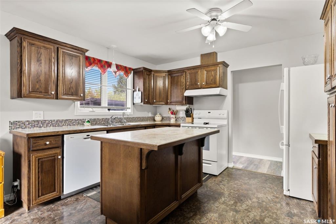 Welcome to 103 2nd St NW in the friendly community of Ituna! This 1,050 sq ft bungalow sits on a large corner lot and has been nicely updated and meticulously cared for, offering a move-in ready opportunity. From the moment you pull up, you'll notice the inviting curb appeal with newer shingles and painted brick/siding exterior. Inside, new vinyl plank flooring guides you through the bright and spacious living room, highlighted by large updated windows that fill the home with natural light. The living room flows seamlessly into the designated dining area, perfect for family meals and gatherings. Just off the dining space is the beautiful kitchen, designed with functionality in mind—featuring an abundance of cabinetry and a convenient eat-up island. All appliances included! Down the hall, you'll find a full 4-piece bathroom, a comfortable spare bedroom, and a generous primary bedroom. The partially finished basement adds even more living space with a 3-piece bathroom, a den (with a window—ideal to convert into a 3rd bedroom), a large recreation area, storage room, and laundry/utility room. The water heater and softener have also been updated in recent years for peace of mind. Outside, the property is just as impressive with two driveways providing ample parking or RV space, a covered deck area to enjoy the outdoors, front yard irrigation and a beautiful garden to make your own. A single detached garage completes the outdoor space. This is truly an incredible property for under $130,000! Don't miss your chance—book your private viewing today.