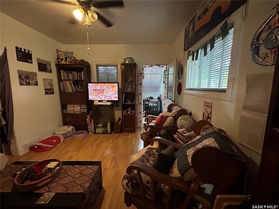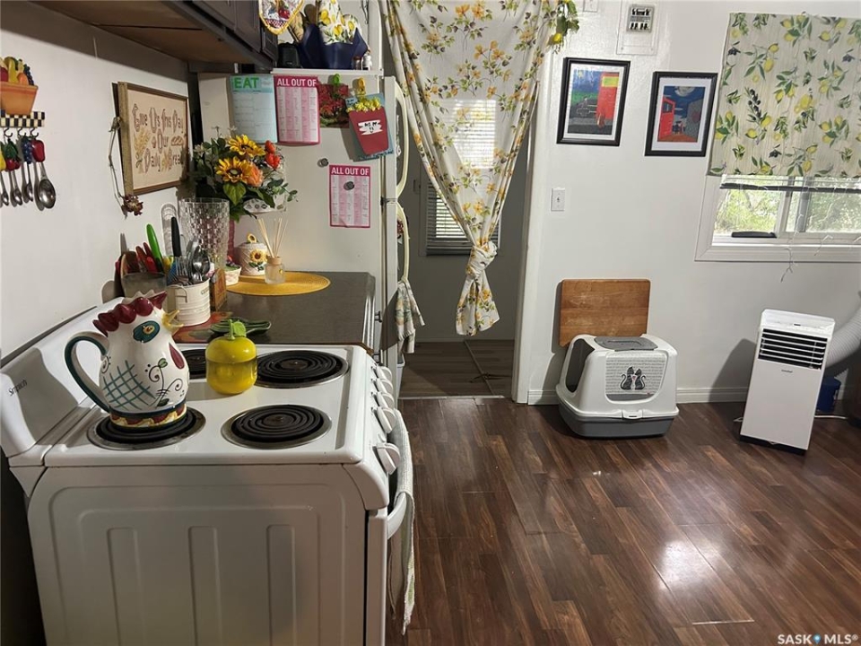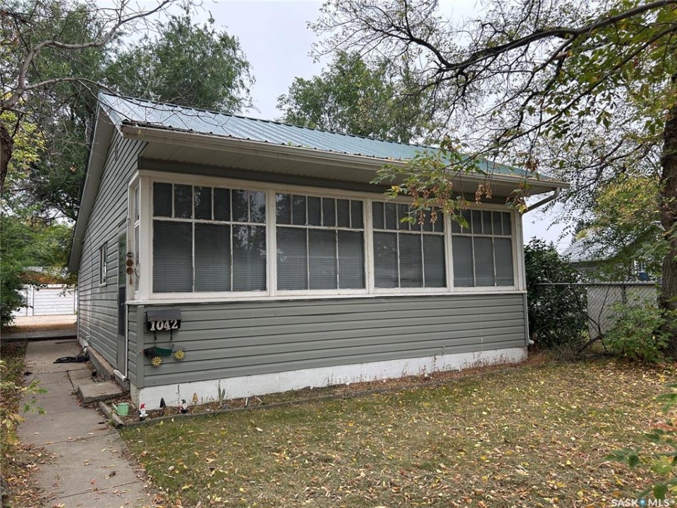 Cute & Affordable!! This is the perfect home to start your home owners experience or to add to your revenue portfolio. At the front is a south facing glassed in veranda to enjoy your coffee. Once you enter the home there is a nice sized living room with the Primary Bedroom just adjacent. Moving towards the back is a kitchen that has seen a few updates along with a 3pc bathroom and a smaller bedroom...perfect for a child bedroom or could be used as an office. The backyard is mature and partially fenced with shrubs, trees, a deck and parking in the back also!! Some extras this home has is: HE furnace, updated windows, metal roof. If you are looking for an affordable home with just enough space this is one to view!!